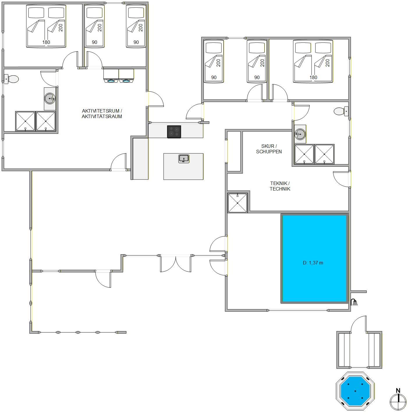 Welcome to this stylish holiday home at Bjerregårdsvej 283 on the Danish west coast. Covering 180 square metres of modern, comfortable living space, this luxurious temporary home accommodates up to 8 guests. Here i the poolhouse, relaxation, luxury and the beauty of the surroundings go hand in hand.