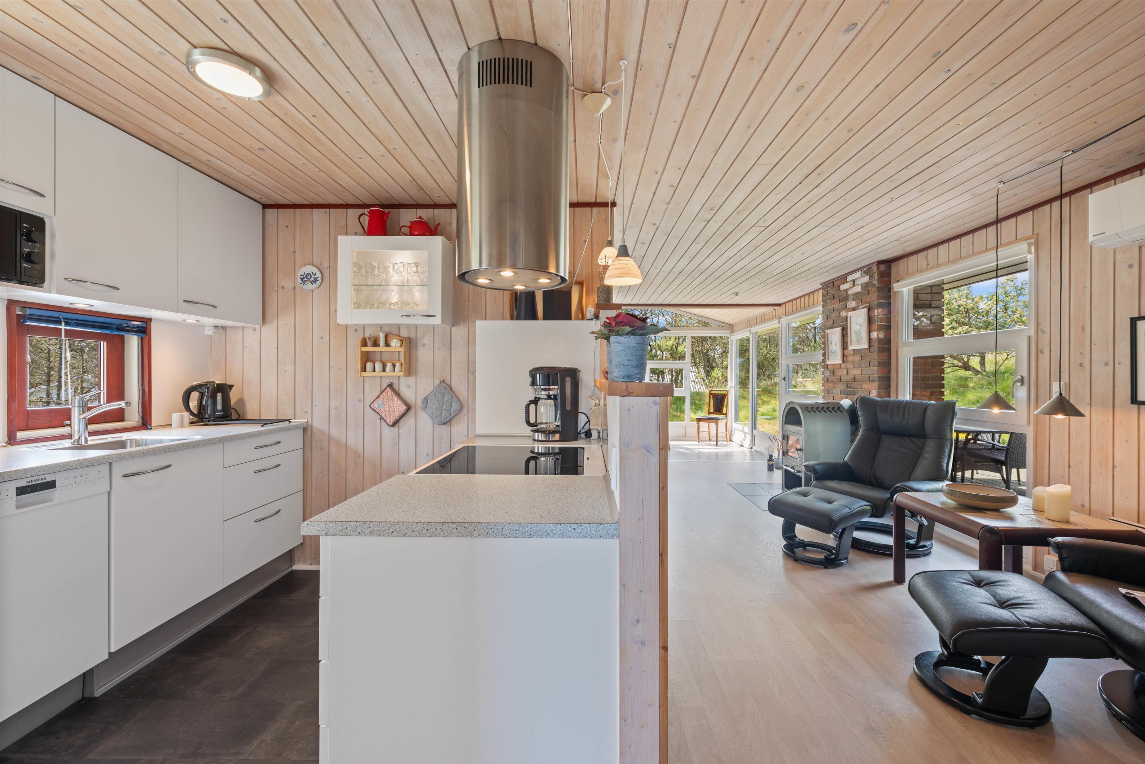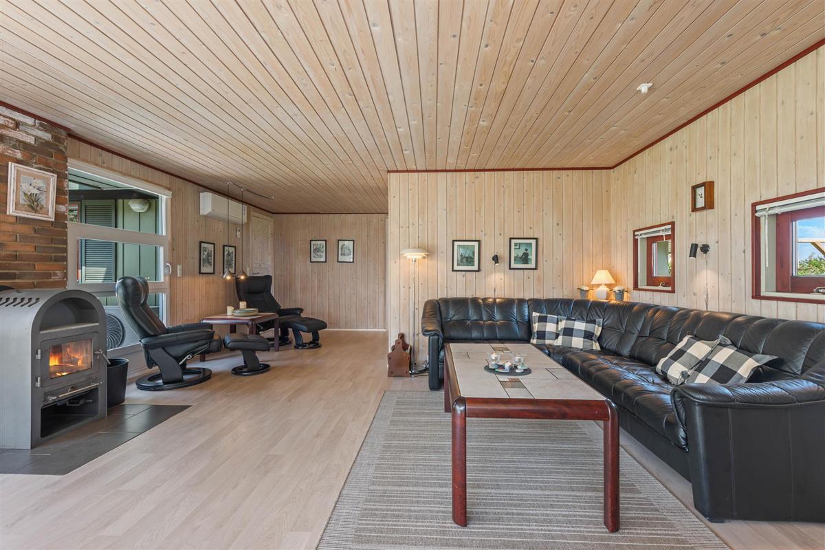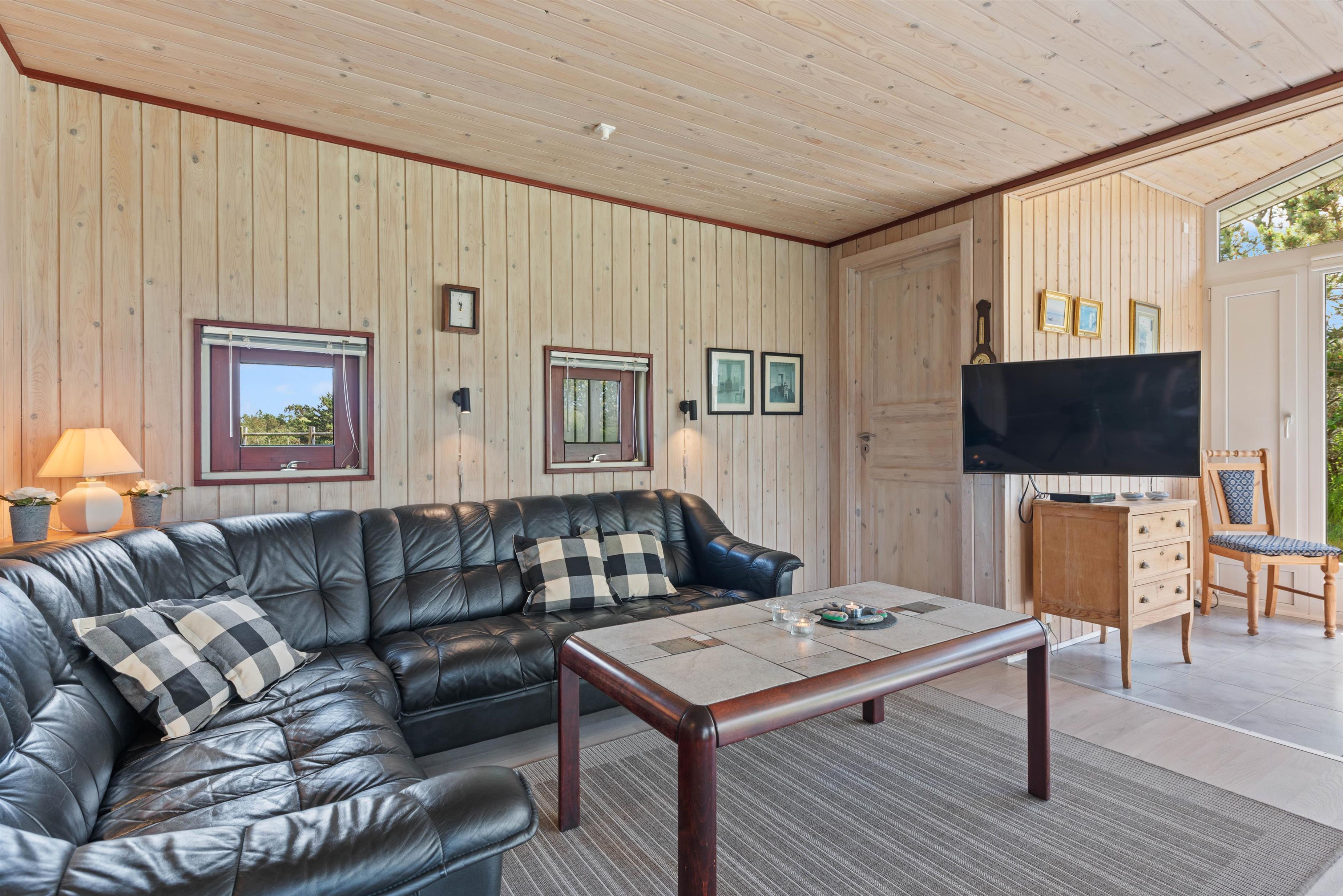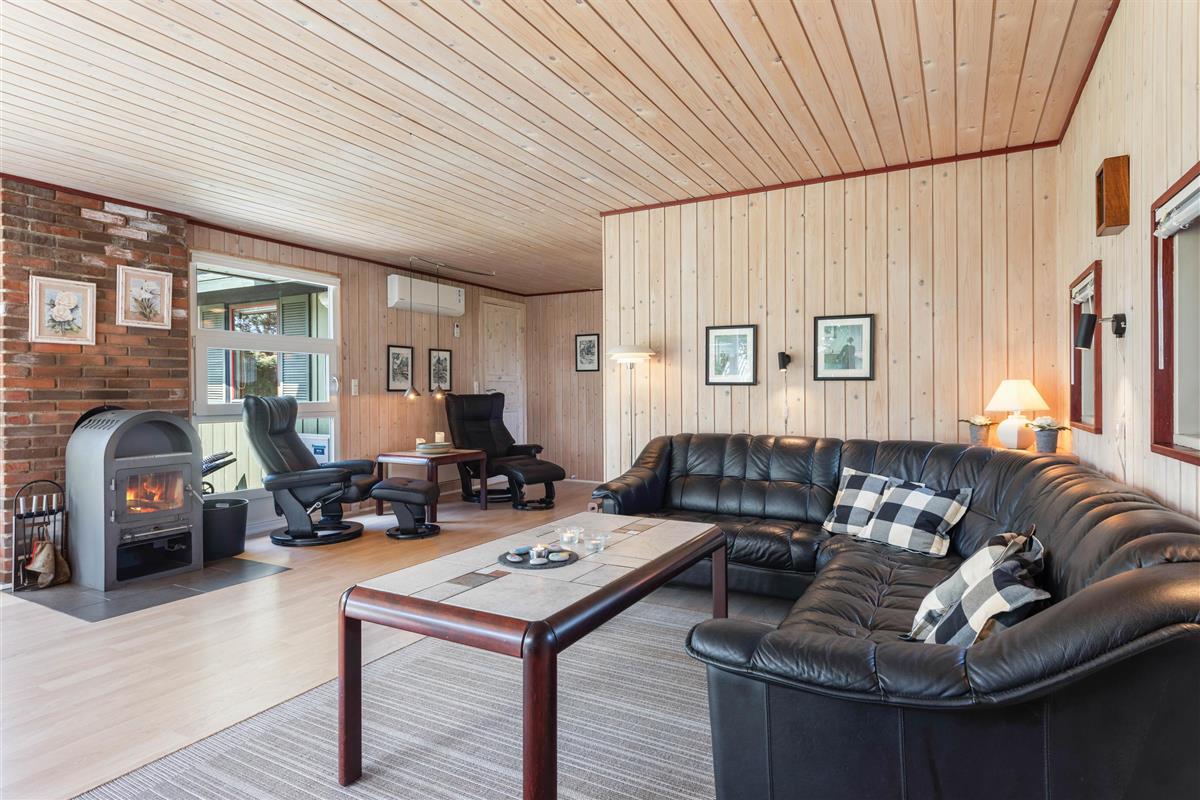 At Bjerregårdsvej 11 A, you'll find a holiday home in typical Scandinavian style, with wood-clad walls both inside and out. The living room, which forms the heart of the holiday home, features numerous windows allowing plenty of natural light. Combined with the wood-panelled walls and ceilings, this creates a welcoming atmosphere where you'll feel at home straight away.