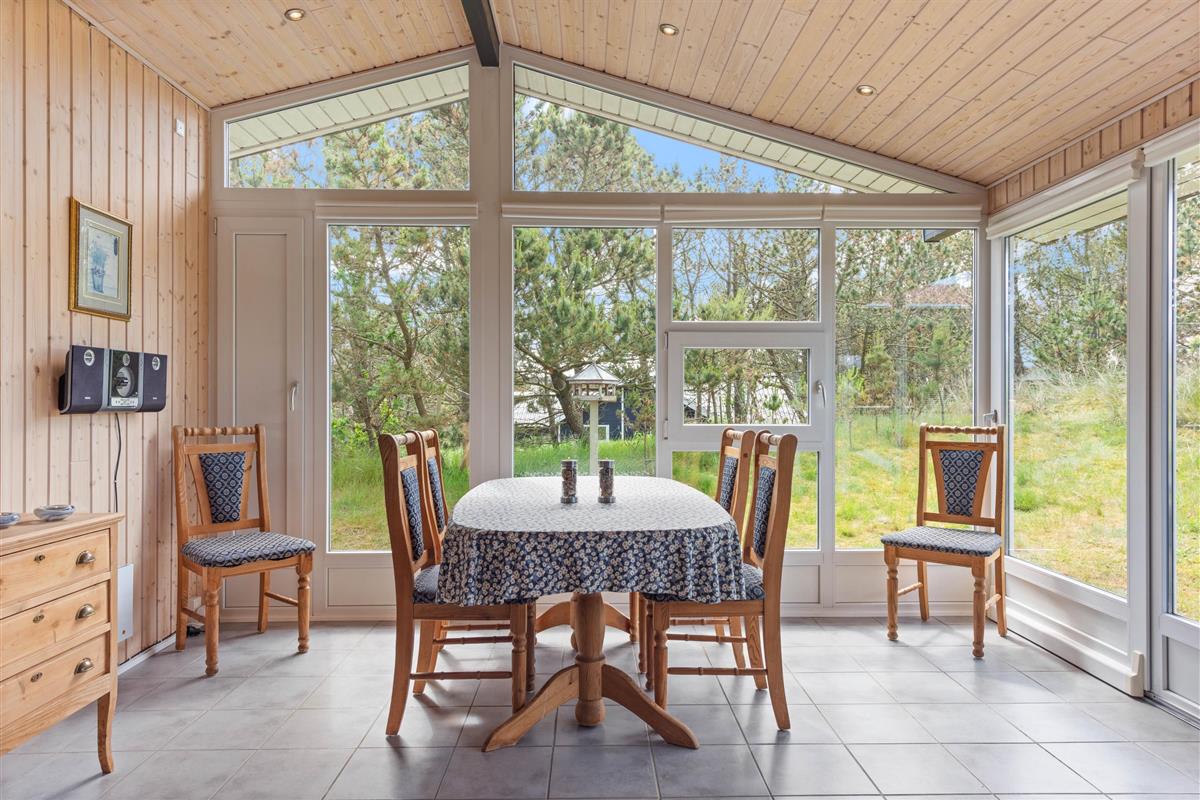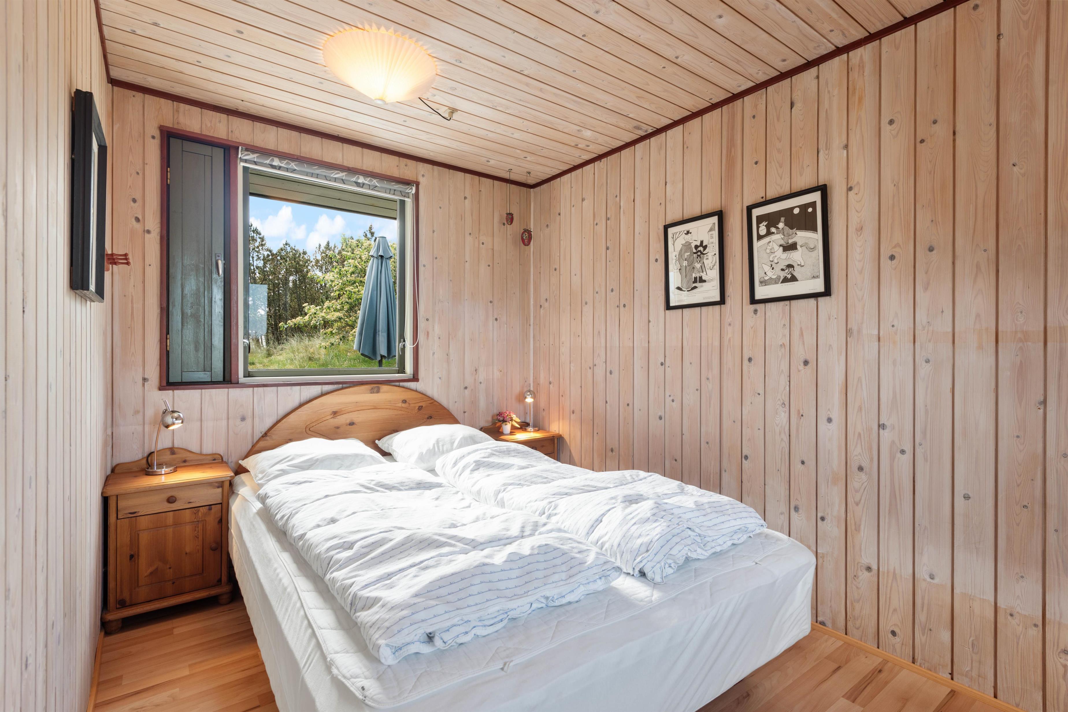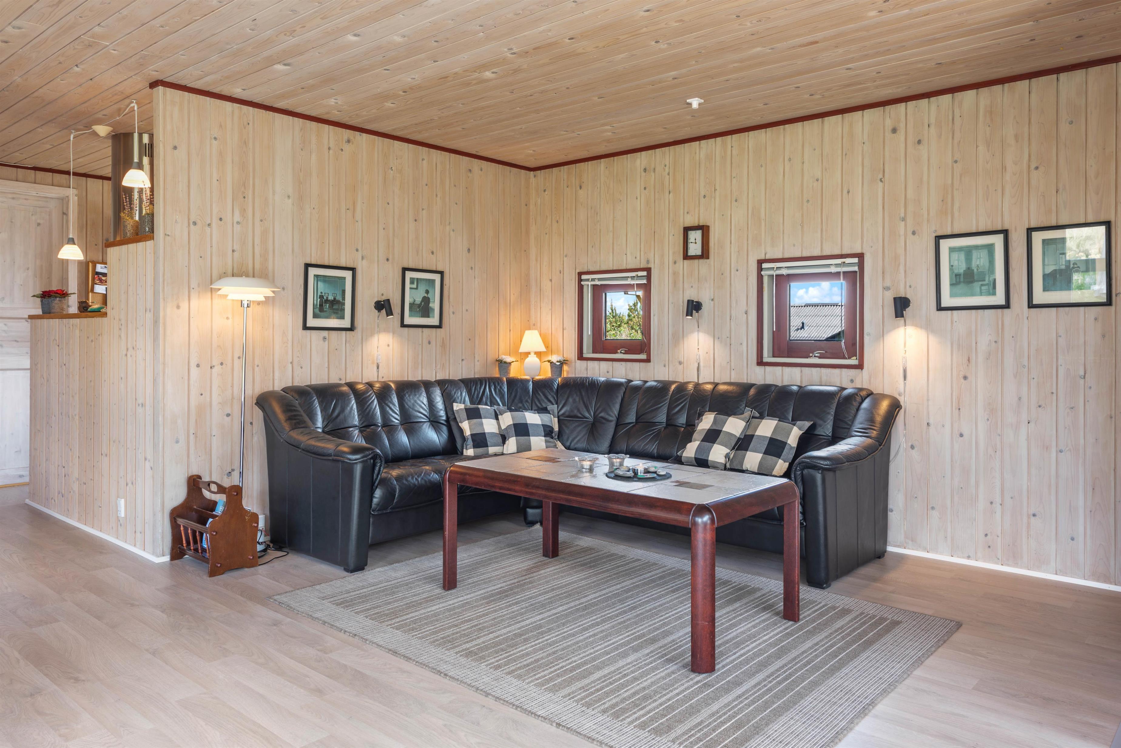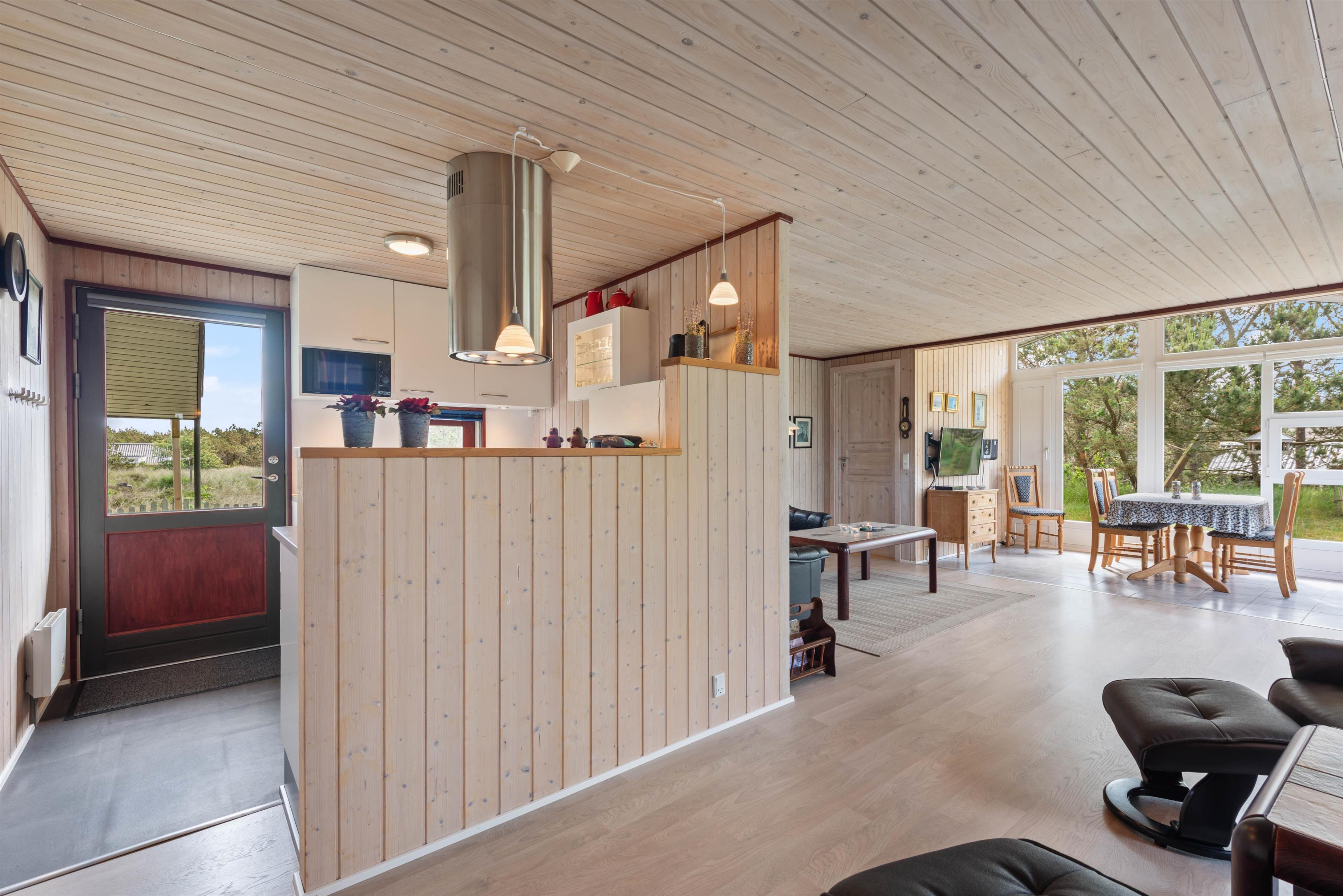 At Bjerregårdsvej 11 A, you'll find a holiday home in typical Scandinavian style, with wood-clad walls both inside and out. The living room, which forms the heart of the holiday home, features numerous windows allowing plenty of natural light. Combined with the wood-panelled walls and ceilings, this creates a welcoming atmosphere where you'll feel at home straight away.