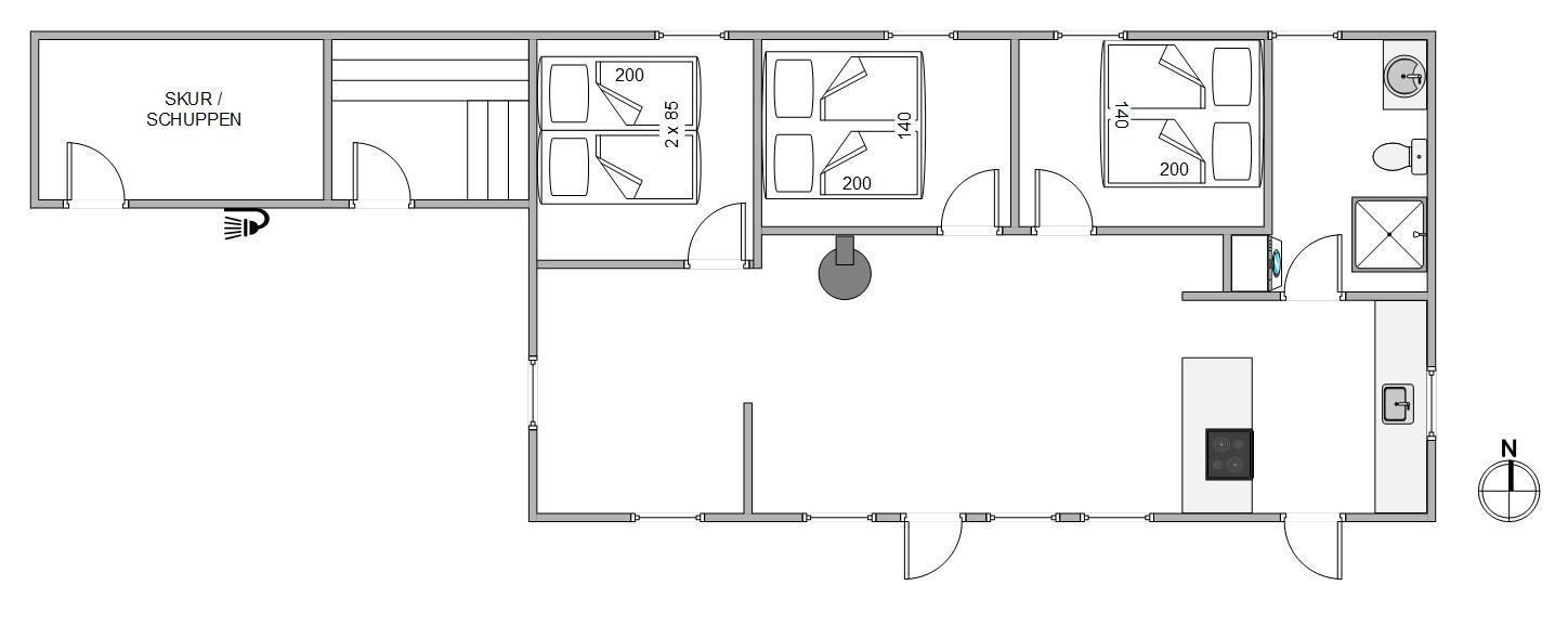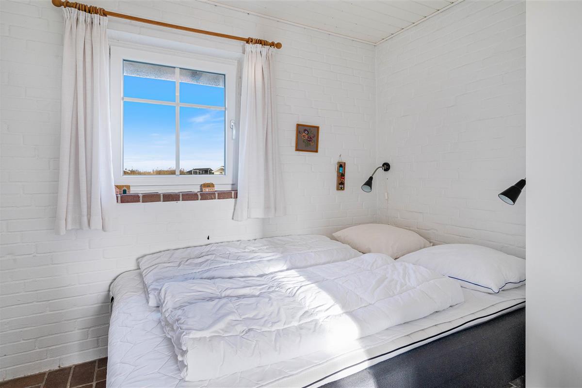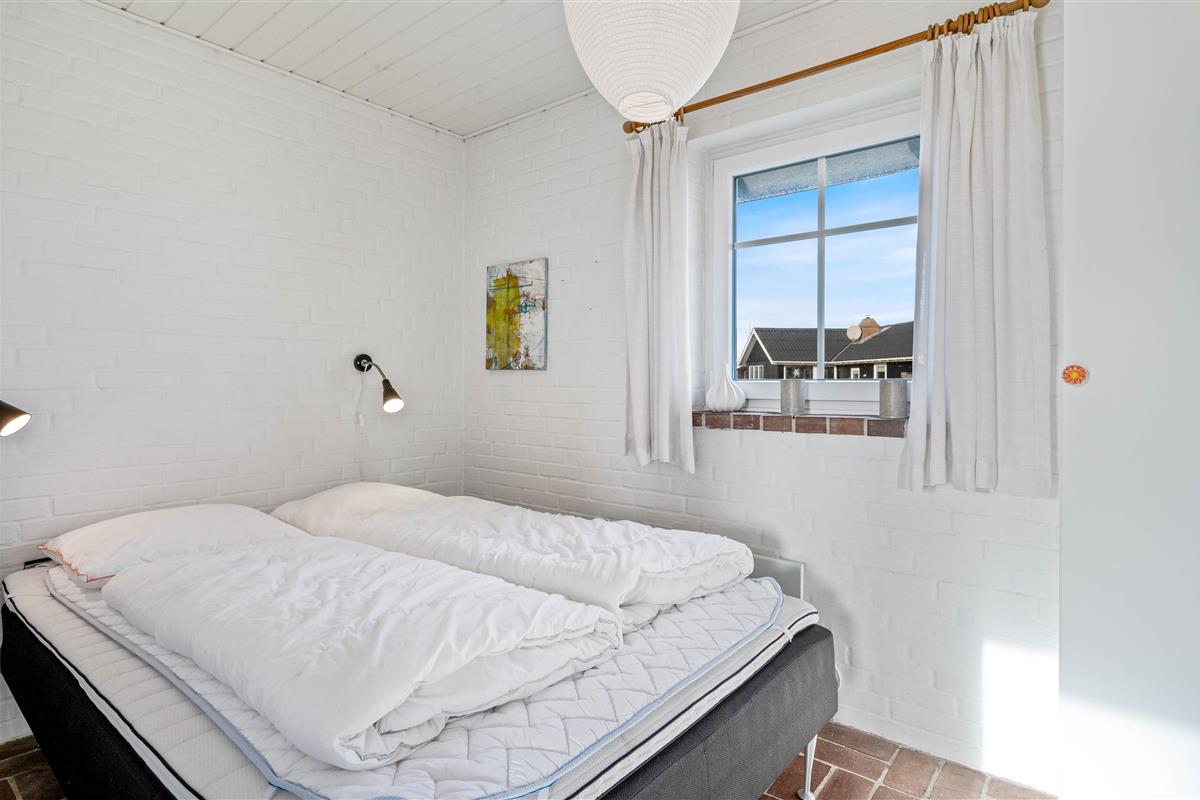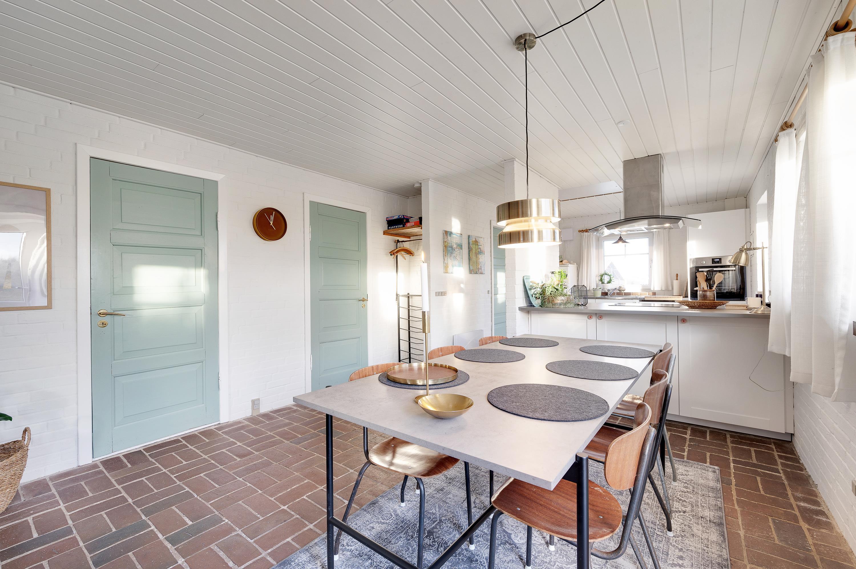 At the heart of this holiday home at Auroravej 40 is the light-filled living room with brick flooring, connecting all other rooms. The typical Scandinavian décor in natural tones and carefully chosen furnishings create a harmonious overall look and cosy atmosphere.