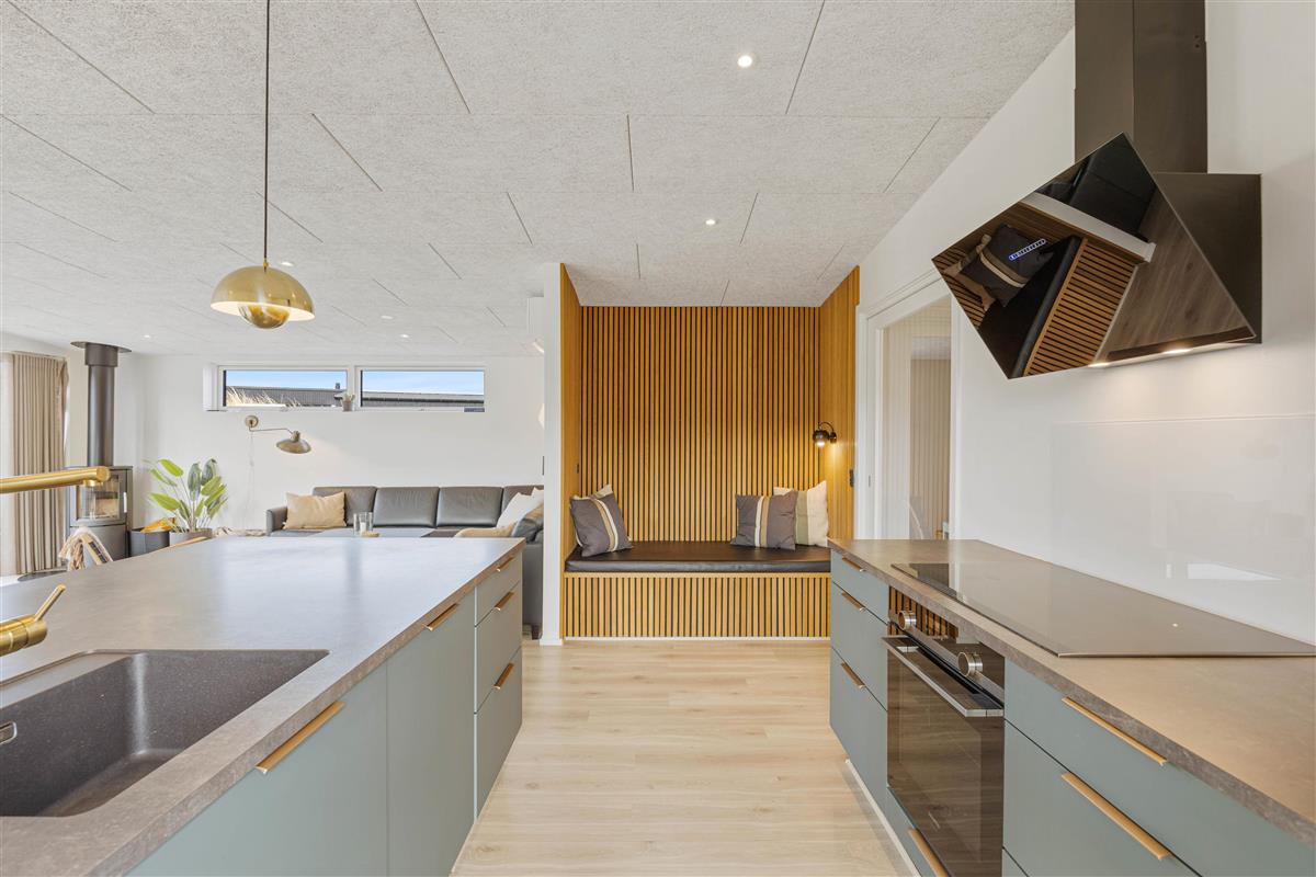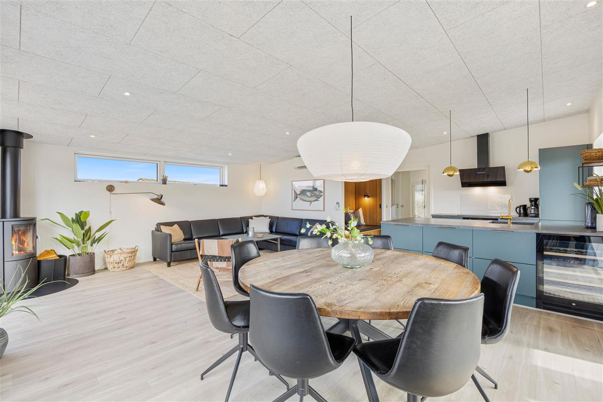 Completed in 2021, this holiday home at Bjerregårdsvej 393 meets the expectations of discerning holidaymakers. The holiday home features high-quality furnishings and excellent comfort throughout. The house is heated efficiently by an air-to-air heat pump, and there's also a wood-burning stove for added cosiness.