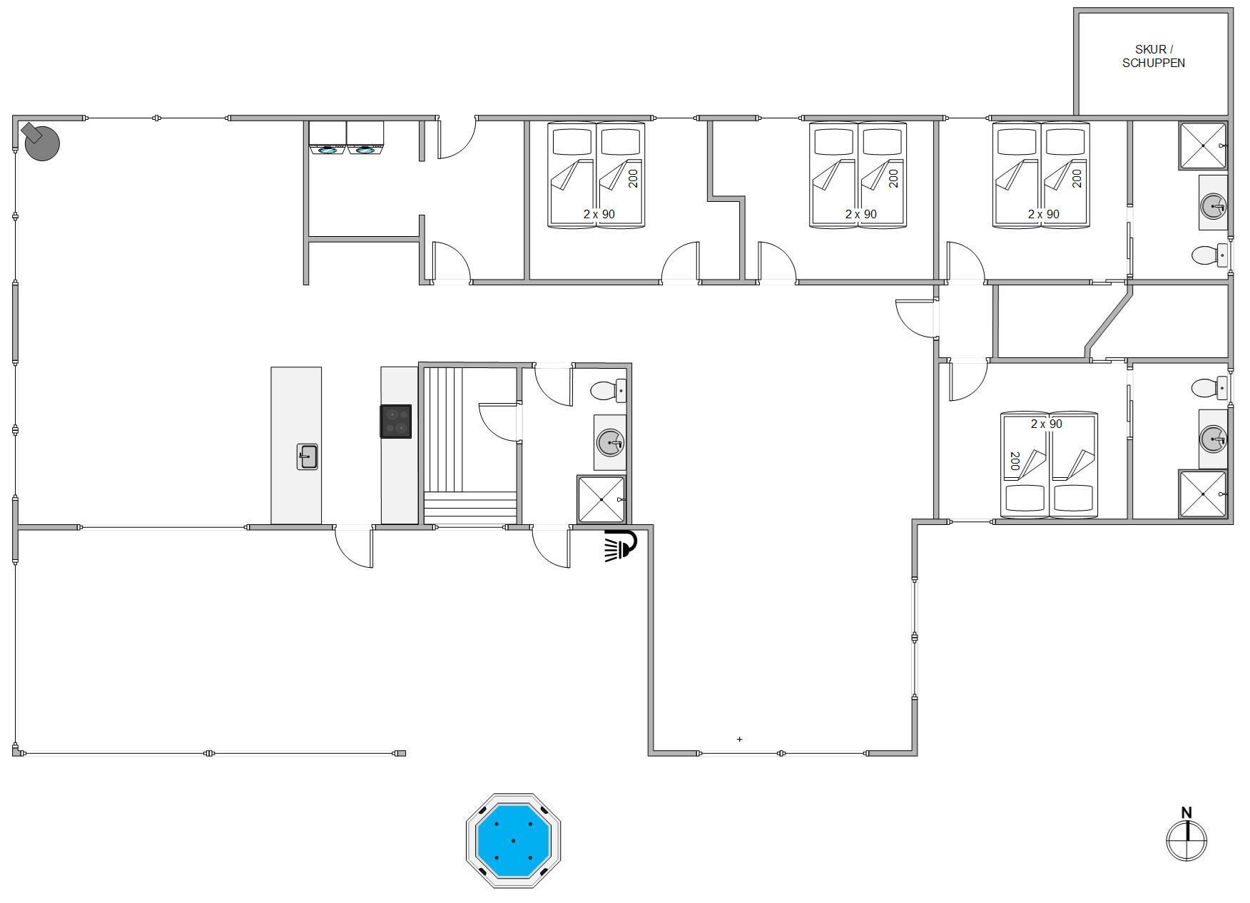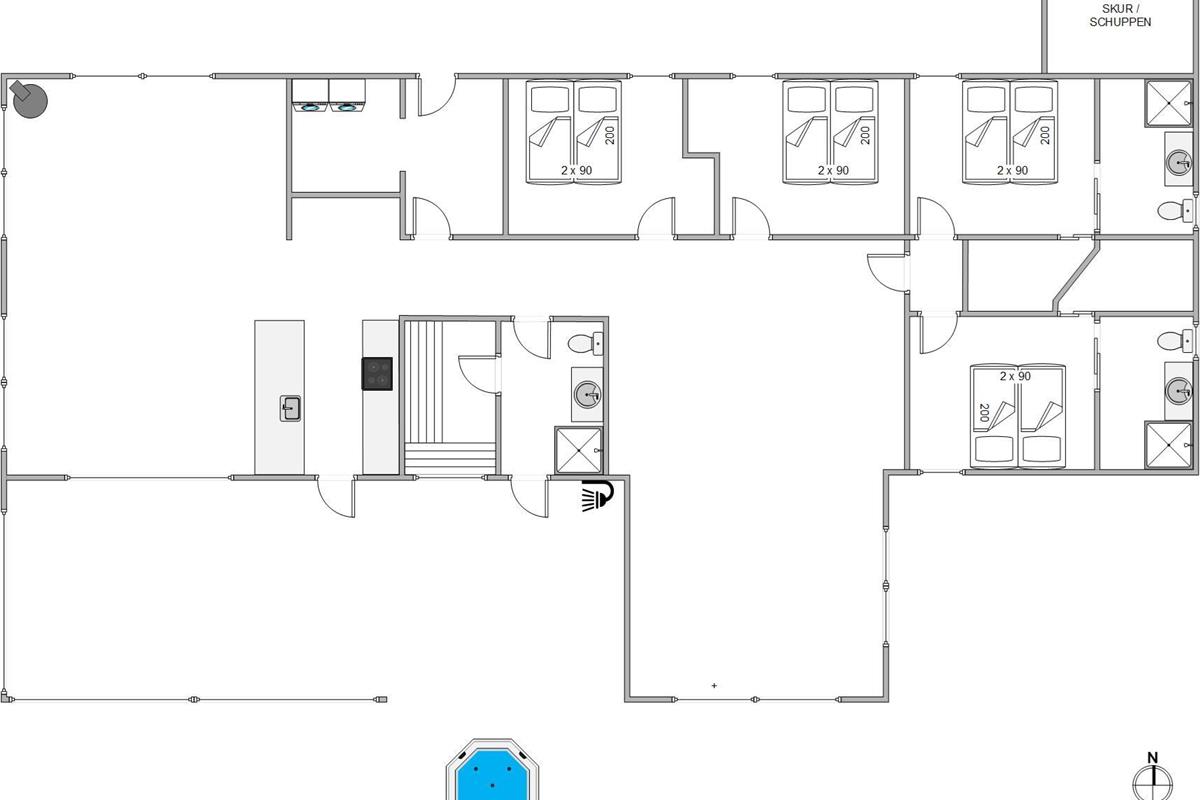 Sometimes you have to choose between entertainment facilities or wellness options - here you get both! The holiday home features a games room with a pool table, as well as a private sauna and outdoor hot tub under the open sky. An outdoor shower is available from April to November, perfect for cooling off or rinsing away sand after a beach visit.