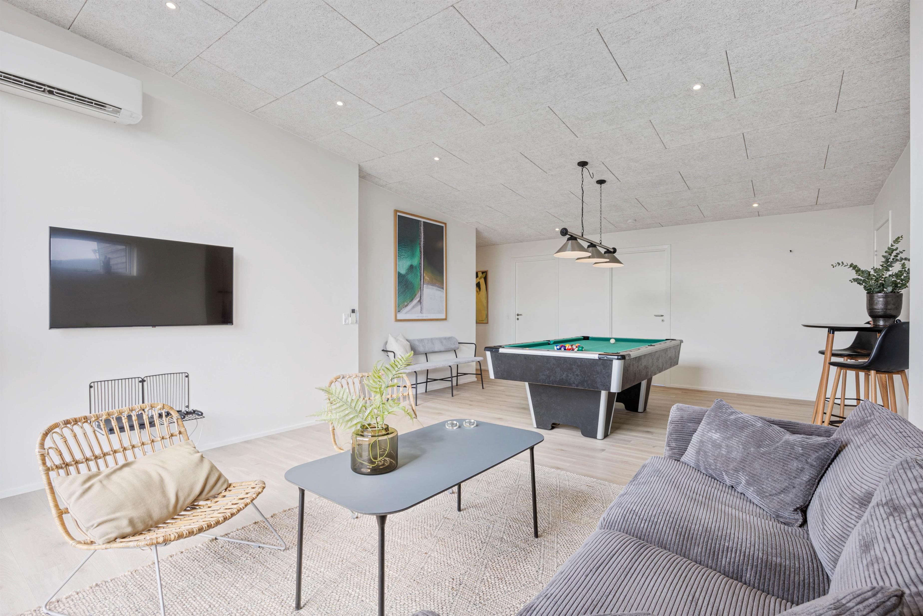 Entertainment and wellness with pool table, sauna and outdoor hot tub