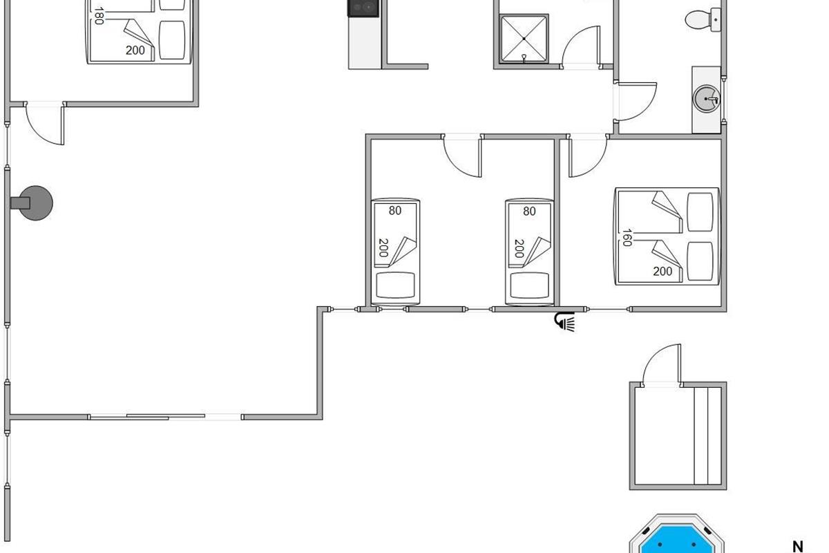 Das Ferienhaus am Arvidvej 328 bietet euch ein echtes Highlight im Außenbereich: Ein Whirlpool unter freiem Himmel lädt zu entspannten Stunden ein, während die Außensauna für wohlige Wärme sorgt. Die erfrischende Außendusche ergänzt dieses Wellness-Erlebnis perfekt. Mehrere Terrassen – eine abgeschirmte, eine geschlossene sowie eine überdachte auf 14 m² – bieten euch zu jeder Tageszeit den passenden Platz.