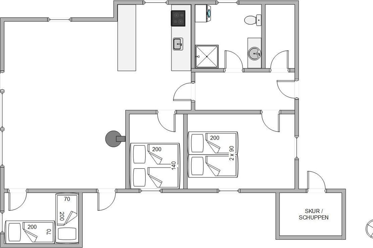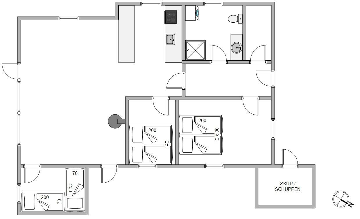 The 73 m² summer house is bright and welcoming. With space for up to 5 people, it is ideal for families or two couples wishing to spend their holiday together. There are 3 comfortable bedrooms, 2 of which have double beds (140x200 and 180x200 cm). The third bedroom has 2 single beds, each measuring 70x200 cm. The light bathroom with underfloor heating also features a convenient washing machine, making your stay even more relaxing.