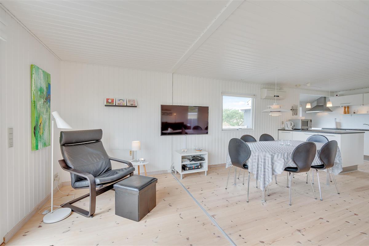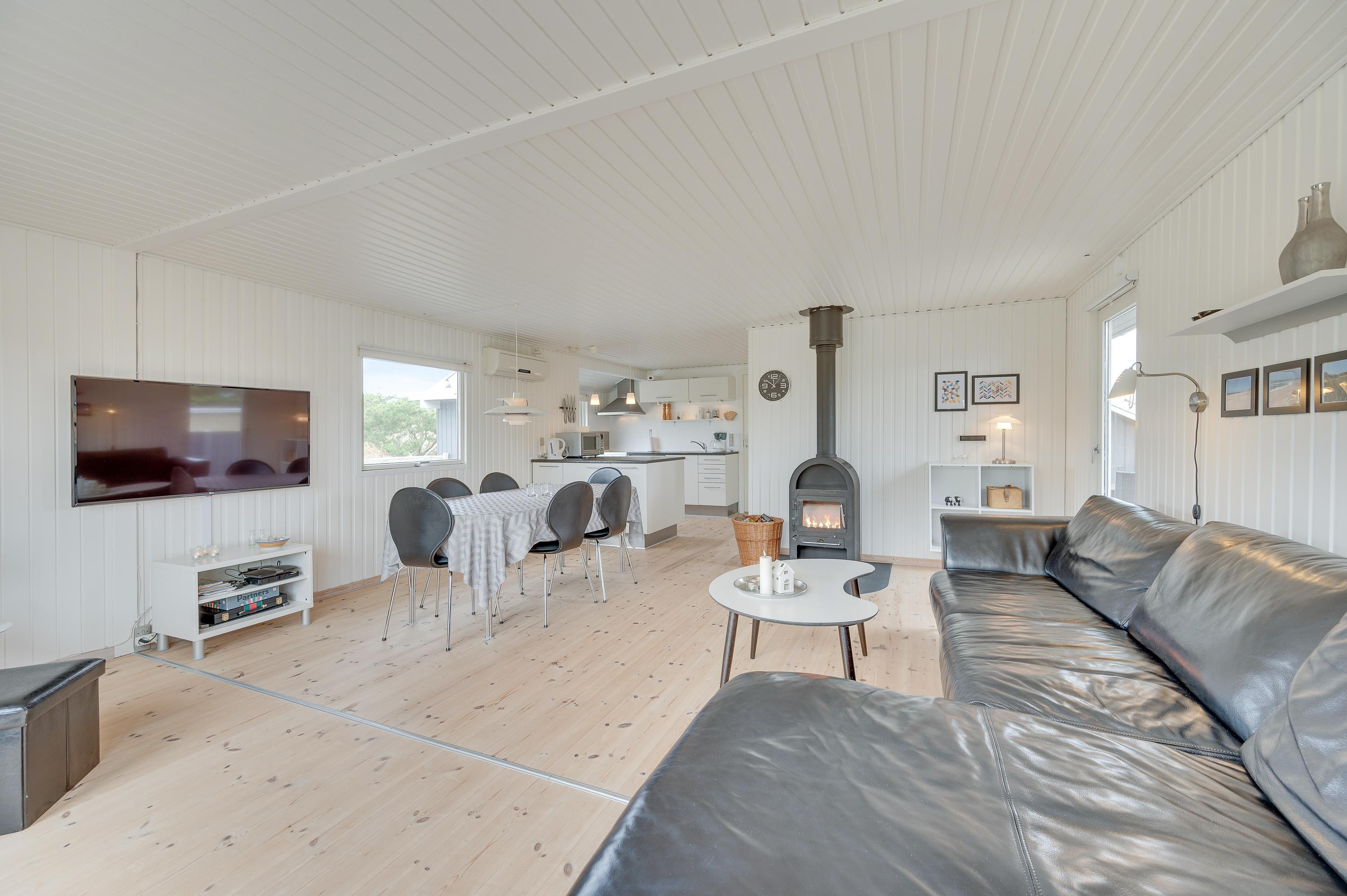 This classic and extremely cozy summer house is situated on a beautiful natural plot in the idyllic Bjerregård at Bjerregårdsvej 7. Here, you can enjoy relaxing moments both inside the charmingly decorated house and on the sunny, sheltered terraces. The local grocery store is just 400 meters away, and the wide, endless North Sea beach is 1,100 meters from the house.