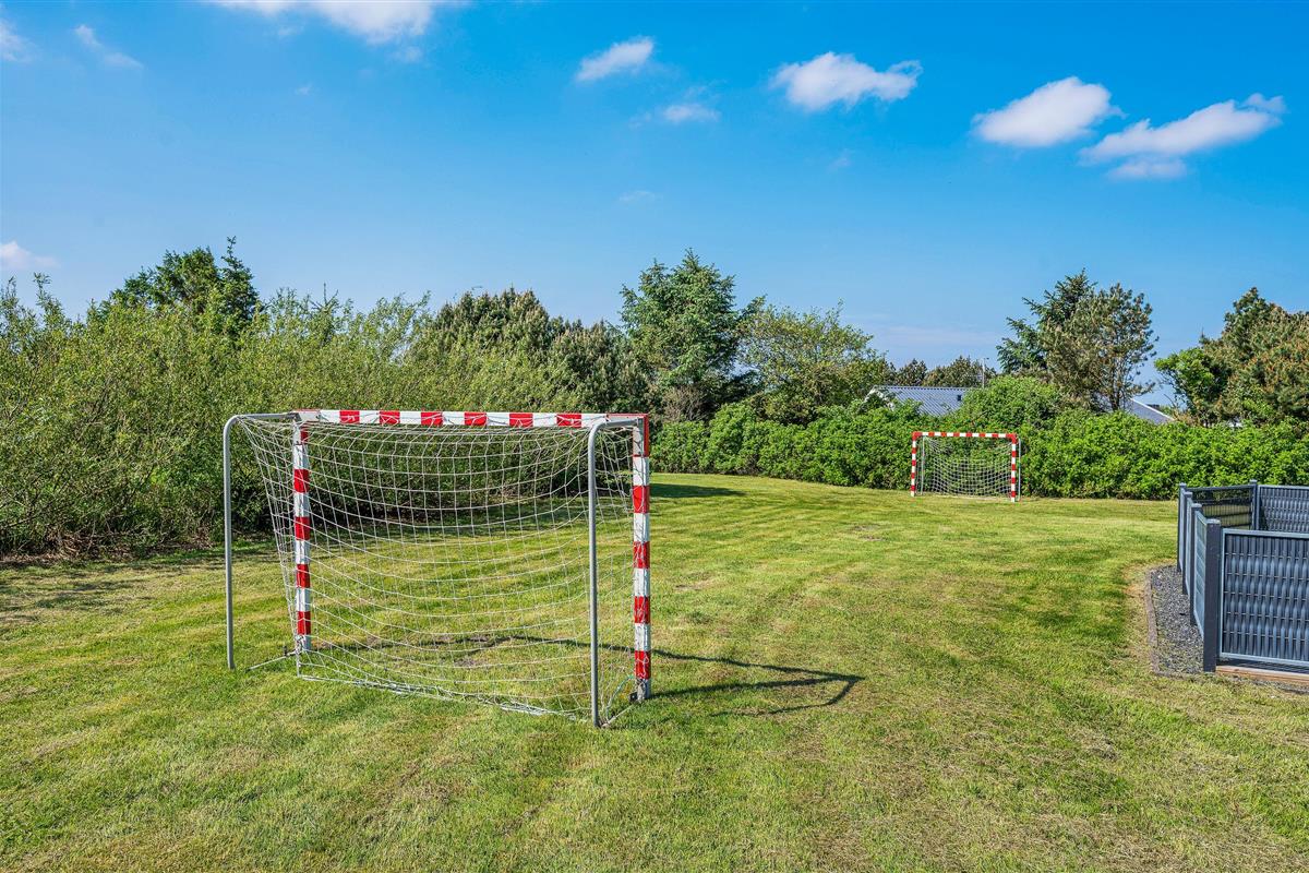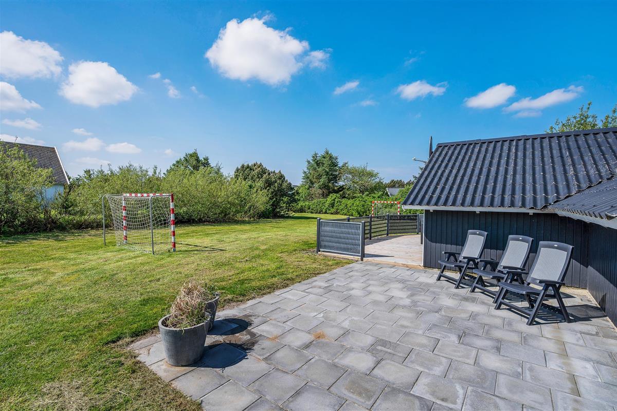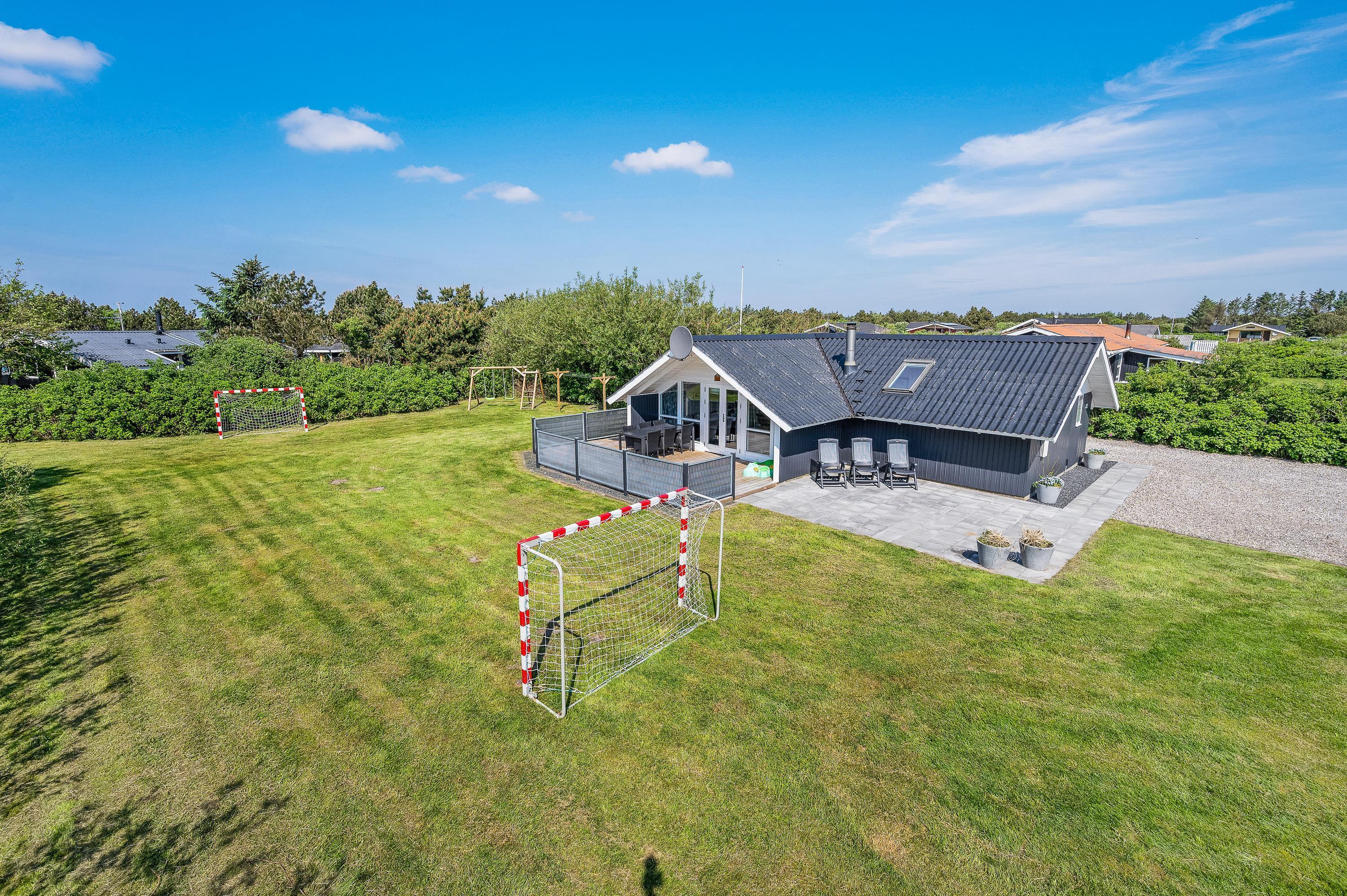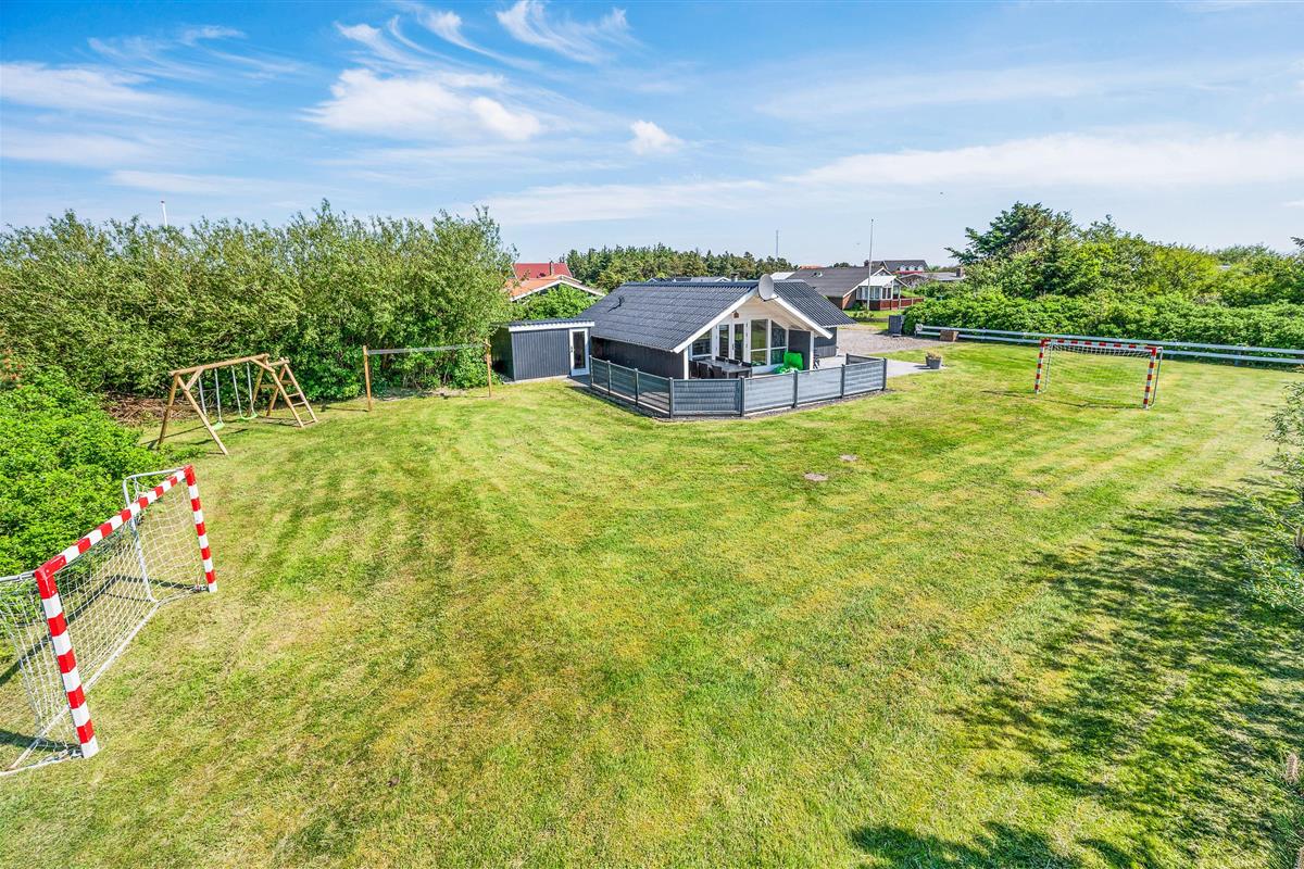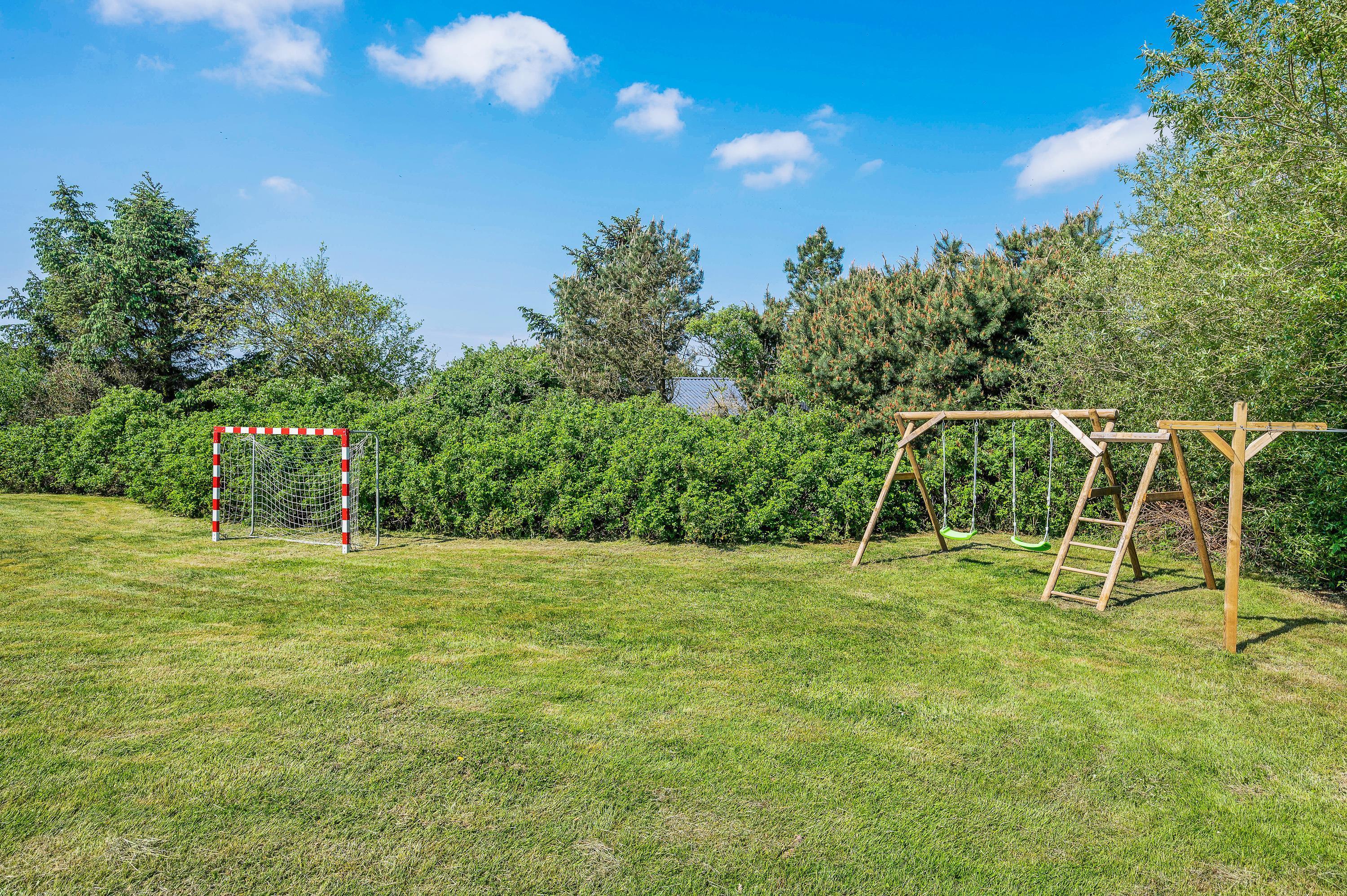 Located at Kirksvej 15 in Bjerregård, this welcoming holiday home offers abundant space for children both indoors and out. The large lawn is perfect for ball games, while younger guests can enjoy the swings and sandpit on the terrace, all within easy view.