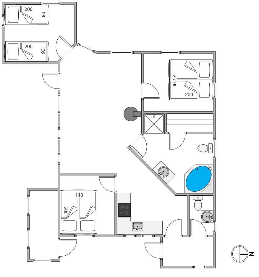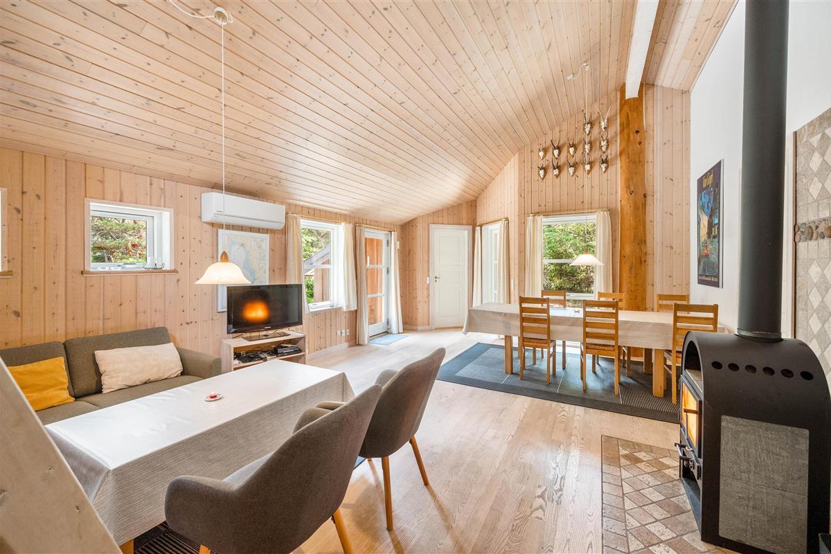 With three bedrooms and a cosy mezzanine - which children will surely claim as their own territory - the holiday home accommodates up to 6 people. The open-plan living area with integrated kitchen and dining space can be enjoyed by all family members simultaneously - perfect for cooking together, playing games, watching an exciting film, or simply relaxing on the sofa. The wood-burning stove provides wonderful warmth and creates the perfect holiday atmosphere.