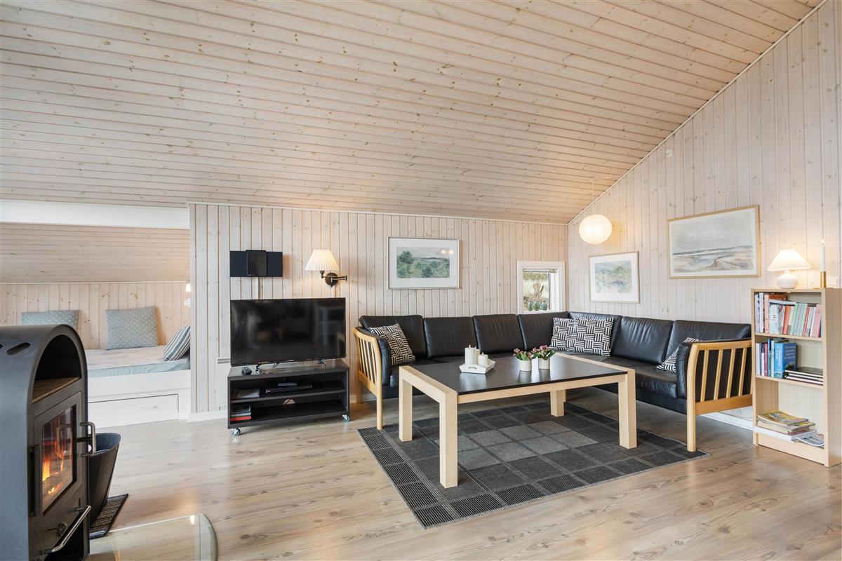 From the welcoming living area, you have direct access to the wooden terrace, which extends from the east to the west side of the holiday home. This means you'll always have the perfect spot to relax and enjoy your holiday to the fullest - whether it's morning sunrise, midday sun, or evening barbecues. Make yourself a cup of coffee and enjoy the latest thriller.