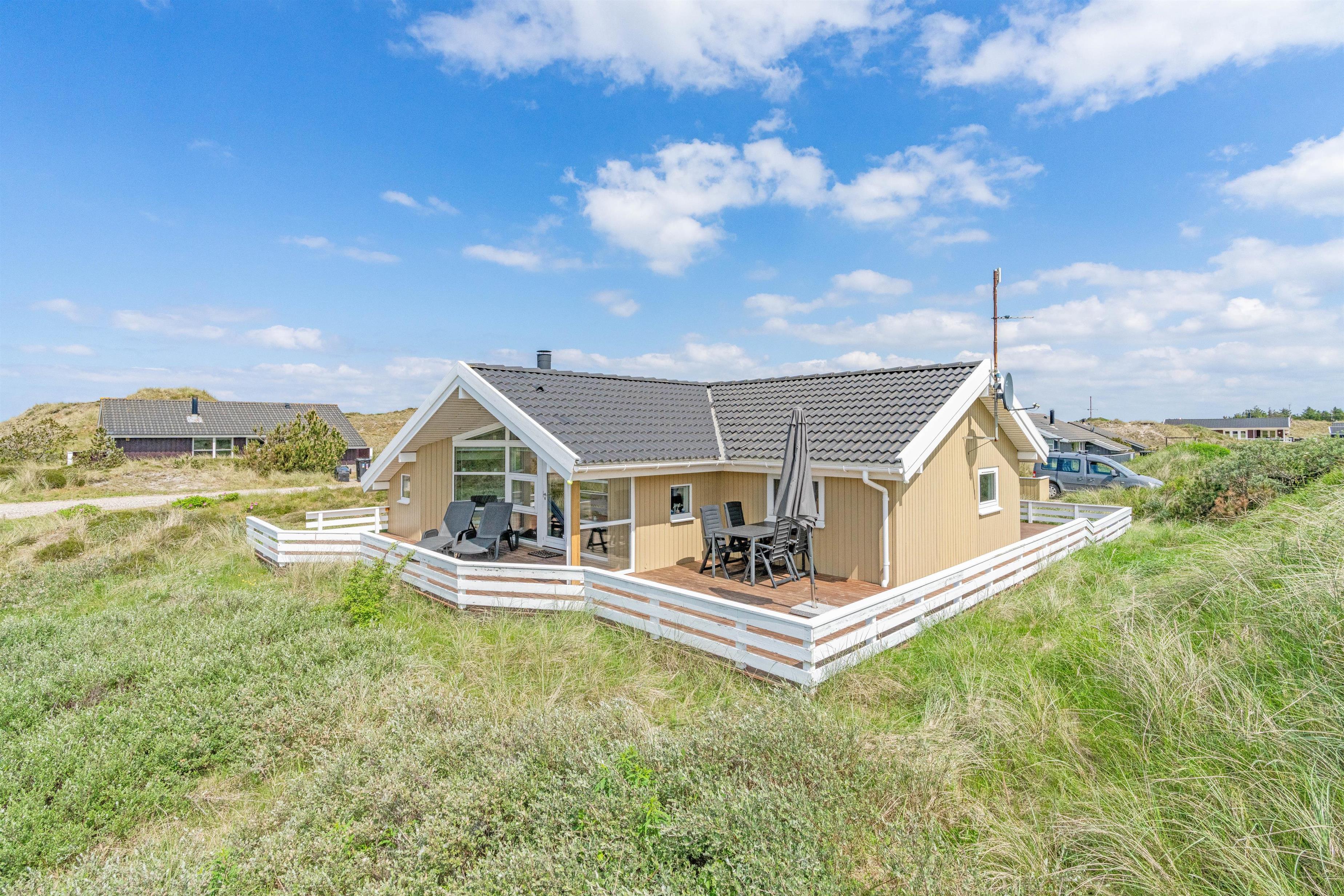 This well-maintained wooden house, accommodating up to 6 people and featuring a beautiful terrace, is located at Bjerregårdsvej 280. Situated on natural grounds, with a nature reserve to the north and just 600 metres from the beach, this holiday home offers the perfect location for your upcoming holiday. For electric car owners, there is a Type 2 charging point available at the holiday home.