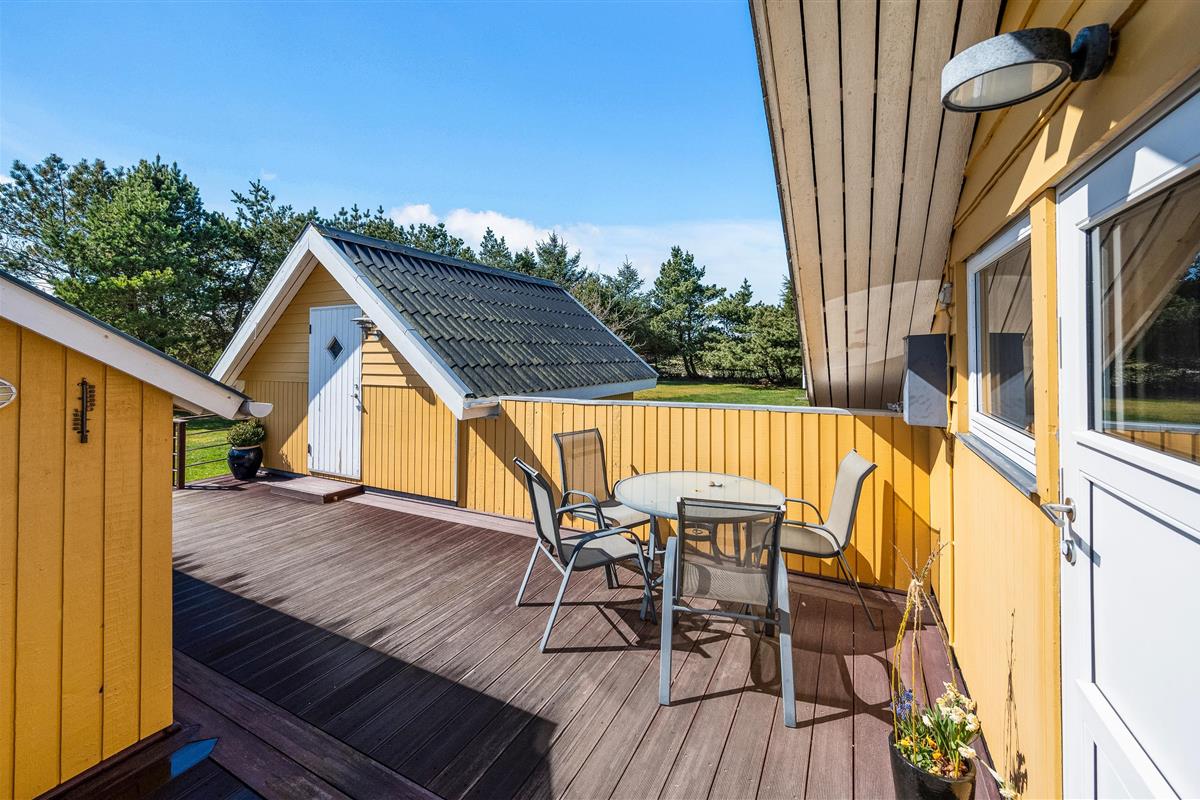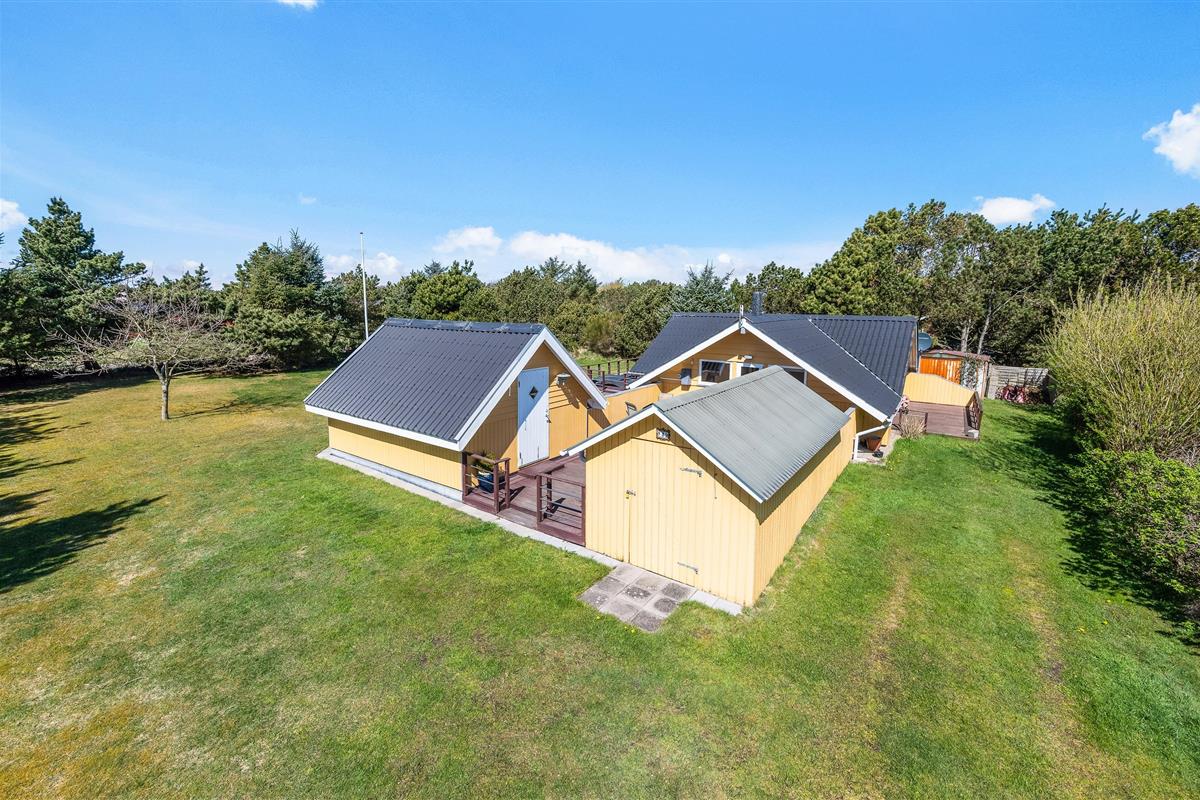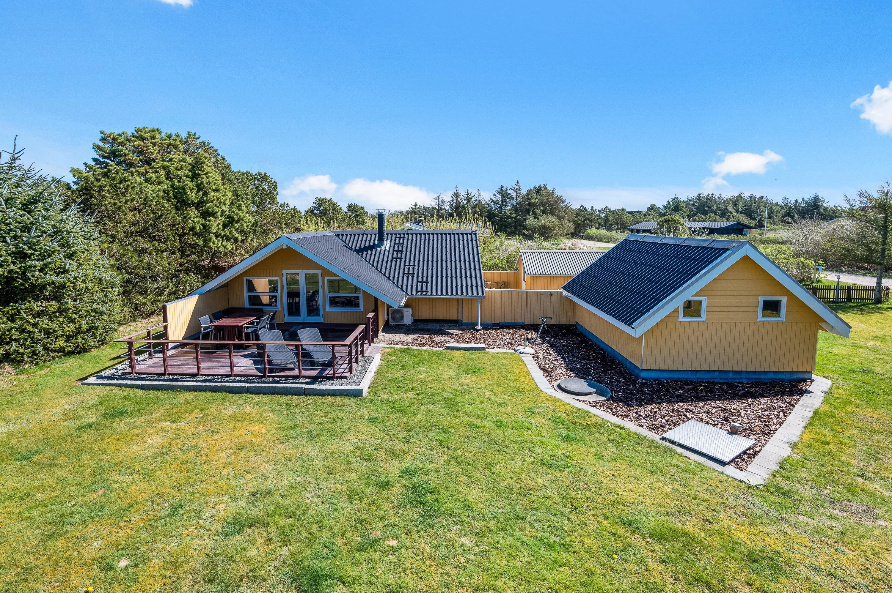 Park your car and begin your holiday at Sigfred Jensens Vej 39. This welcoming sun-yellow wooden house, situated on a tree-surrounded plot, offers the perfect space for a family of 4 to enjoy an unforgettable holiday on the Danish west coast near Ringköbing Fjord.
