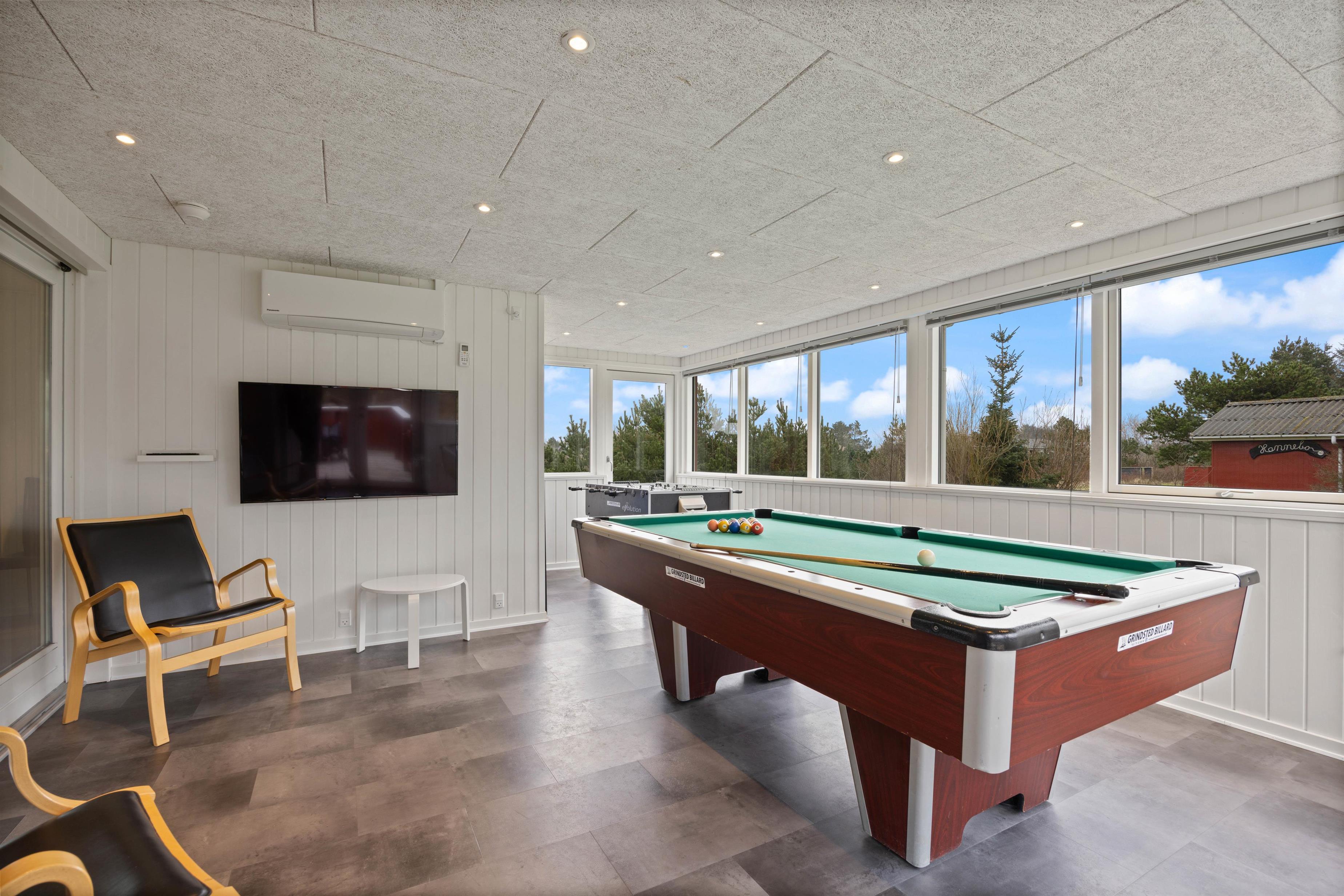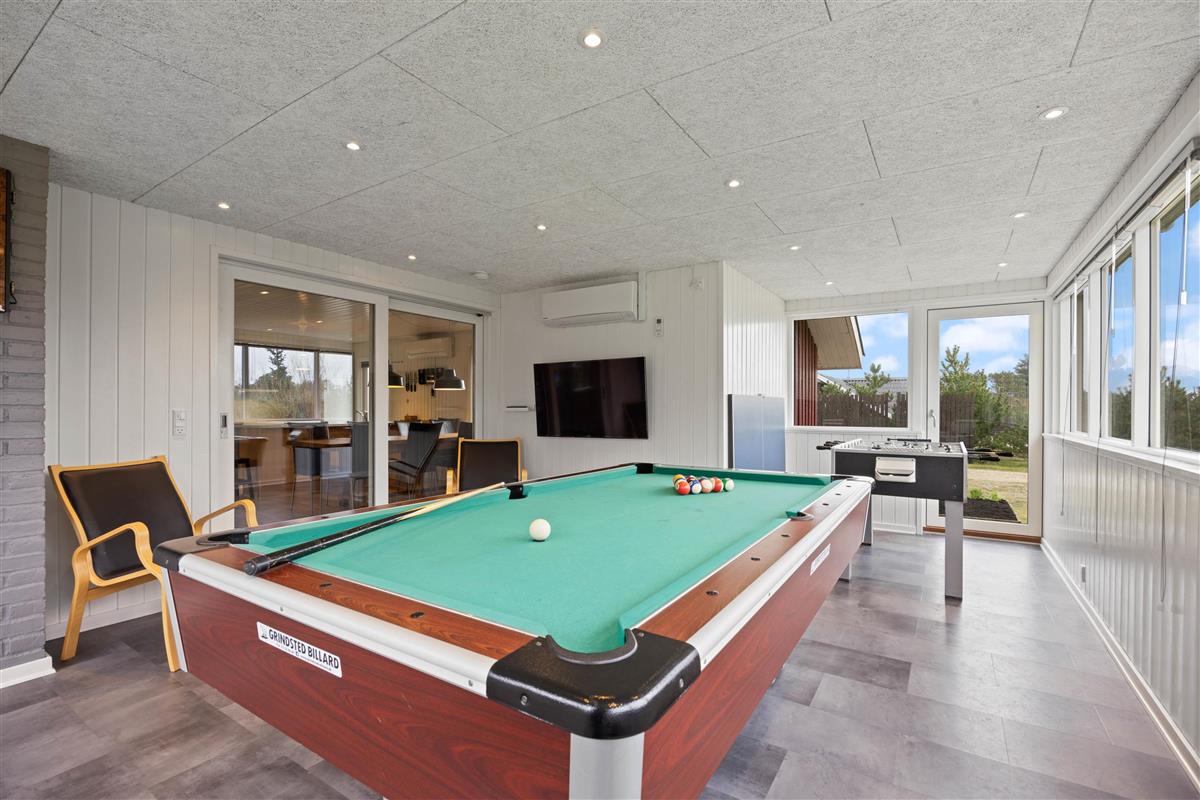Your holiday retreat is a well-maintained and fully equipped holiday home with 5 bedrooms (4 with double beds and one with 2 single beds). The modern kitchen features a microwave and dishwasher. The kitchen area flows into the cosy living room with its spacious dining area and 2 comfortable seating groups. Here you'll find a rustic wood-burning stove for added comfort, a flat-screen TV with satellite reception, plus DVD player and CD radio.An energy-efficient heat pump was installed in 2014. Complimentary Wi-Fi is available throughout. To help you unwind after a day's activities, the house offers an inviting bathroom with whirlpool and sauna. Both bathrooms feature underfloor heating. The games room serves as a social hub - equipped with pool table, table tennis, table football and an electronic dartboard.