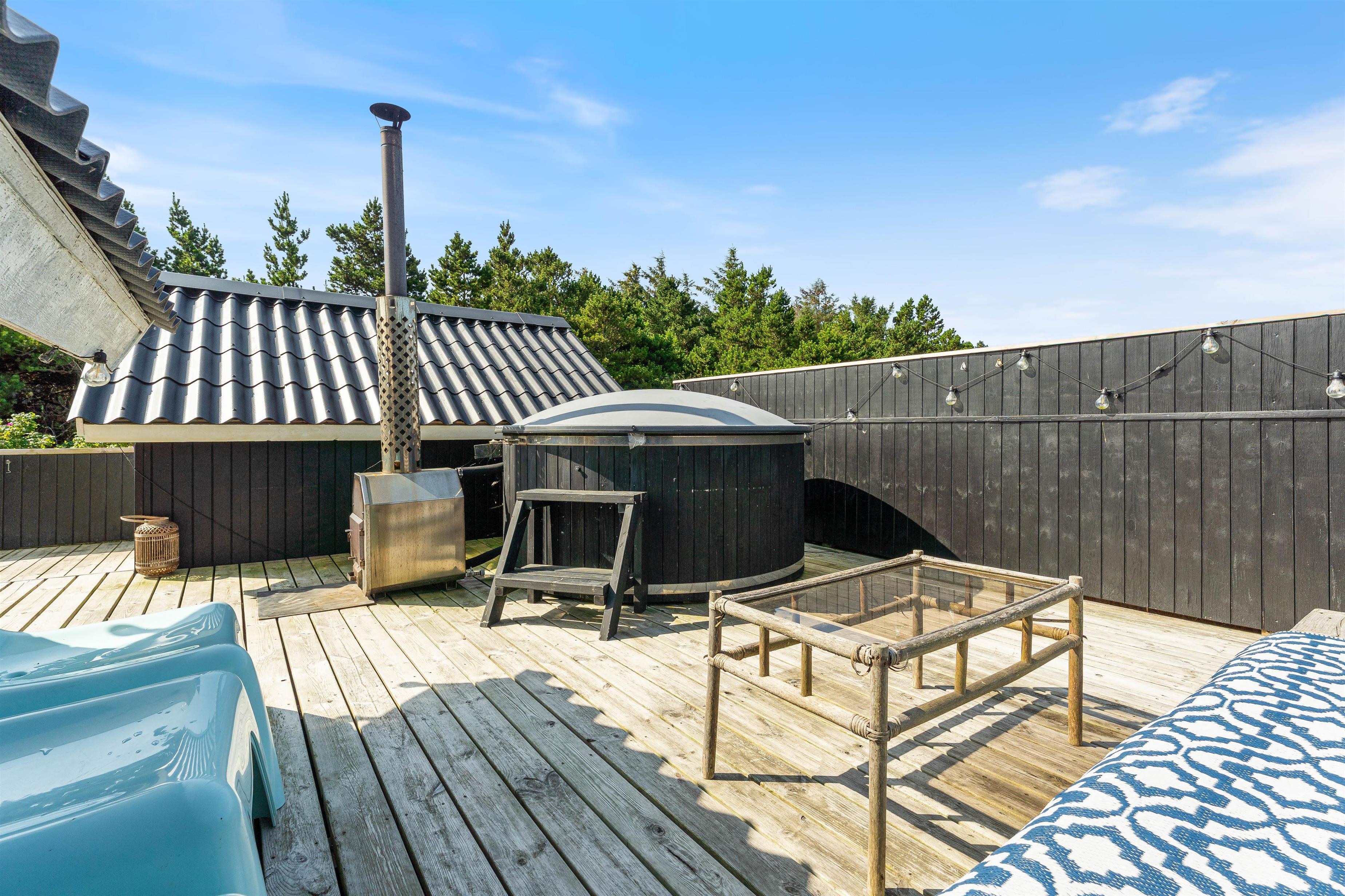 Immerse yourself in the unique tranquillity of the North Sea coast. Located at Sigfred Jensens Vej 24, this cosy 60-square-metre holiday home accommodates up to 4 guests and one dog. It's the perfect retreat after long beach walks, exciting excursions, or relaxing hours in nature. In the evening, unwind in the warm waters of the outdoor hot tub or enjoy the sea air from the enclosed terrace.