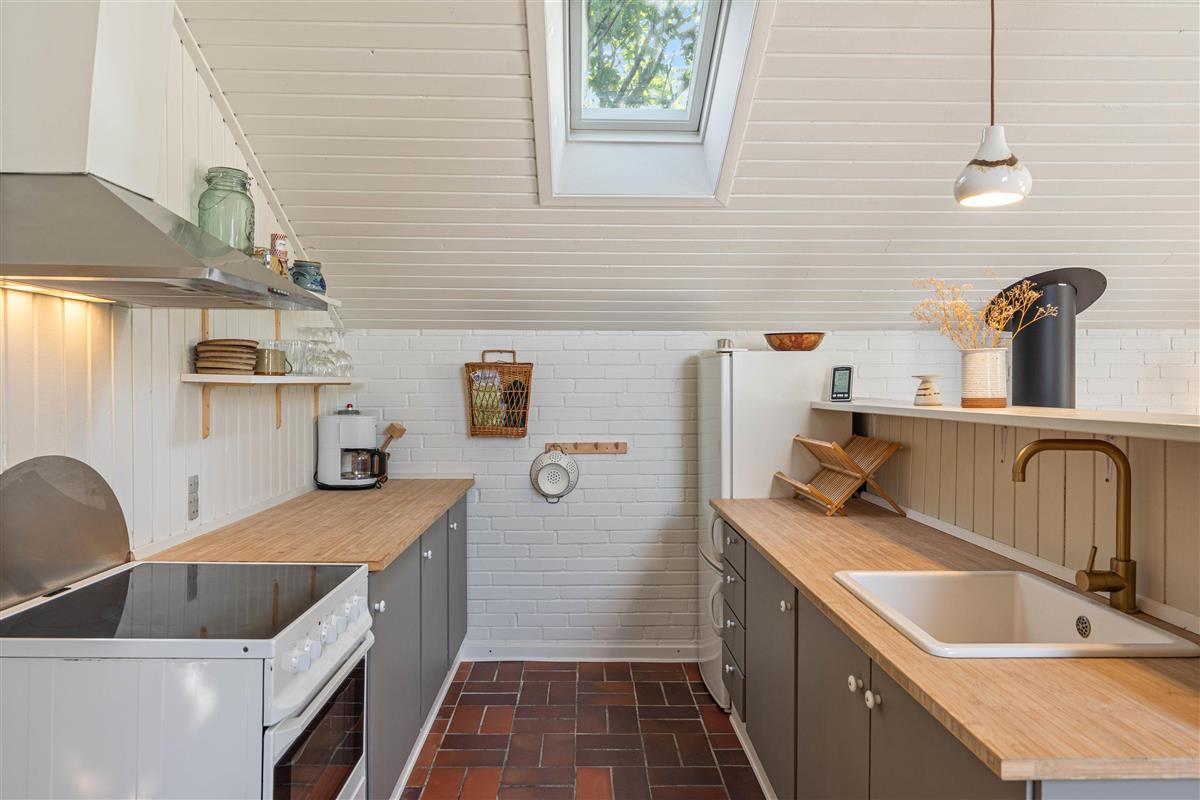 For entertainment, there's a TV and Bluetooth sound system. On cooler days, the wood-burning stove provides cosy warmth, while the modern heat pump maintains a pleasant indoor climate. The open-plan kitchen is equipped with everything you need for meal preparation.