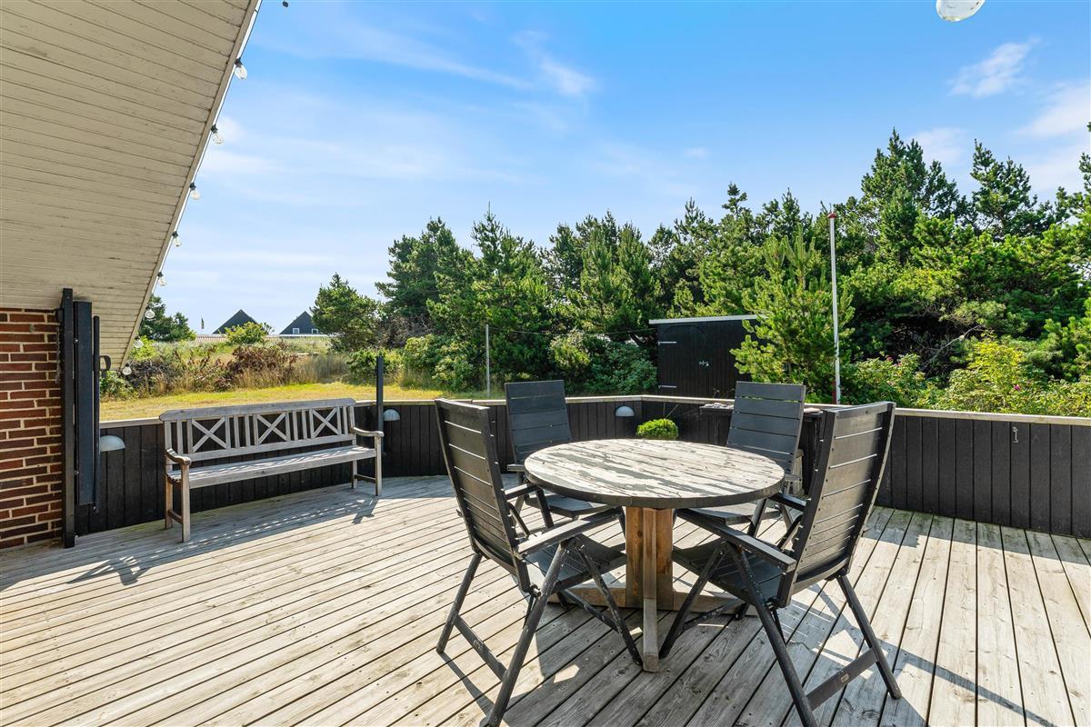 The outdoor area of this Bjerregård holiday home includes an impressive 1,219-square-metre garden plot, perfect for relaxation and play. On the enclosed terrace, you can end your day with a delicious barbecue meal, while comfortable garden furniture and sun loungers invite you to linger.