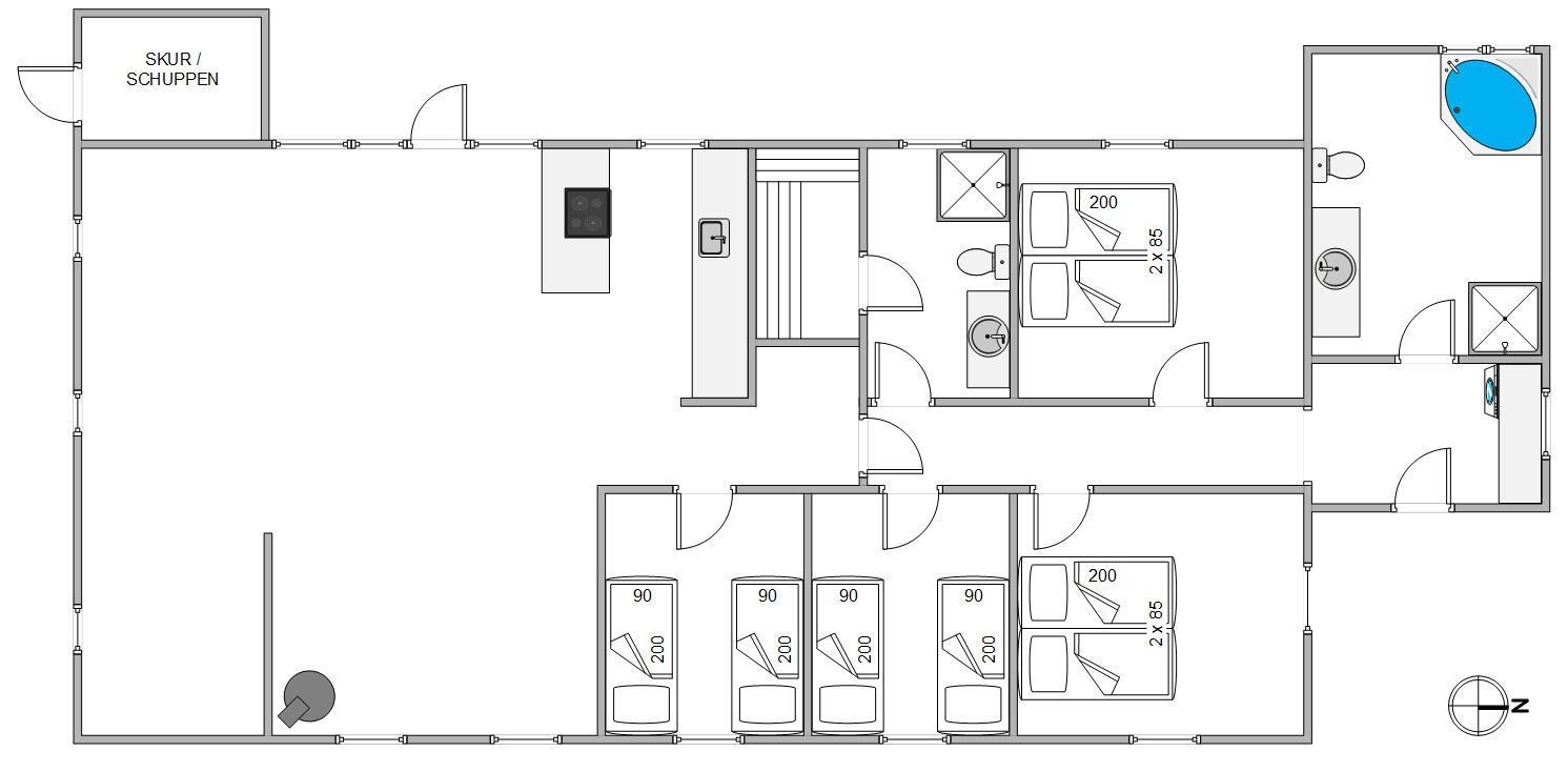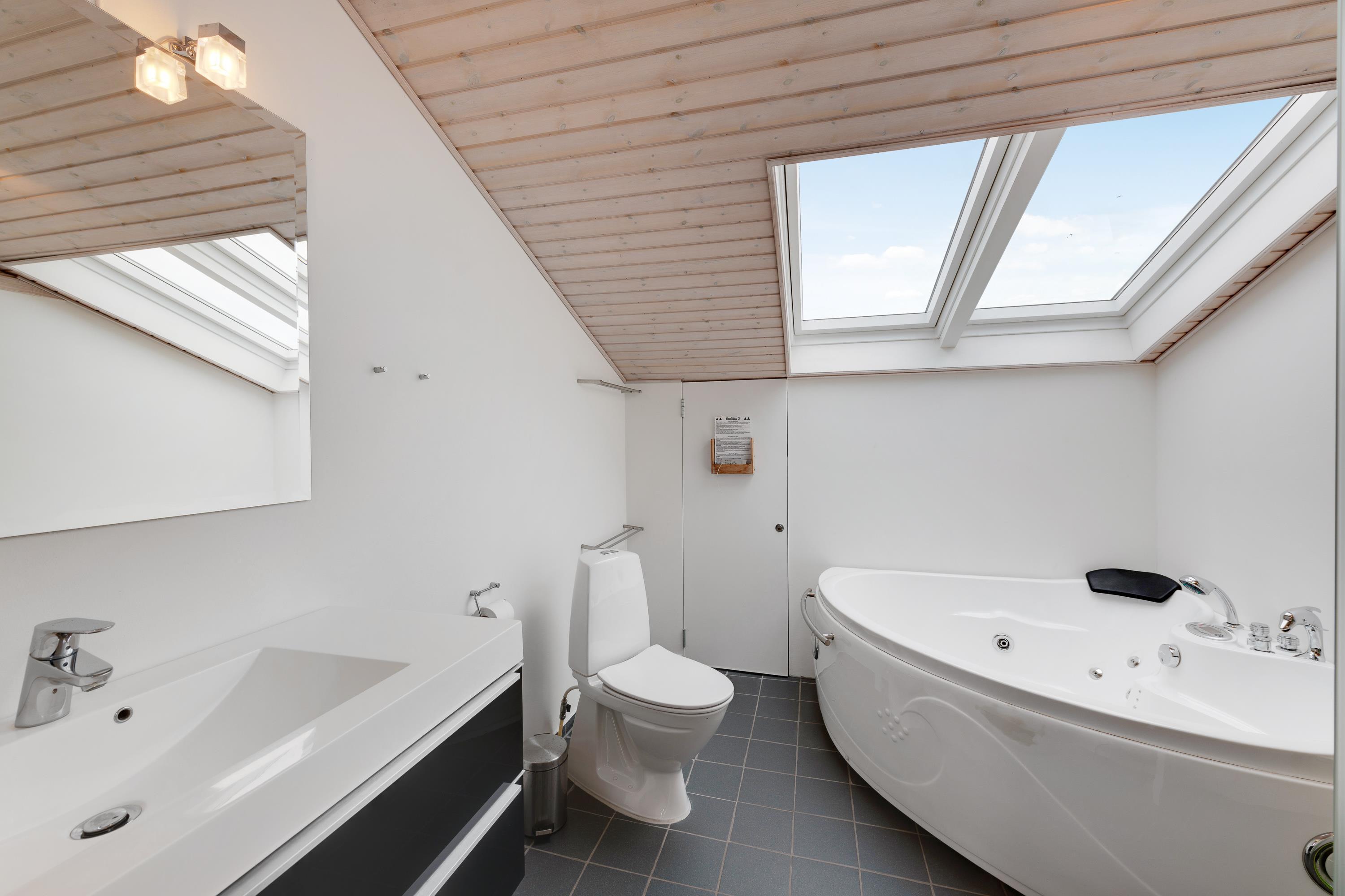 There are two modern bathrooms with underfloor heating, one of which houses the holiday home's wellness area featuring a hot tub and sauna. After a long day in the fresh North Sea air, you can treat yourself to a relaxing wellness session. Wind down the evening in front of the crackling wood-burning stove while darkness settles over the surrounding dune landscape.