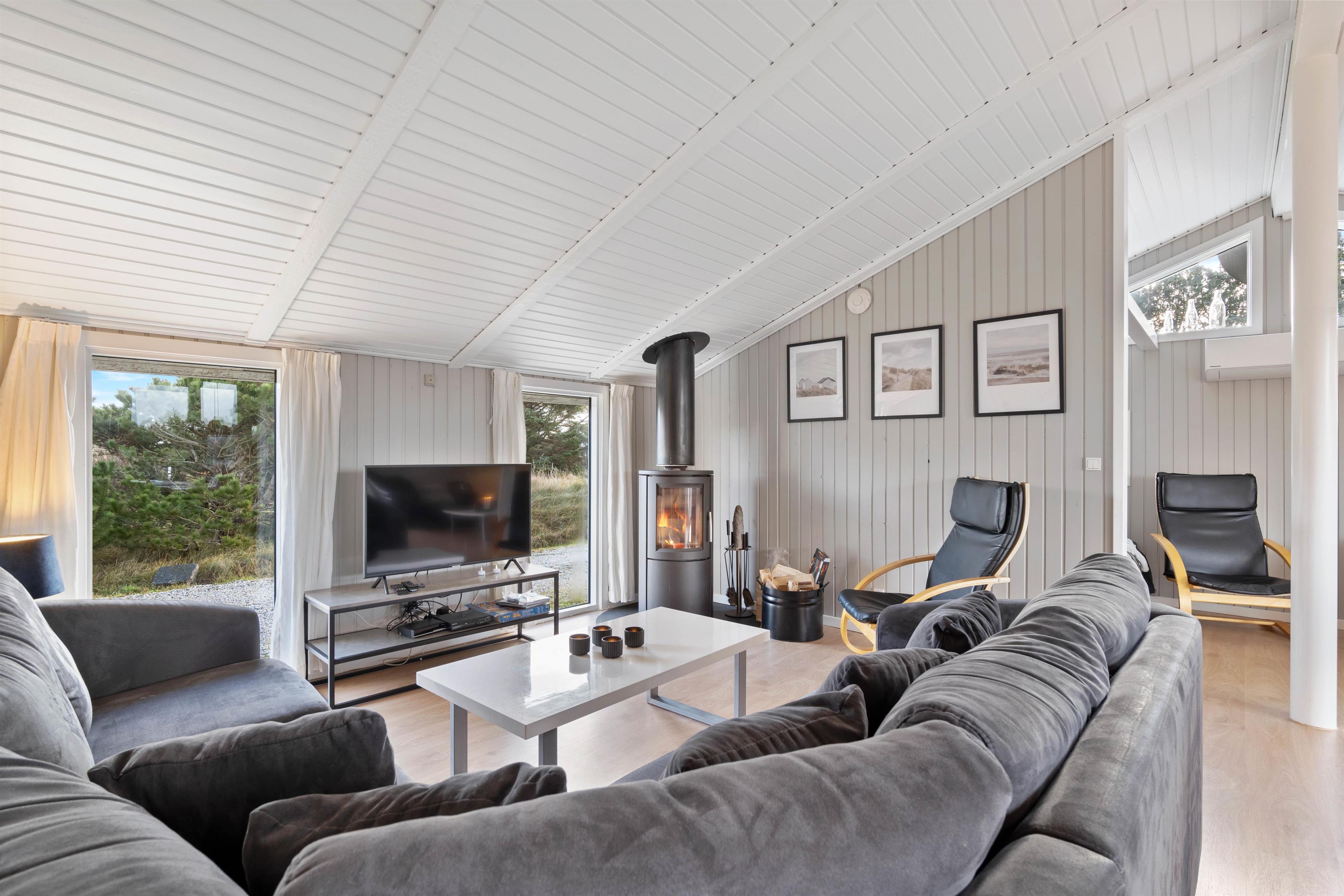 Located at Kirksvej 28, this welcoming holiday home sits on beautiful natural grounds. Accommodating up to 8 people, it's perfect for a fantastic family holiday. Your dogs are also welcome here. The house enjoys an excellent location between the fjord and sea. Both the magnificent North Sea beach and Ringkøbing Fjord are within easy walking distance. A small local shop is conveniently located nearby.