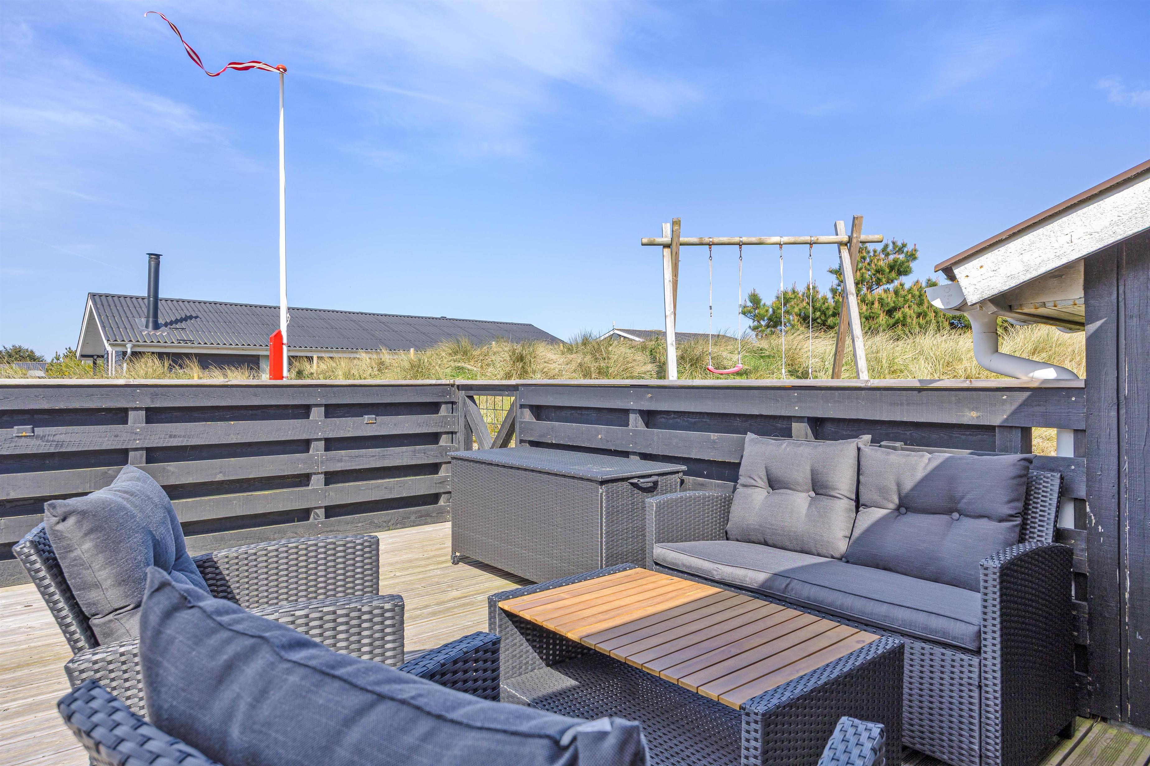From the living area, you have access to the large enclosed terrace furnished with comfortable garden furniture. On the other side of the house, there's a second, partially covered terrace, allowing you to enjoy the fresh sea air even during light rain. Younger guests will be delighted to find swings and a sandpit for playing.