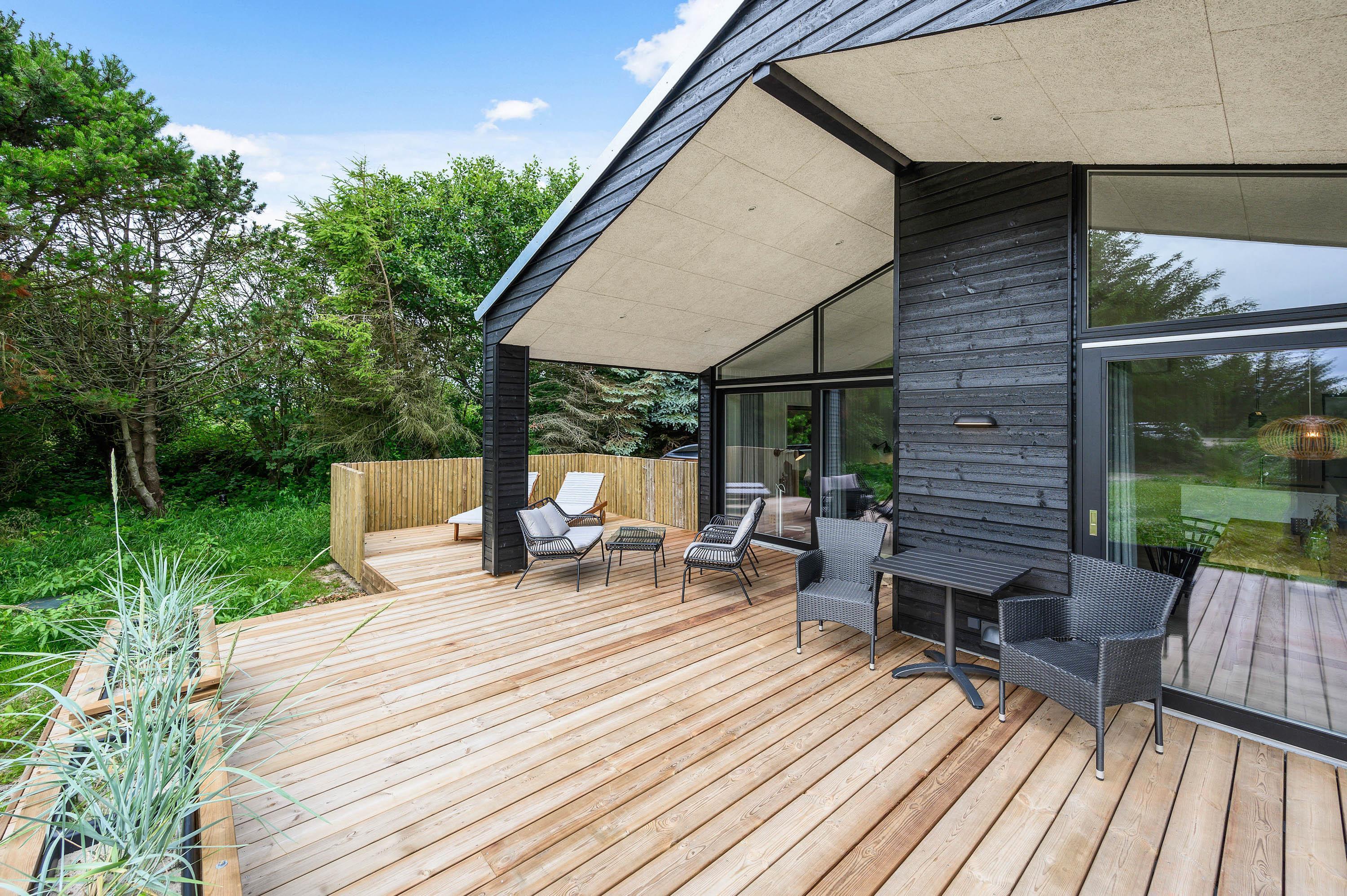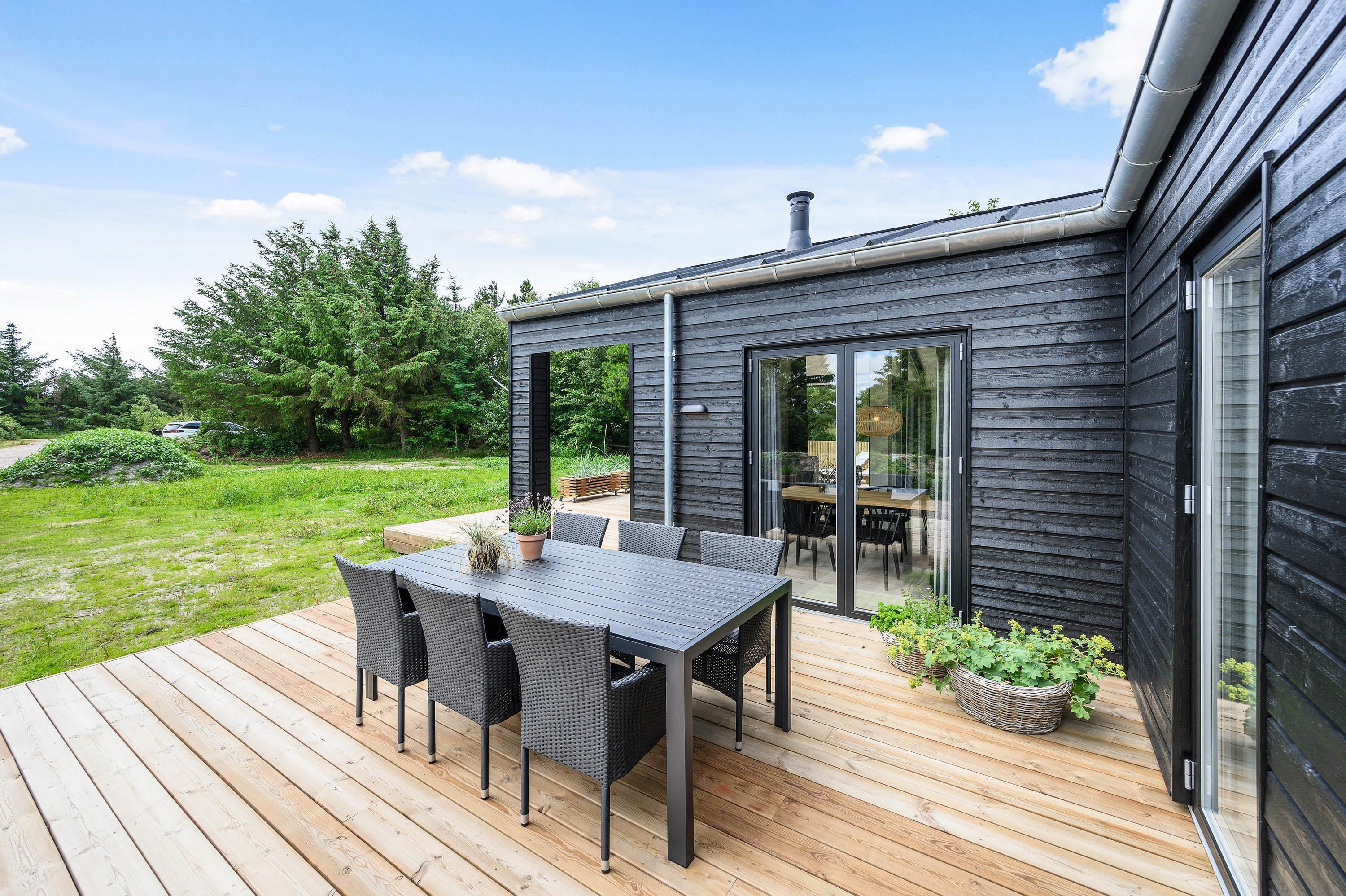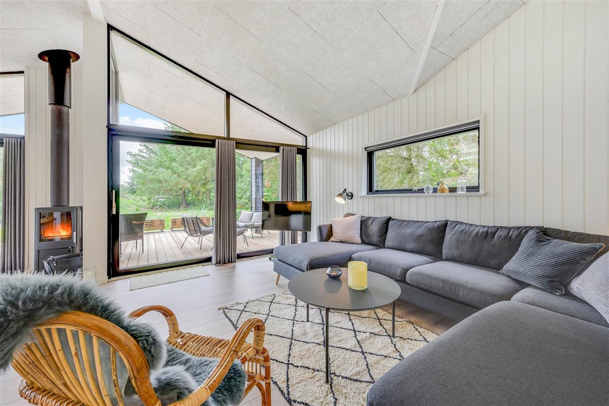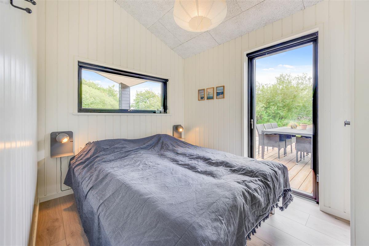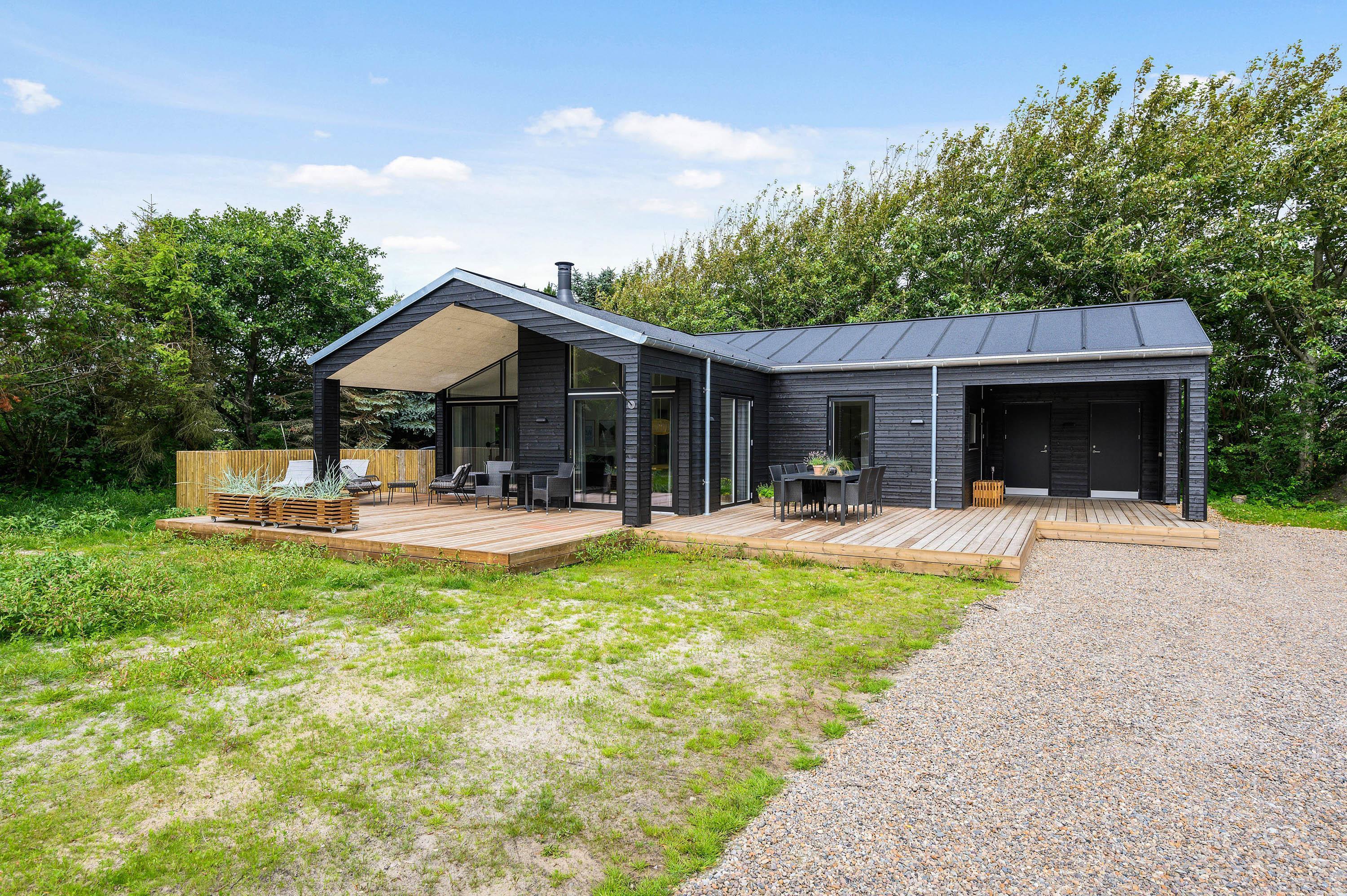 This beautiful 116-square-metre holiday home, built in 2020, is situated on a large natural plot at Bilbergsvej 6 A in Bjerregård.