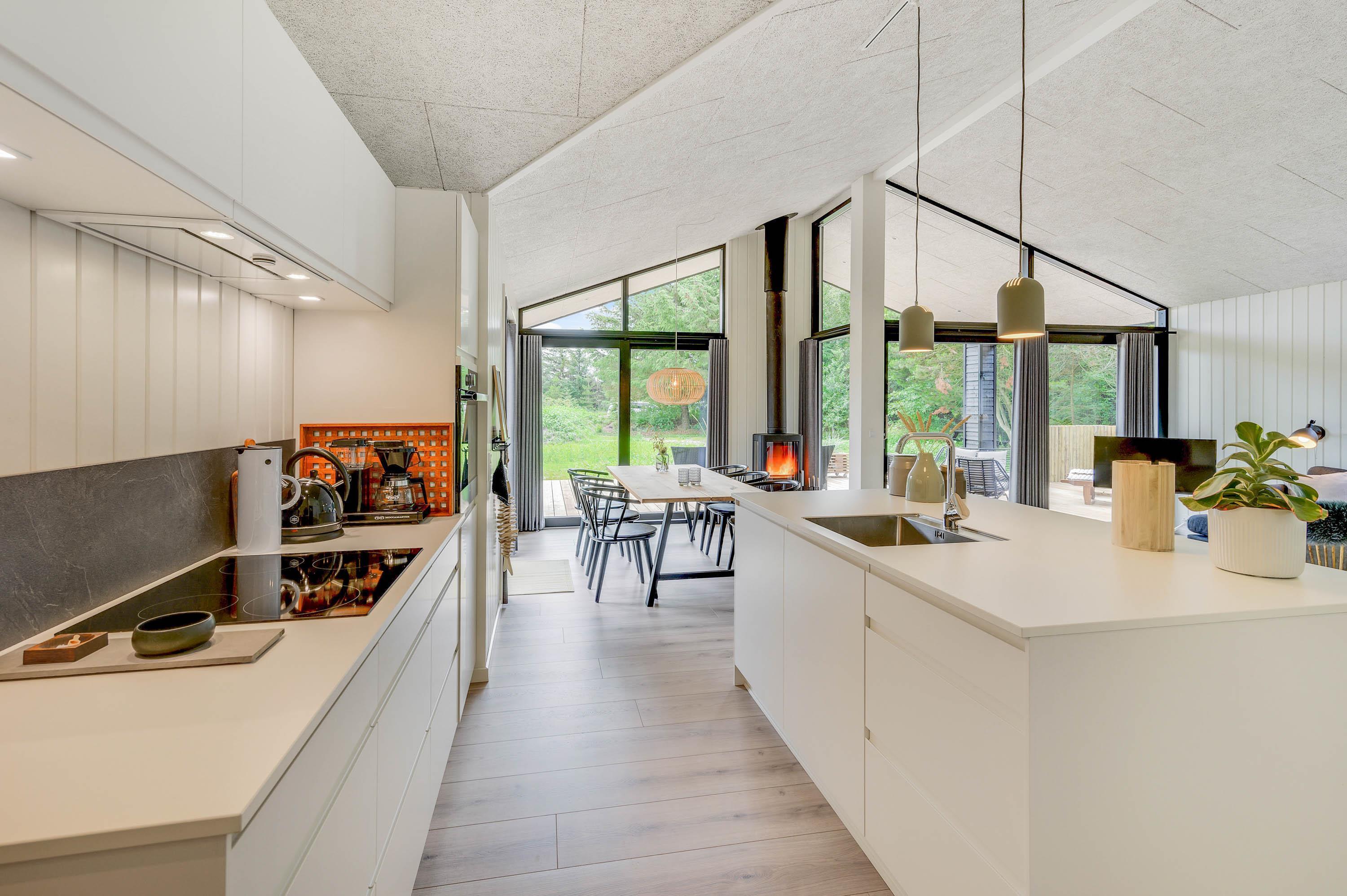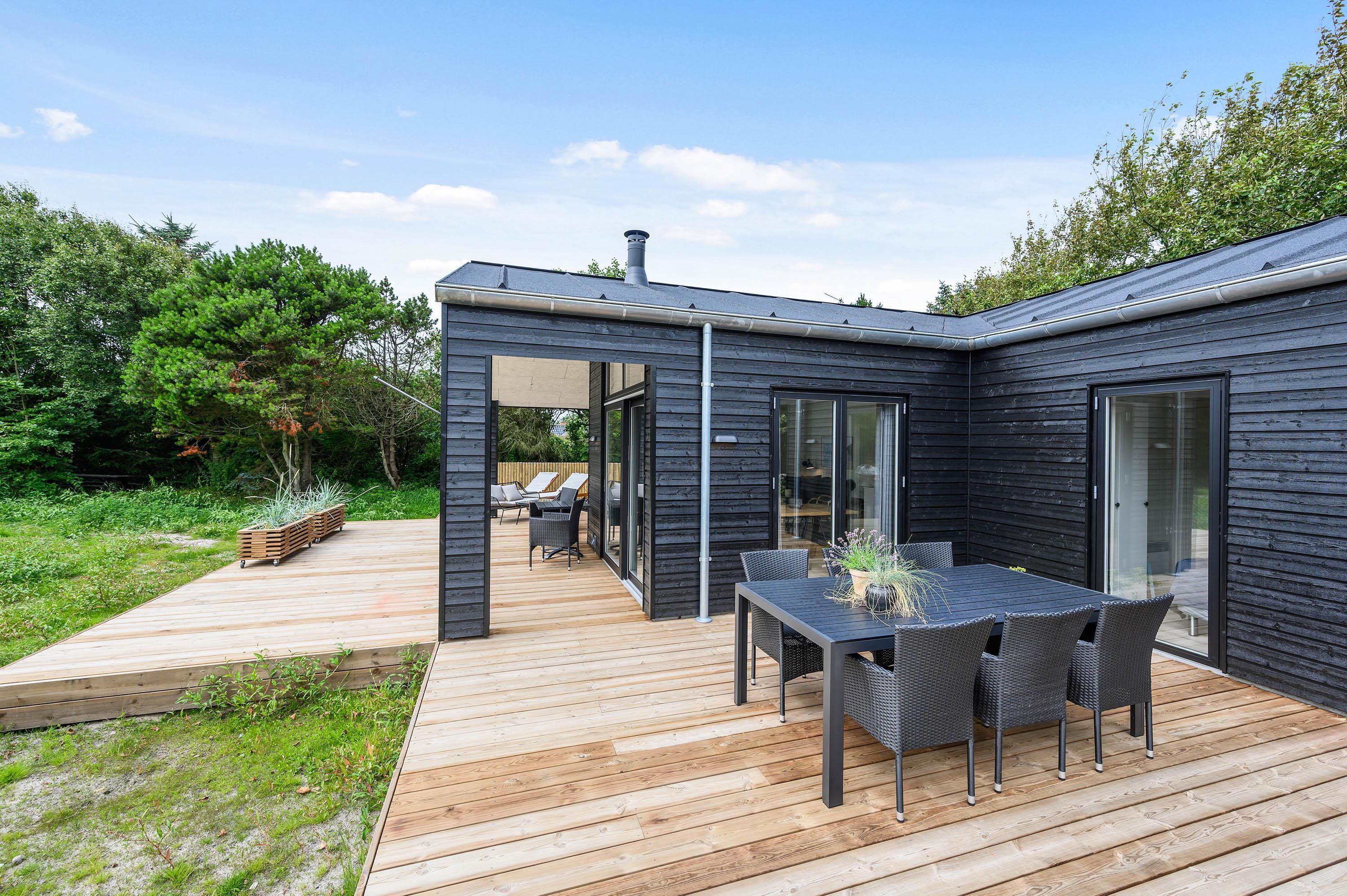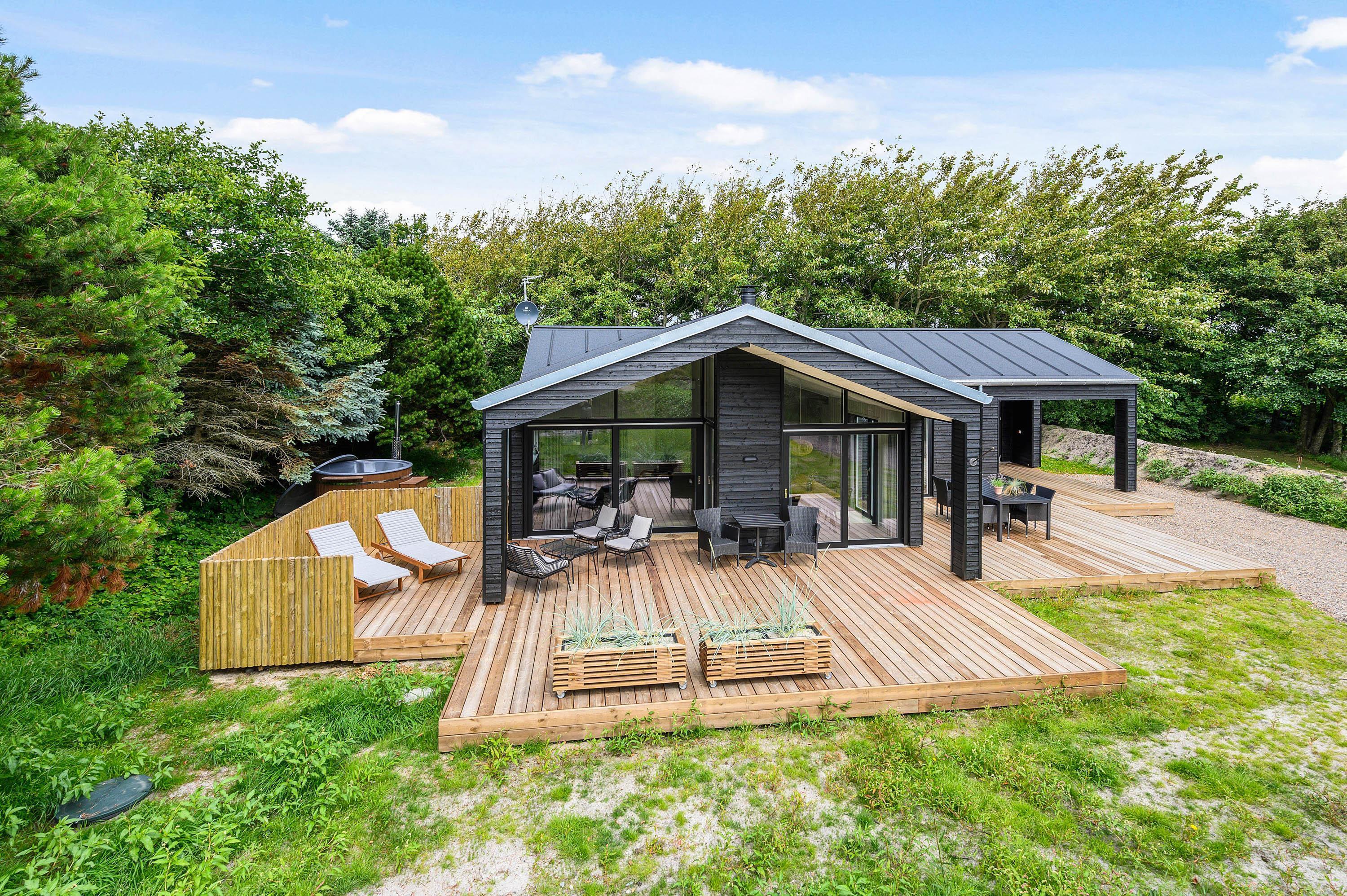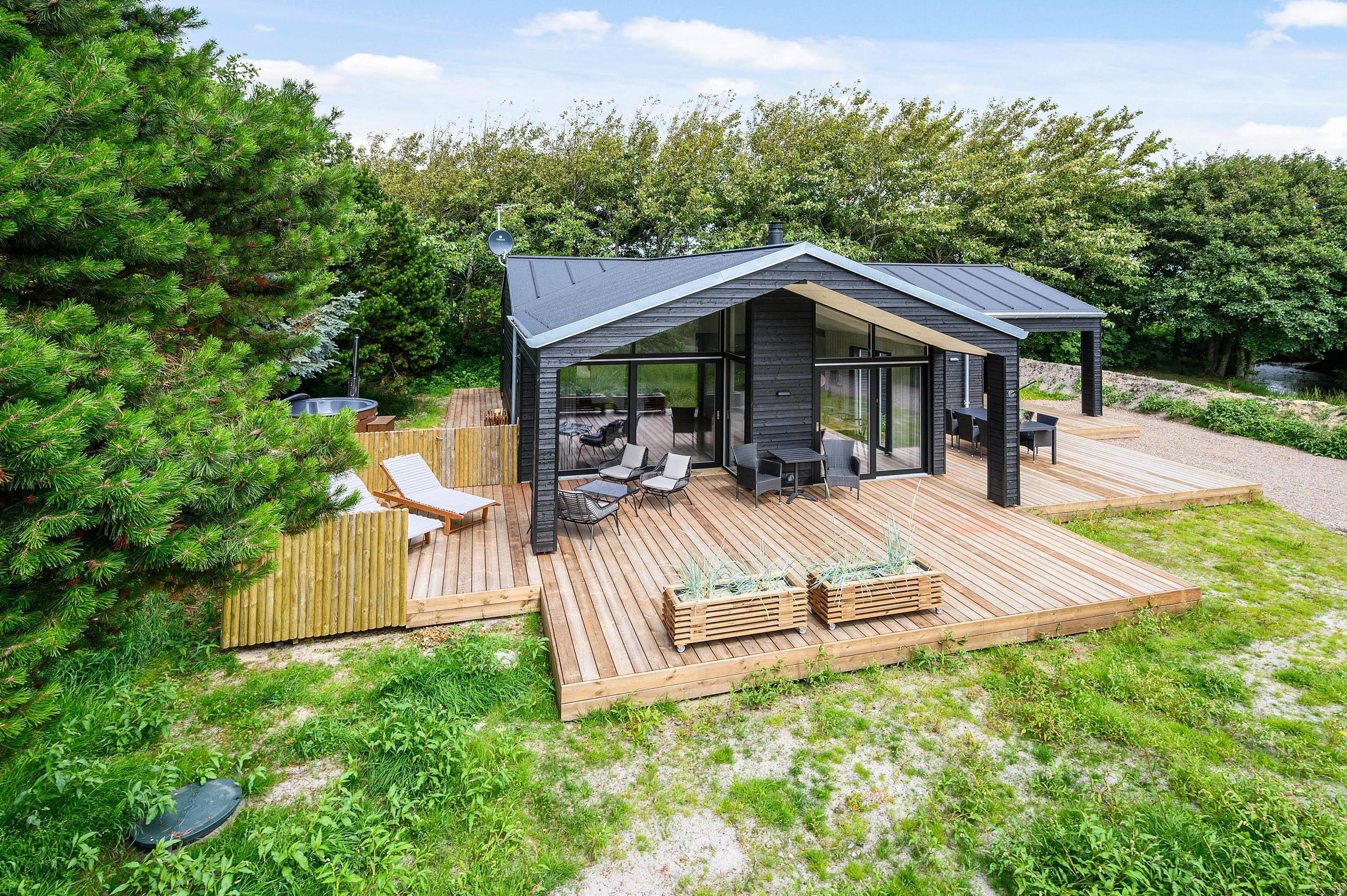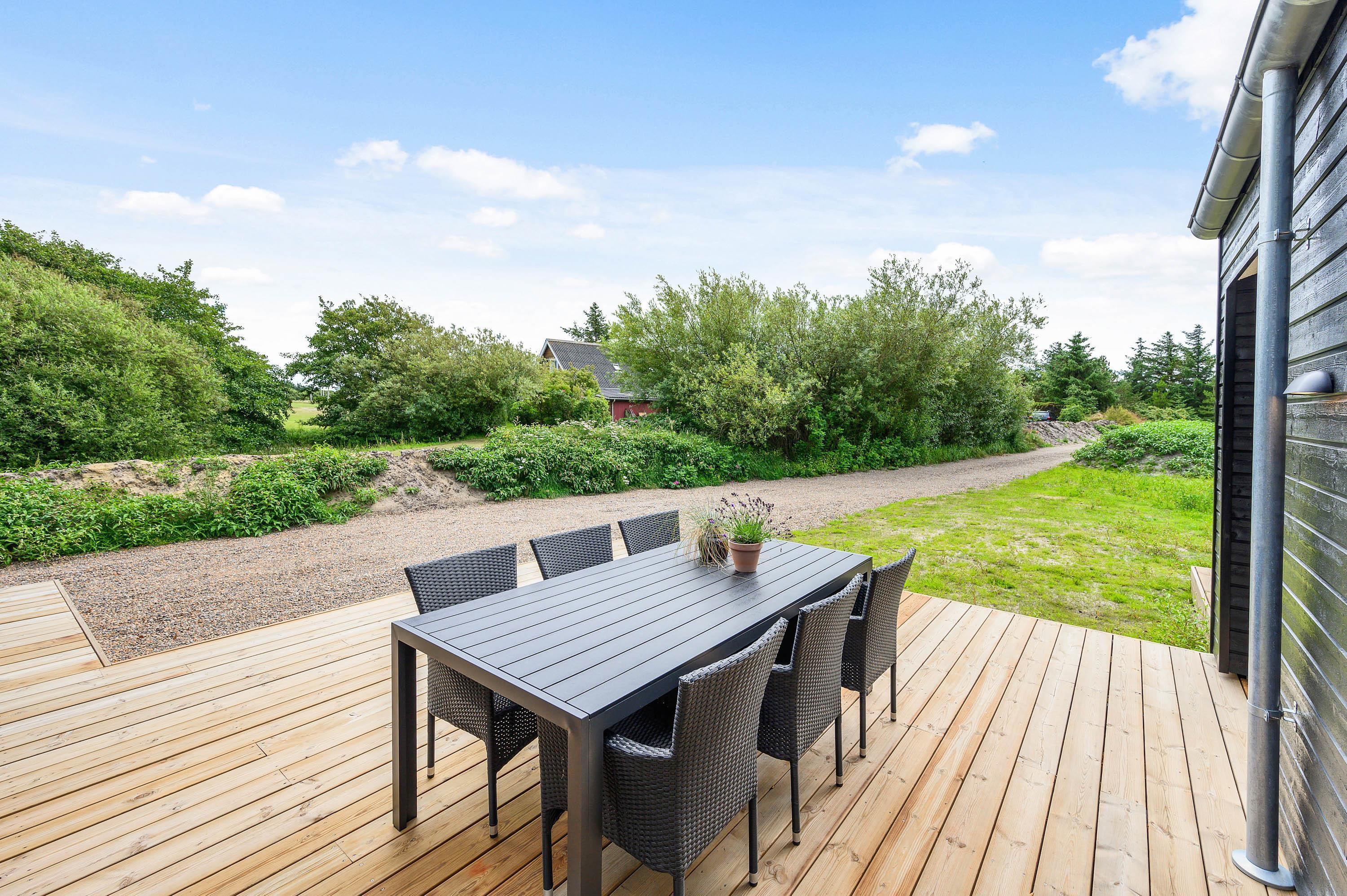 This beautiful 116-square-metre holiday home, built in 2020, is situated on a large natural plot at Bilbergsvej 6 A in Bjerregård.