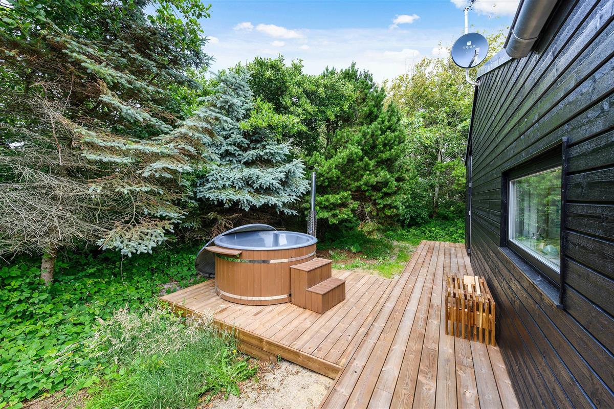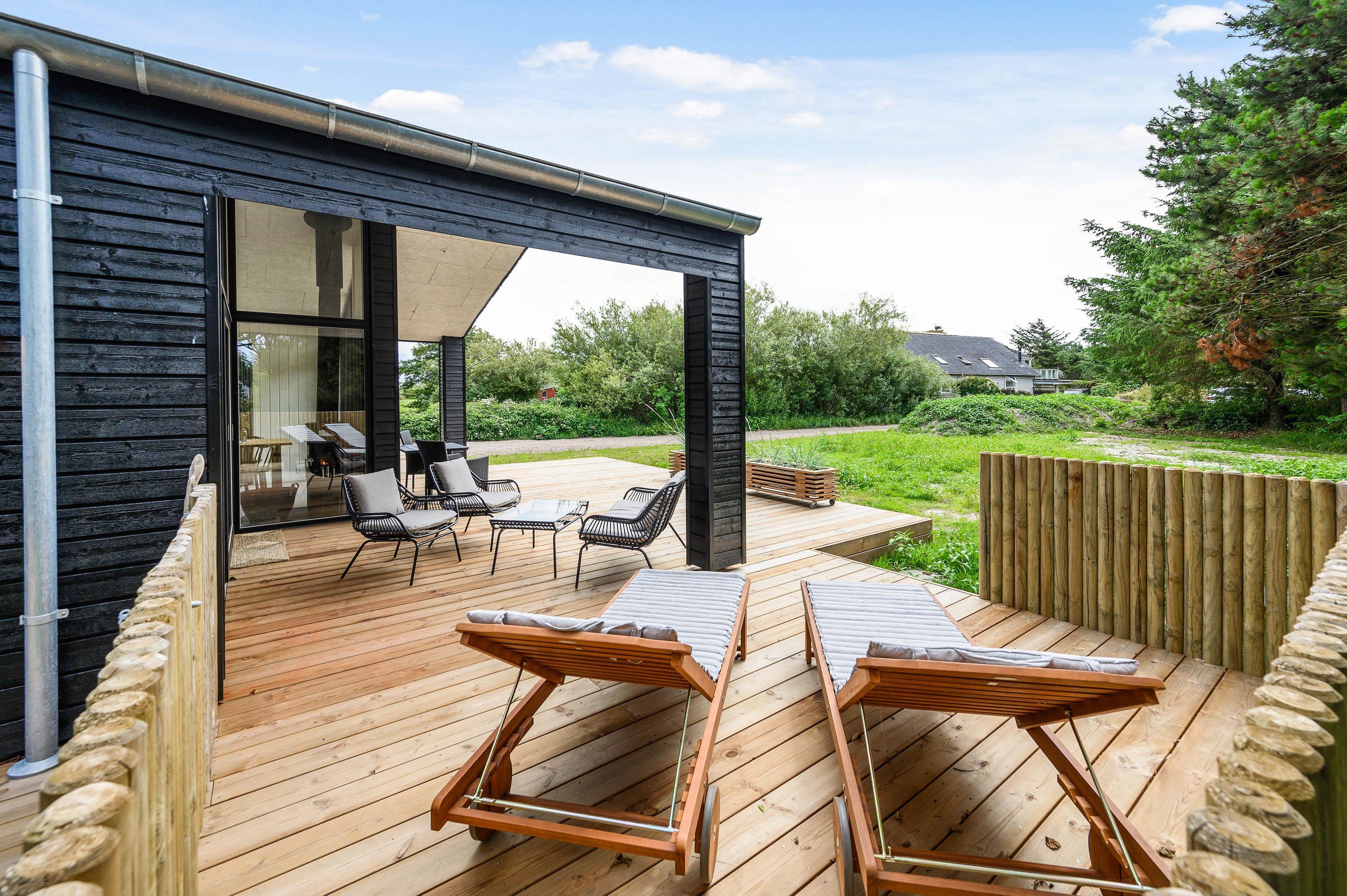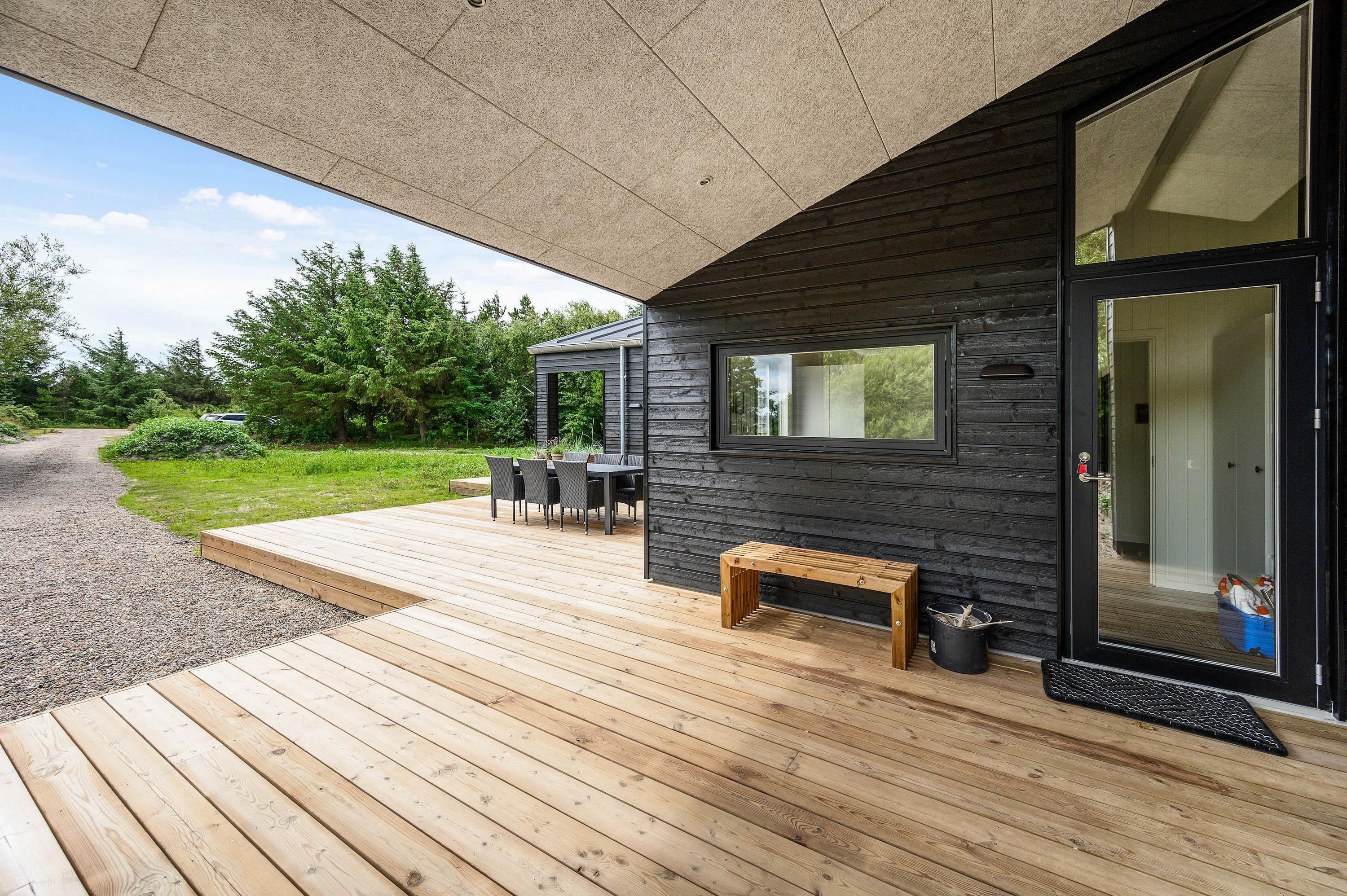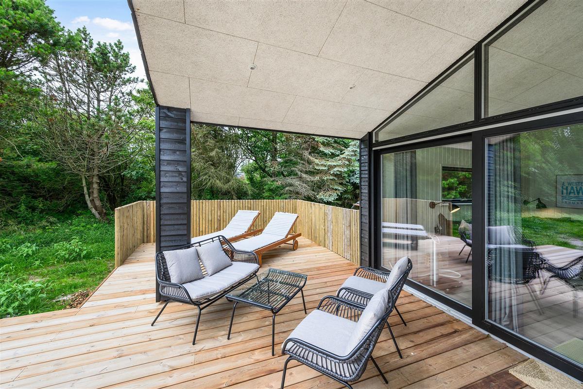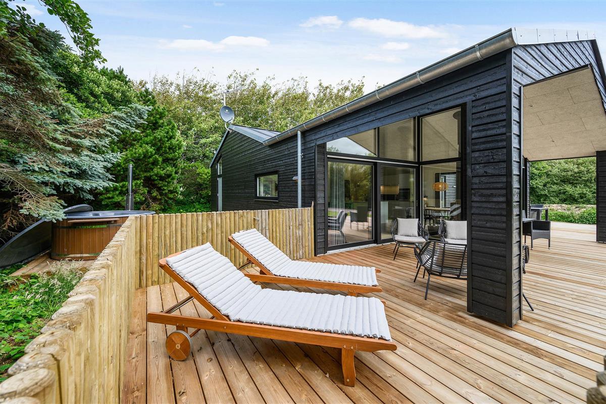 This beautiful 116-square-metre holiday home, built in 2020, is situated on a large natural plot at Bilbergsvej 6 A in Bjerregård.