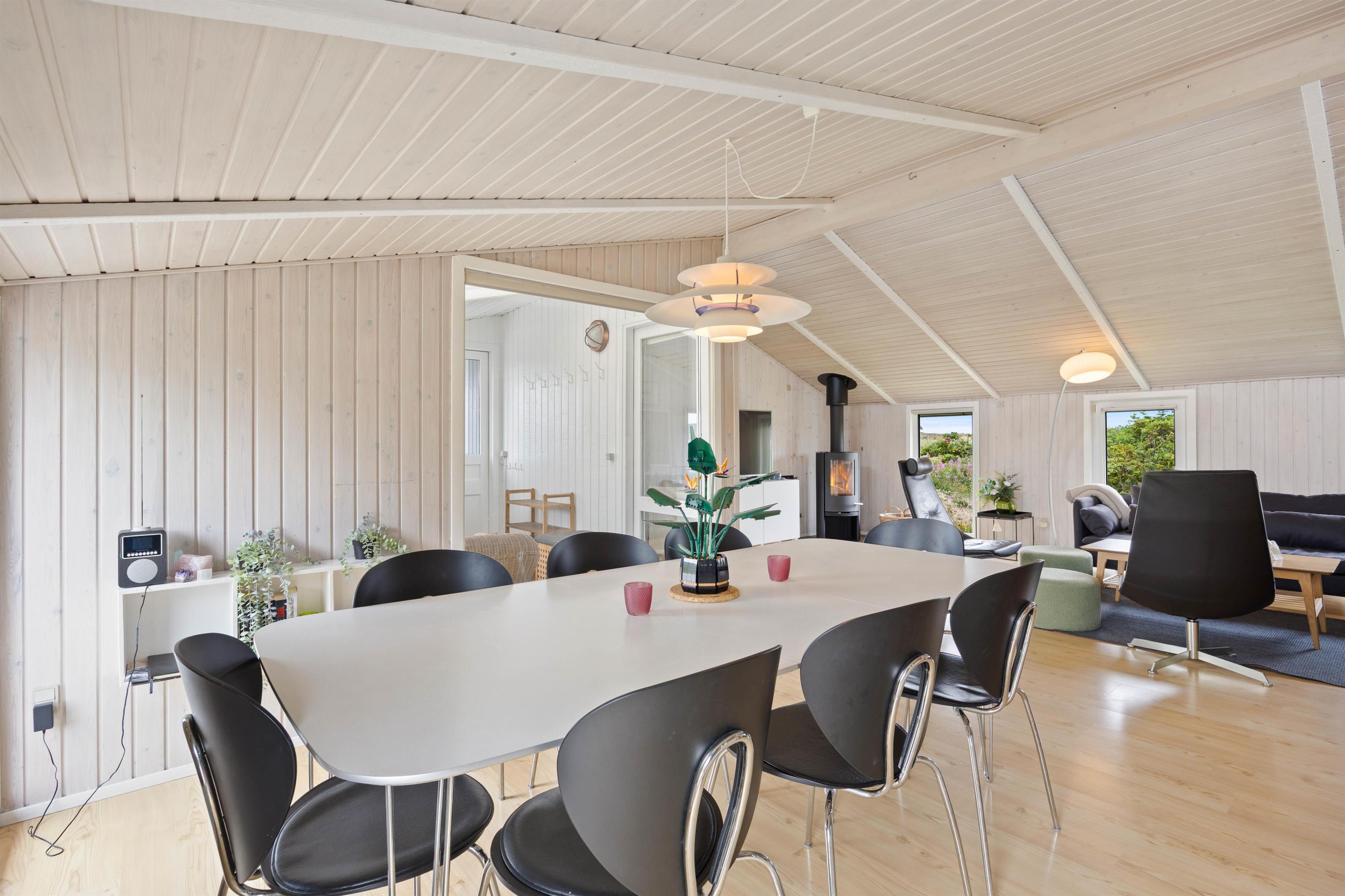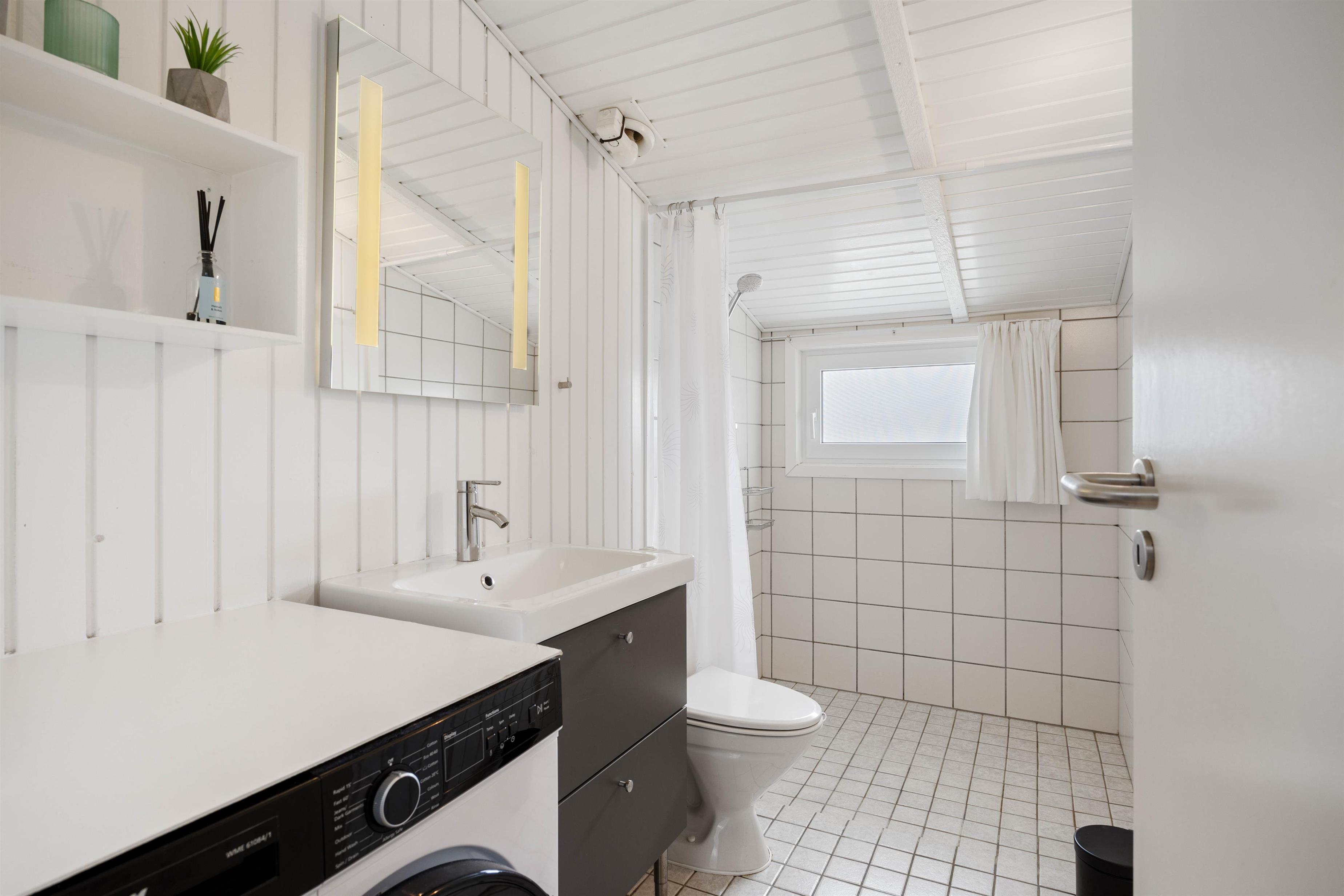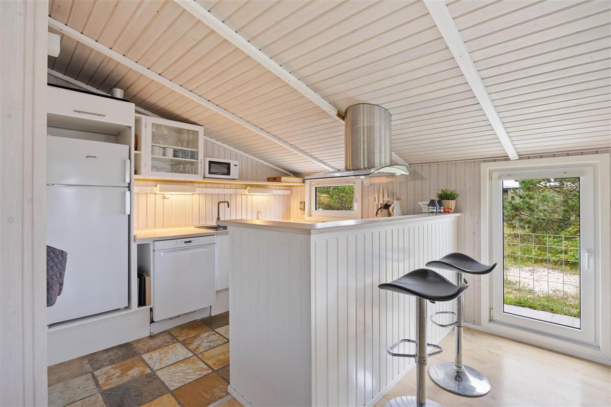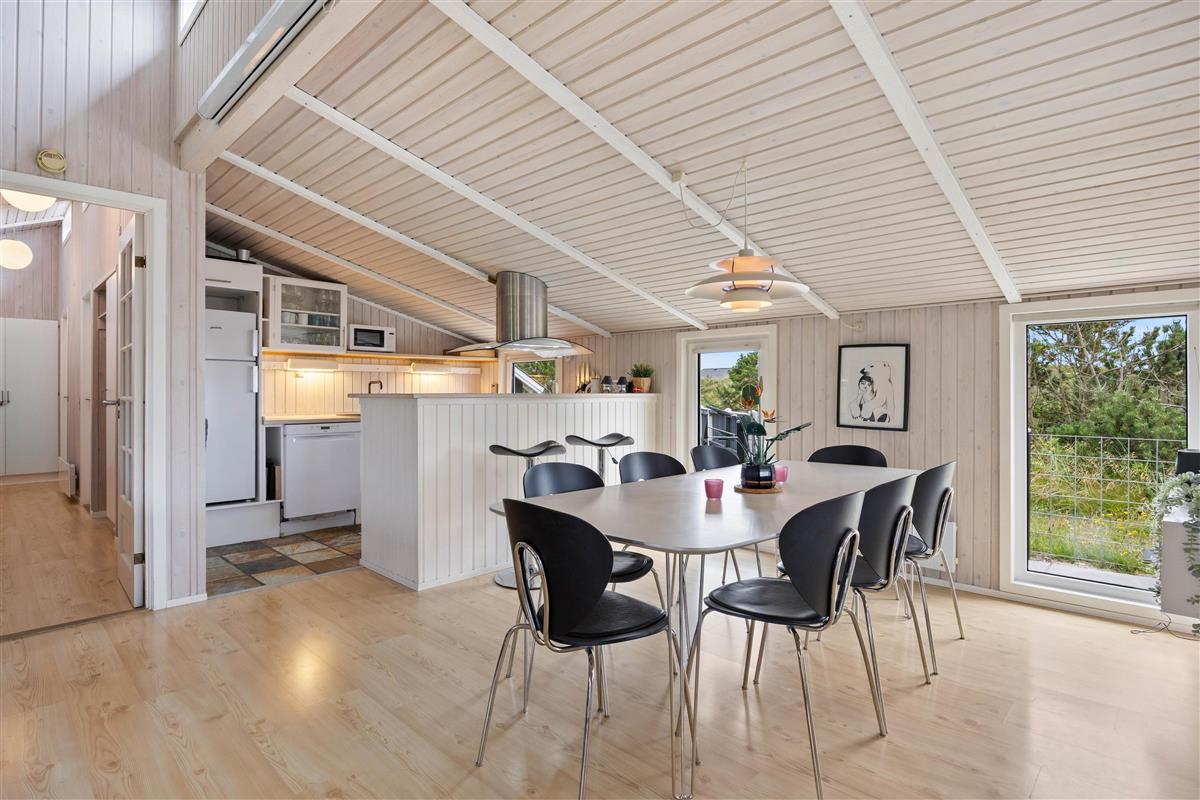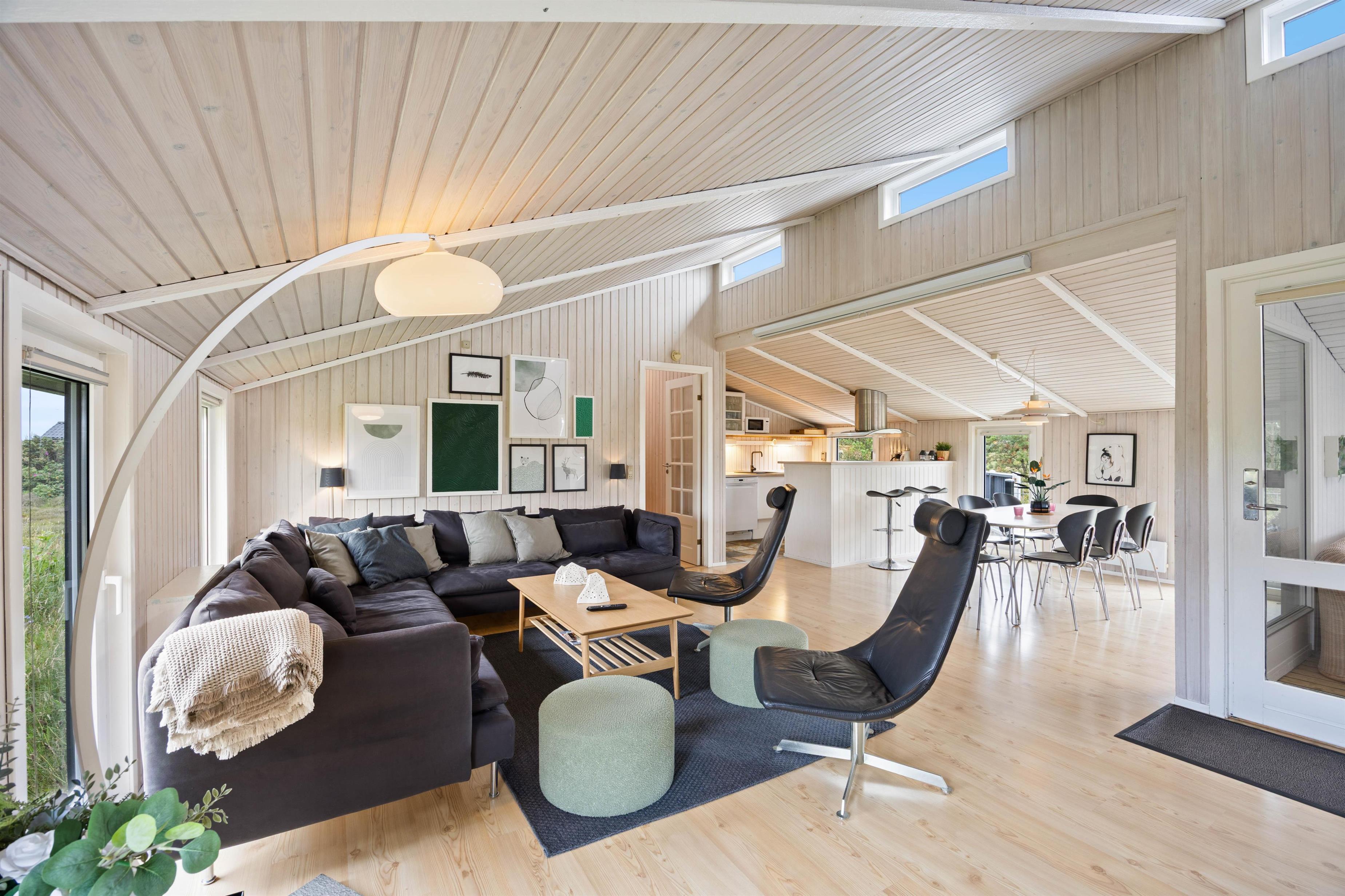 The heart of this holiday home at Arvidvej 156 is its spacious living room, perfect for family gatherings. Light wooden ceilings and walls, along with comfortable seating, create a cosy atmosphere that invites you to linger. Light the wood-burning stove and enjoy its pleasant warmth – pure Danish hygge. Alternatively, the energy-efficient heat pump provides heating throughout.