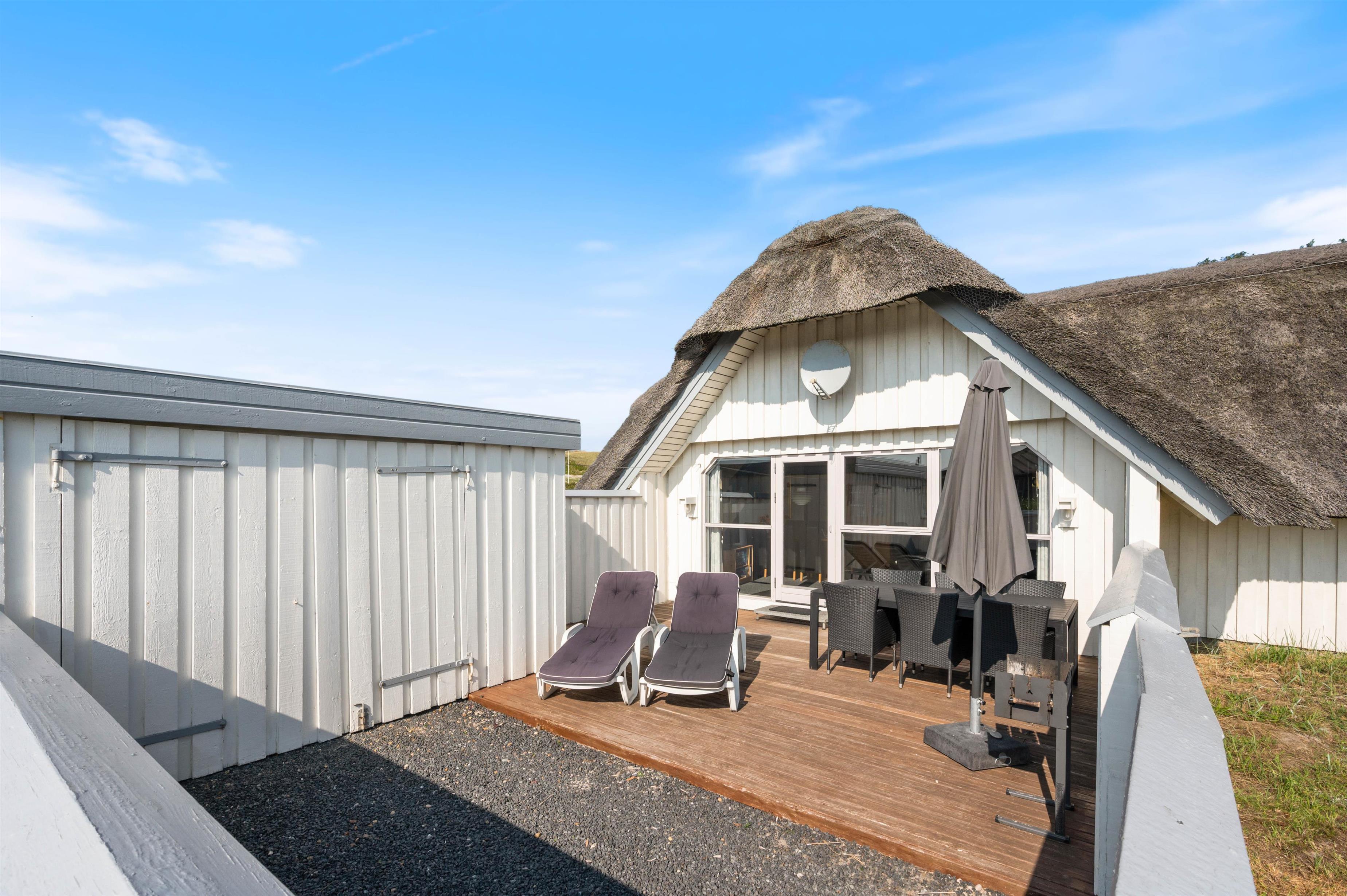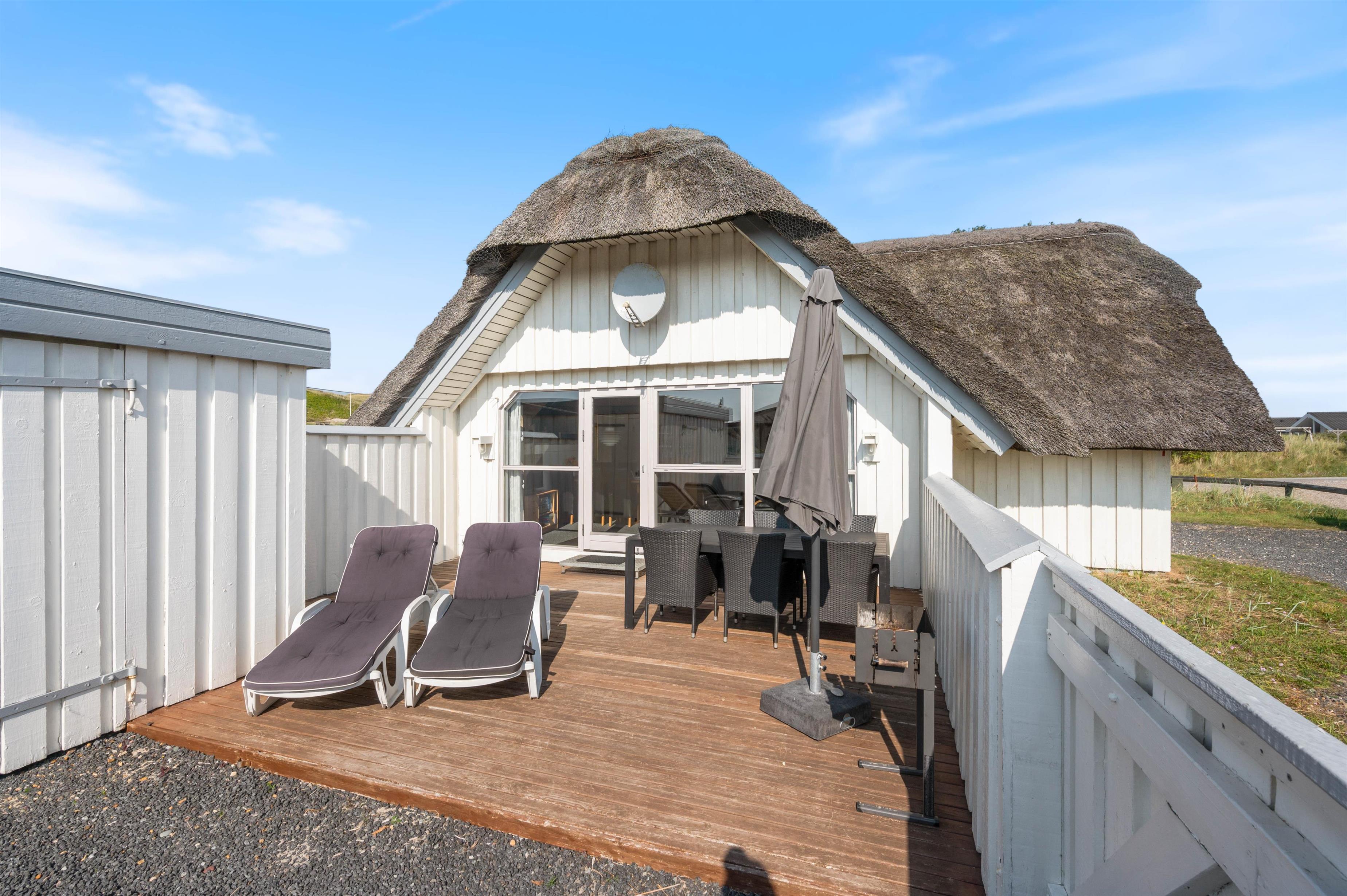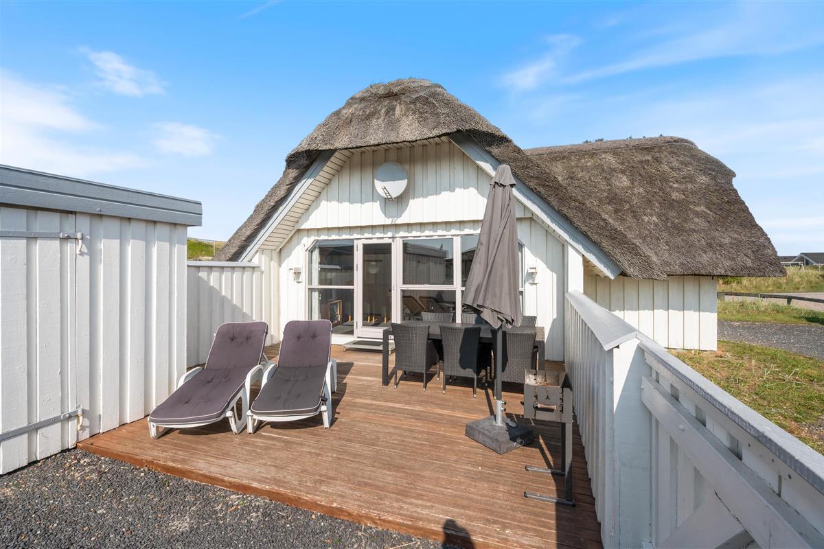 This wooden-built, thatched roof holiday home represents a quintessential Danish holiday home. The summer house enjoys a beautiful and attractive location, just 100 metres from the North Sea coast's miles-long sandy beach. The lovely enclosed south-facing terrace is perfect for both children and dogs, offering excellent shelter from the wind.