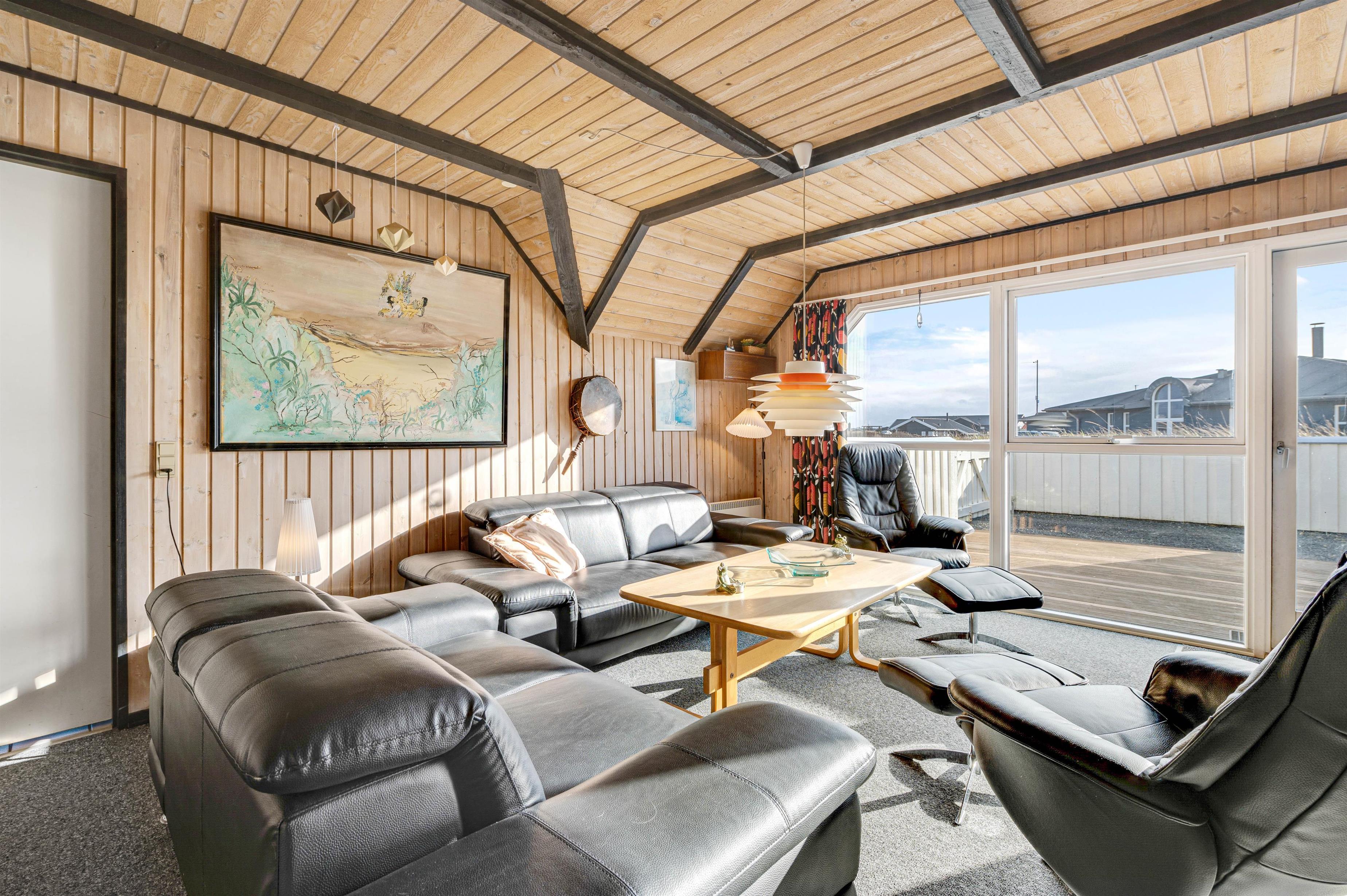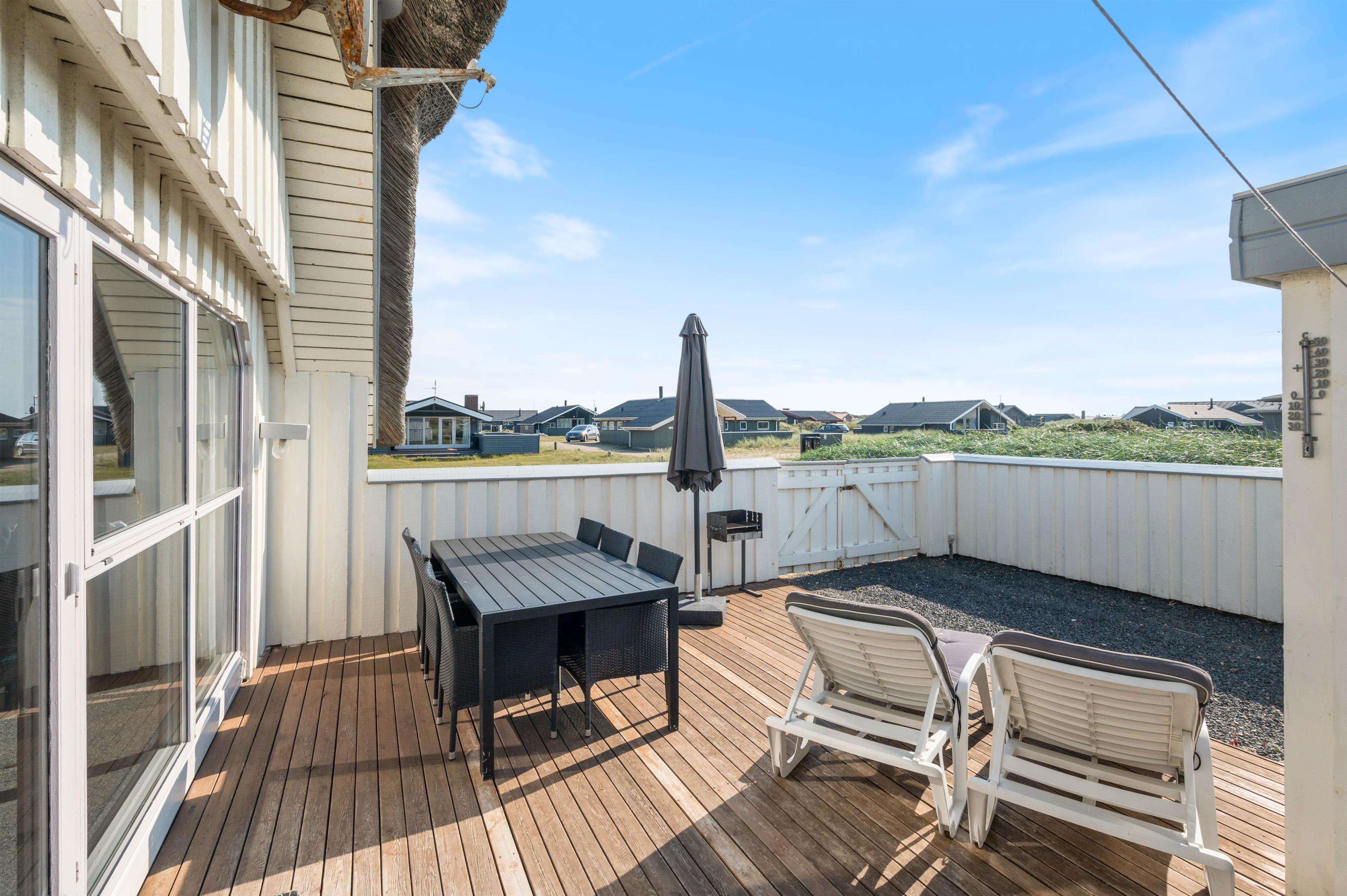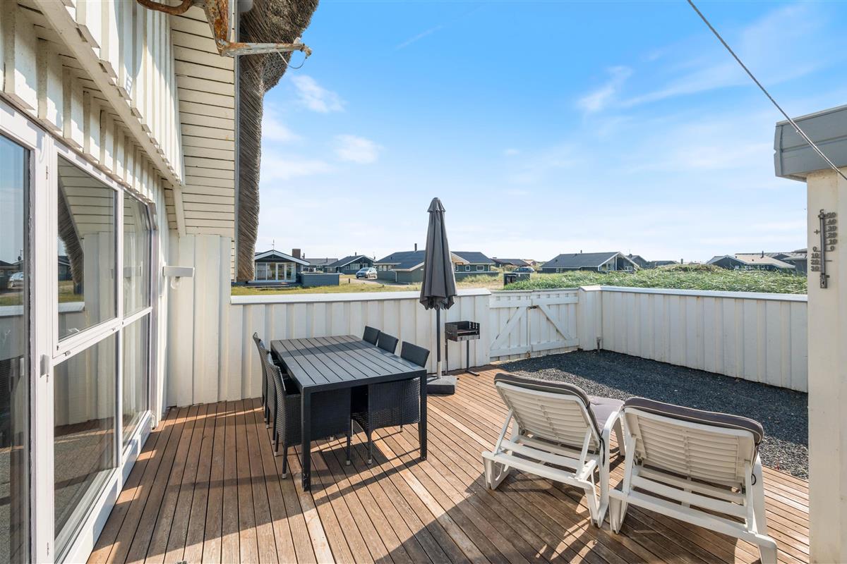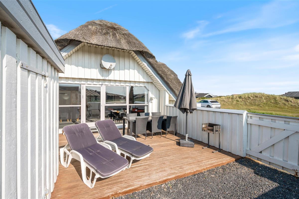 This wooden-built, thatched roof holiday home represents a quintessential Danish holiday home. The summer house enjoys a beautiful and attractive location, just 100 metres from the North Sea coast's miles-long sandy beach. The lovely enclosed south-facing terrace is perfect for both children and dogs, offering excellent shelter from the wind.