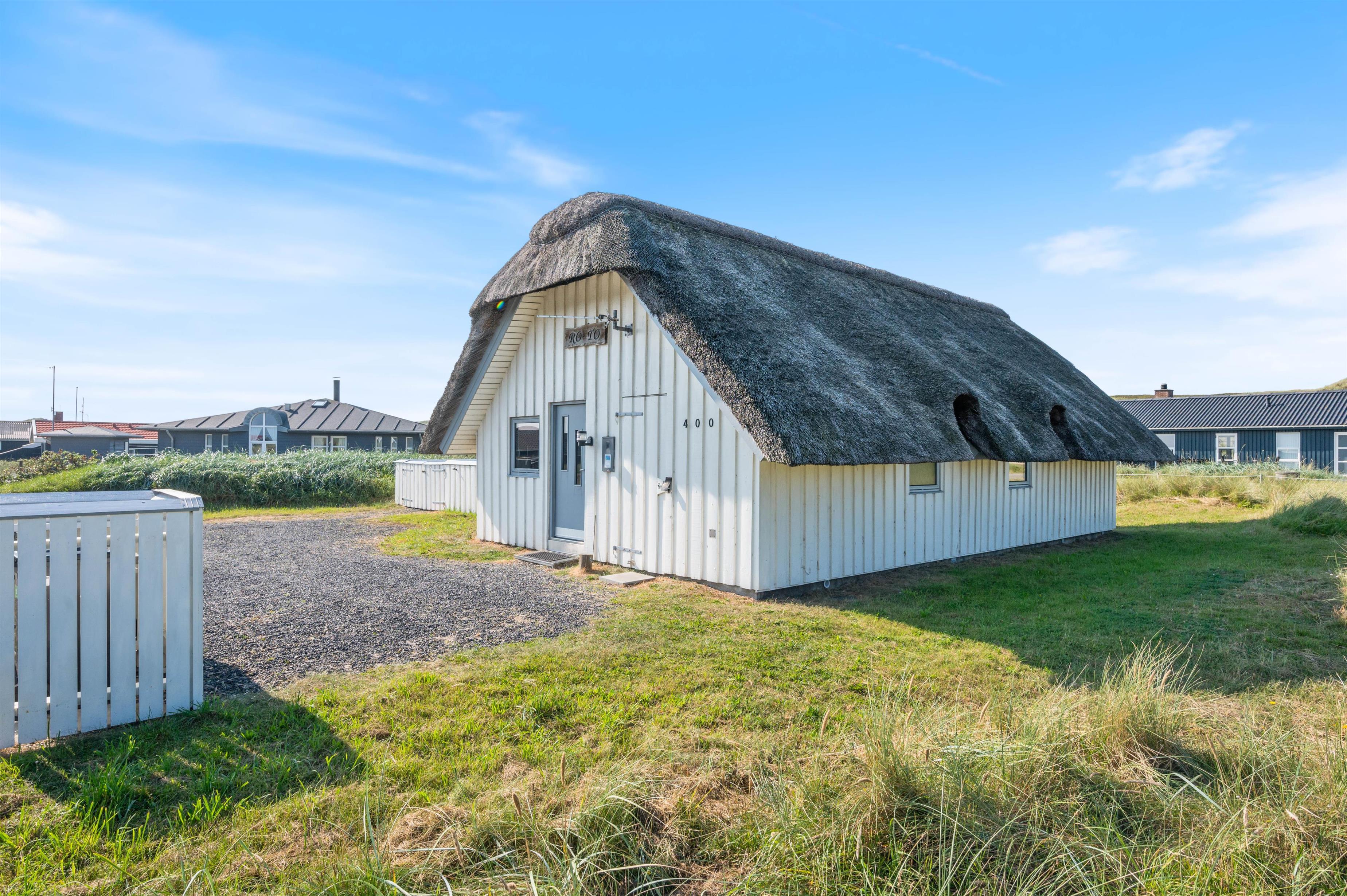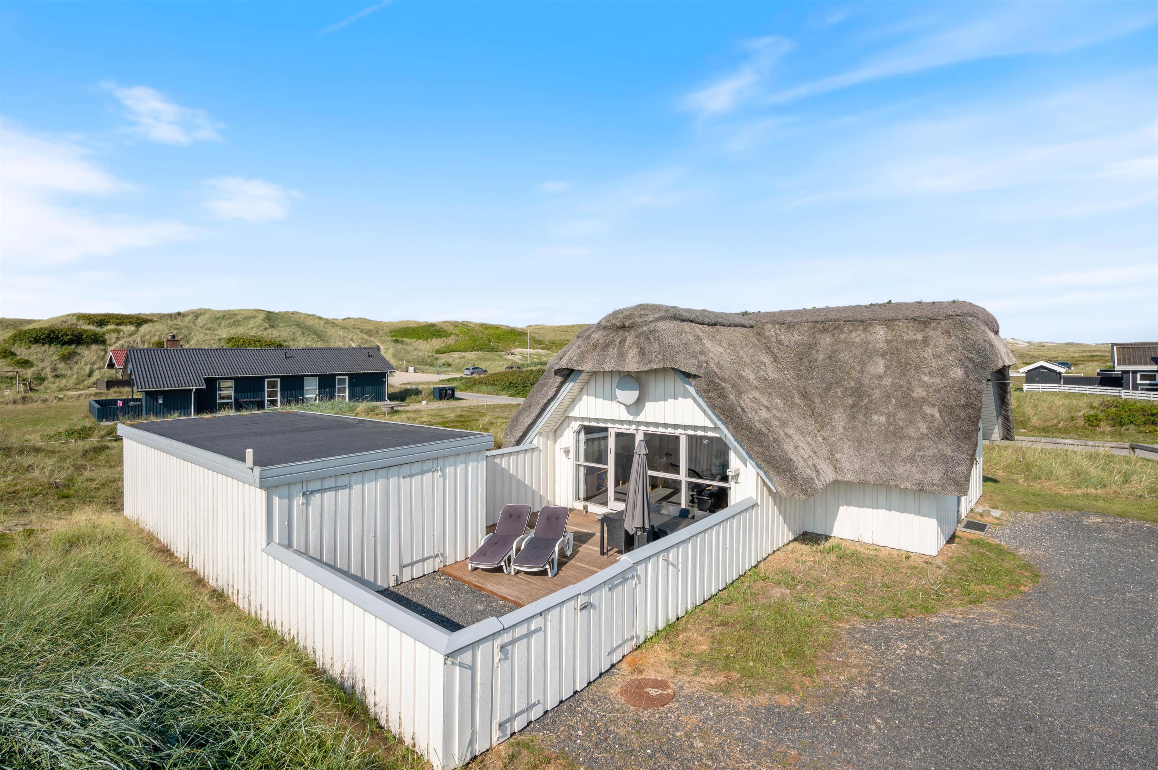 Located at Bjerregårdsvej 400, this well-maintained and charming thatched roof holiday home with sauna enjoys an excellent position close to the dunes of the Danish West Coast. The holiday home accommodates five people and features an energy-efficient heat pump. Your dog is also welcome and can look forward to long beach walks with you.
