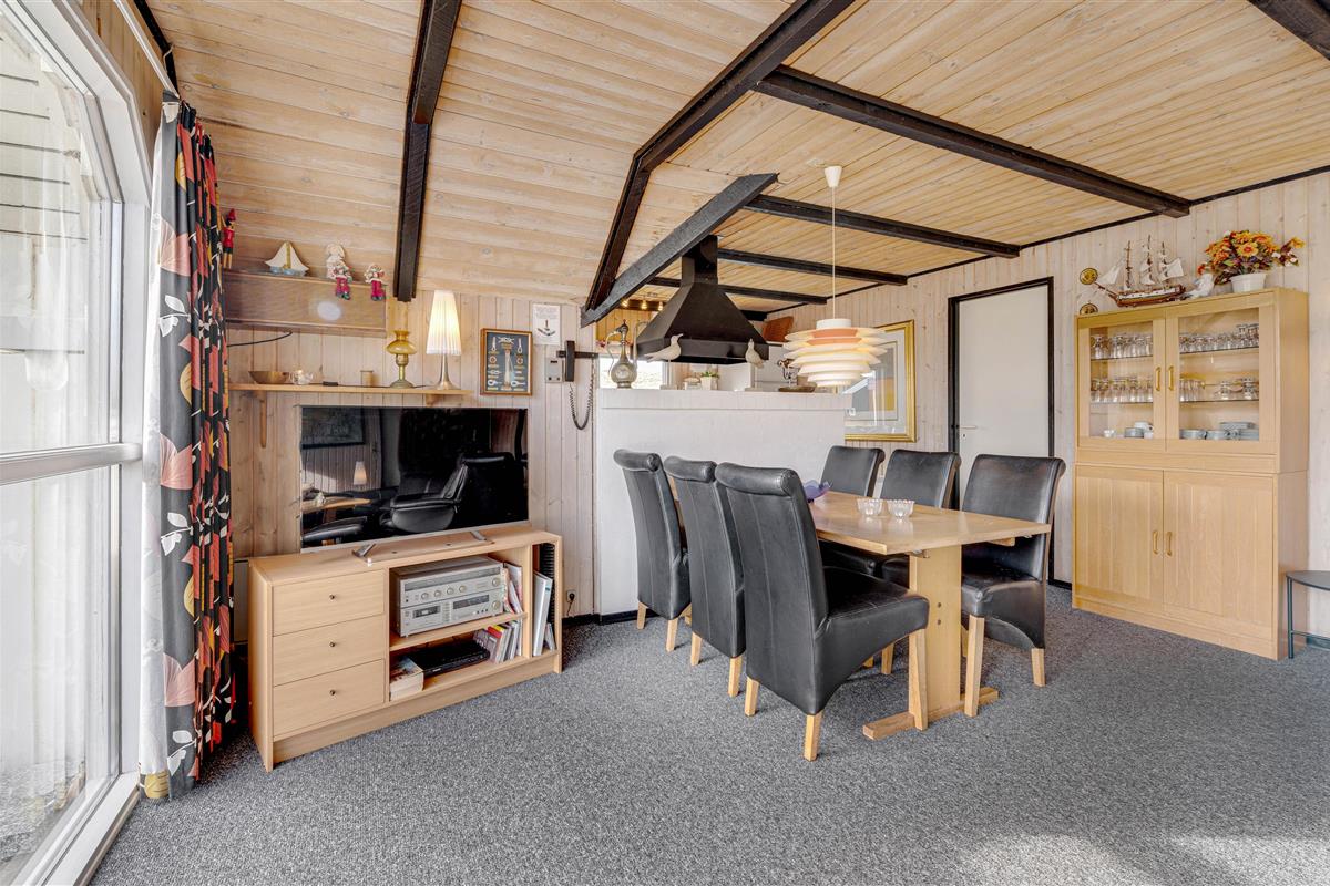 The comfortable and spacious living room forms the heart of the holiday home and features carpeting and a high ceiling with exposed beams, creating a pleasant atmosphere. Here you can curl up on the sofa to watch DVDs together or read your favourite book. Thanks to the energy-efficient heat pump, you can quickly bring the house to your preferred temperature. The kitchen opens onto the living room and is equipped with amenities including a dishwasher, microwave and freezer.