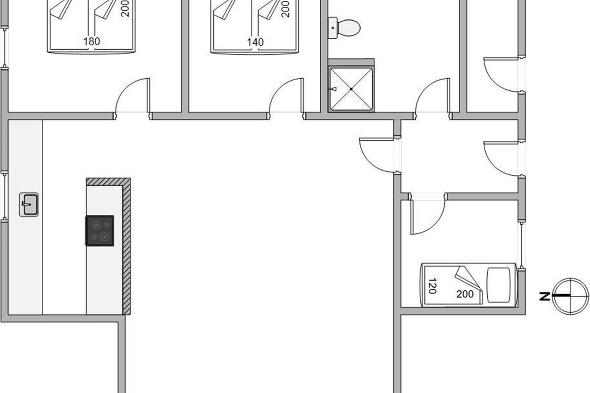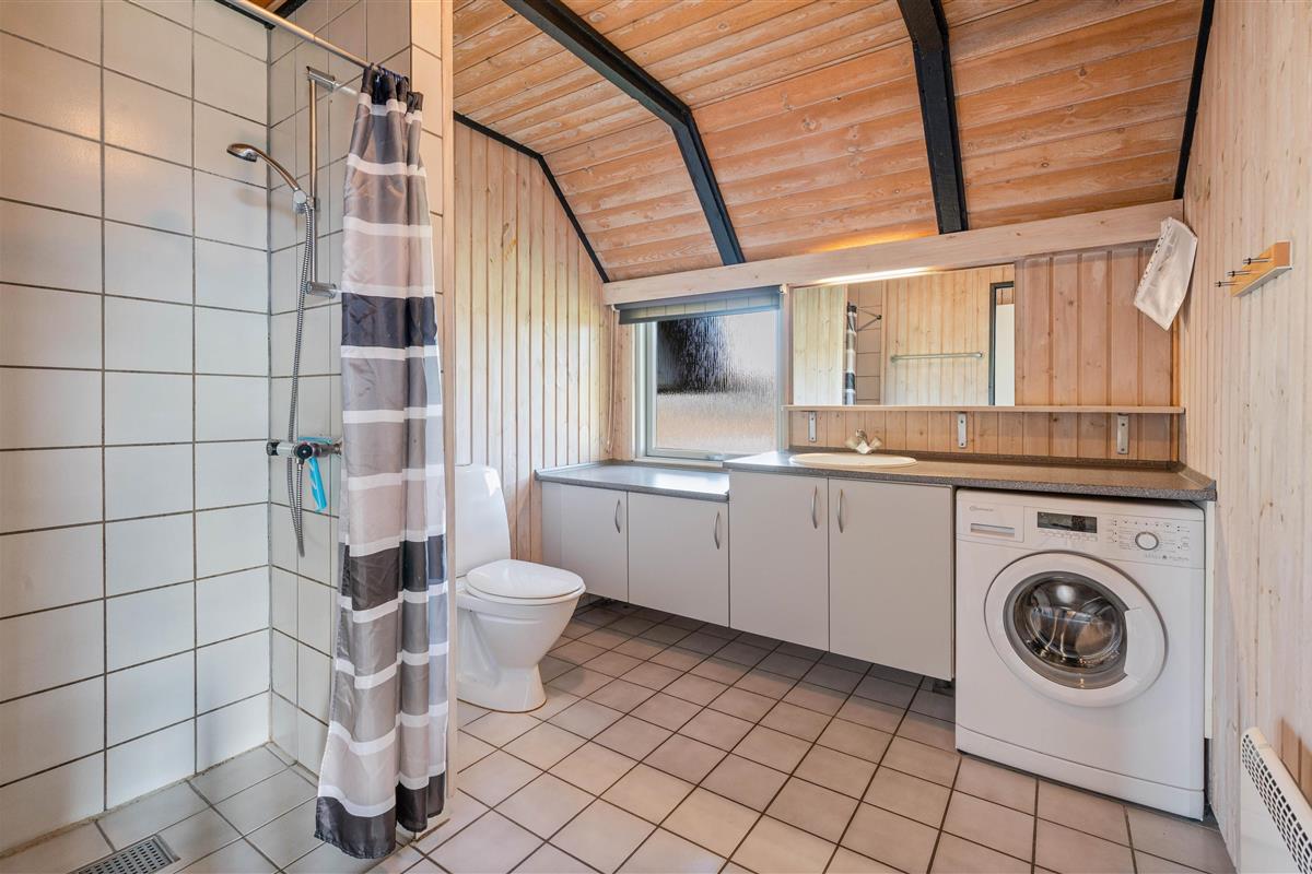 This holiday home near the beach is practically furnished with three cosy bedrooms, all fitted with carpeting. Two rooms feature double beds, whilst the third has a single bed. The well-maintained bathroom comes equipped with underfloor heating, a washing machine and a shower enclosure.