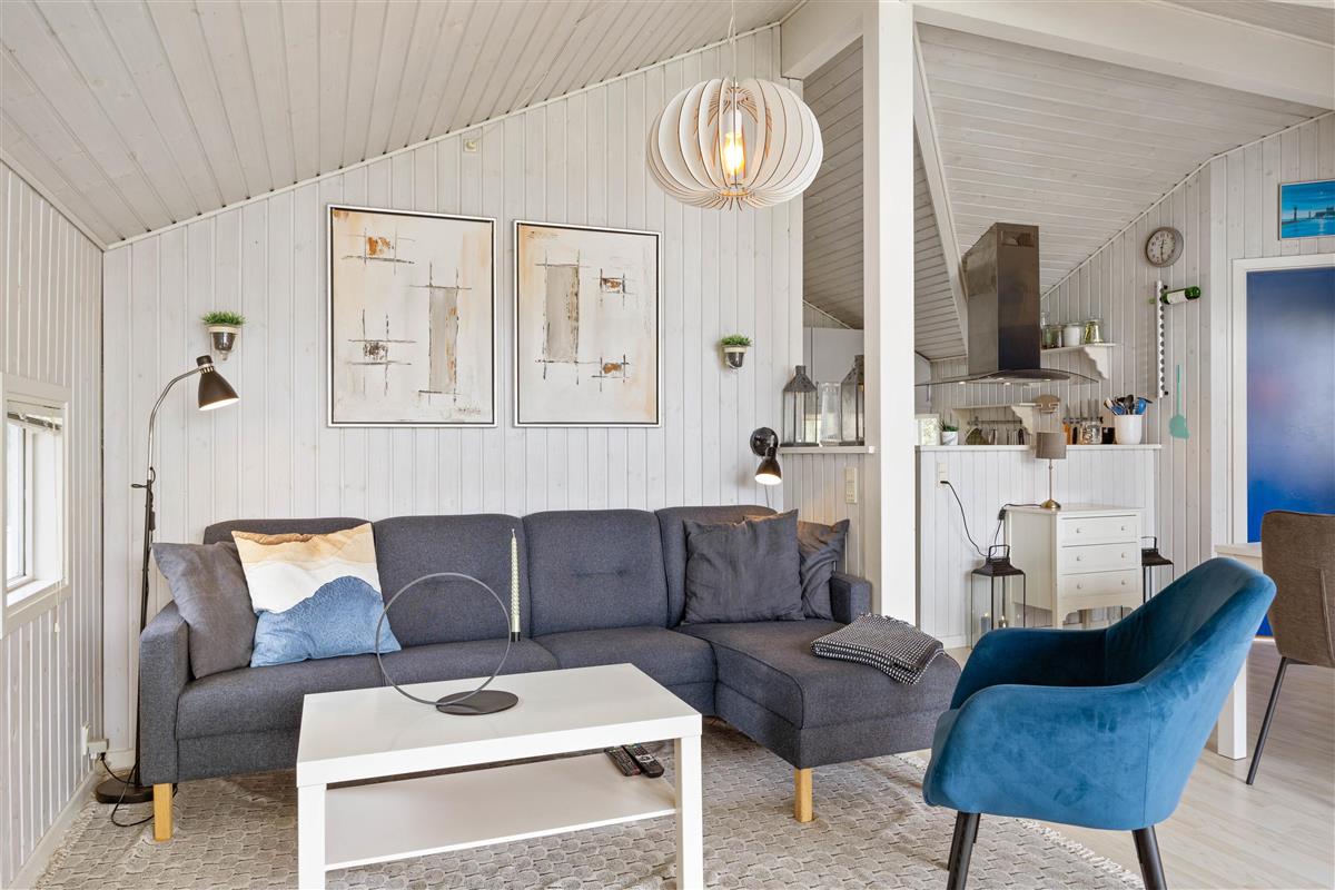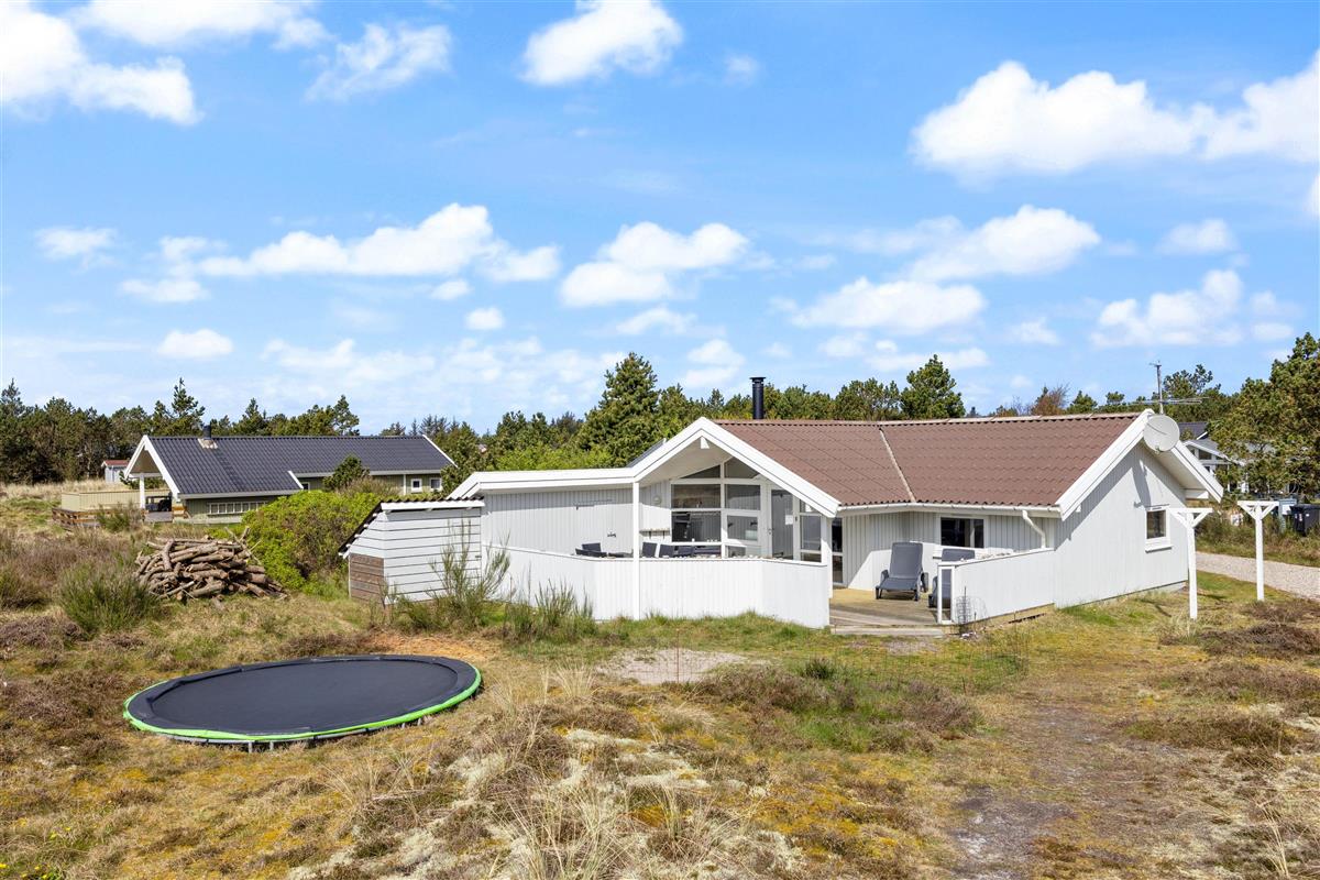 This gleaming white, L-shaped traditional Danish holiday home with trampoline welcomes guests in Bjerregard Nord. Up to 6 people and their dog can enjoy a thoroughly comfortable stay in approximately 80 square metres of living space.