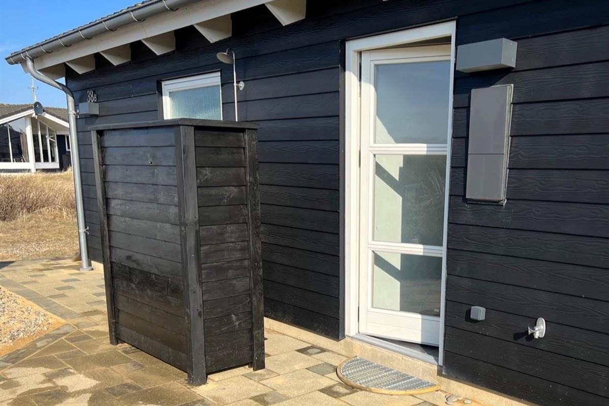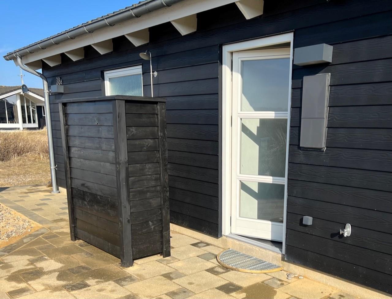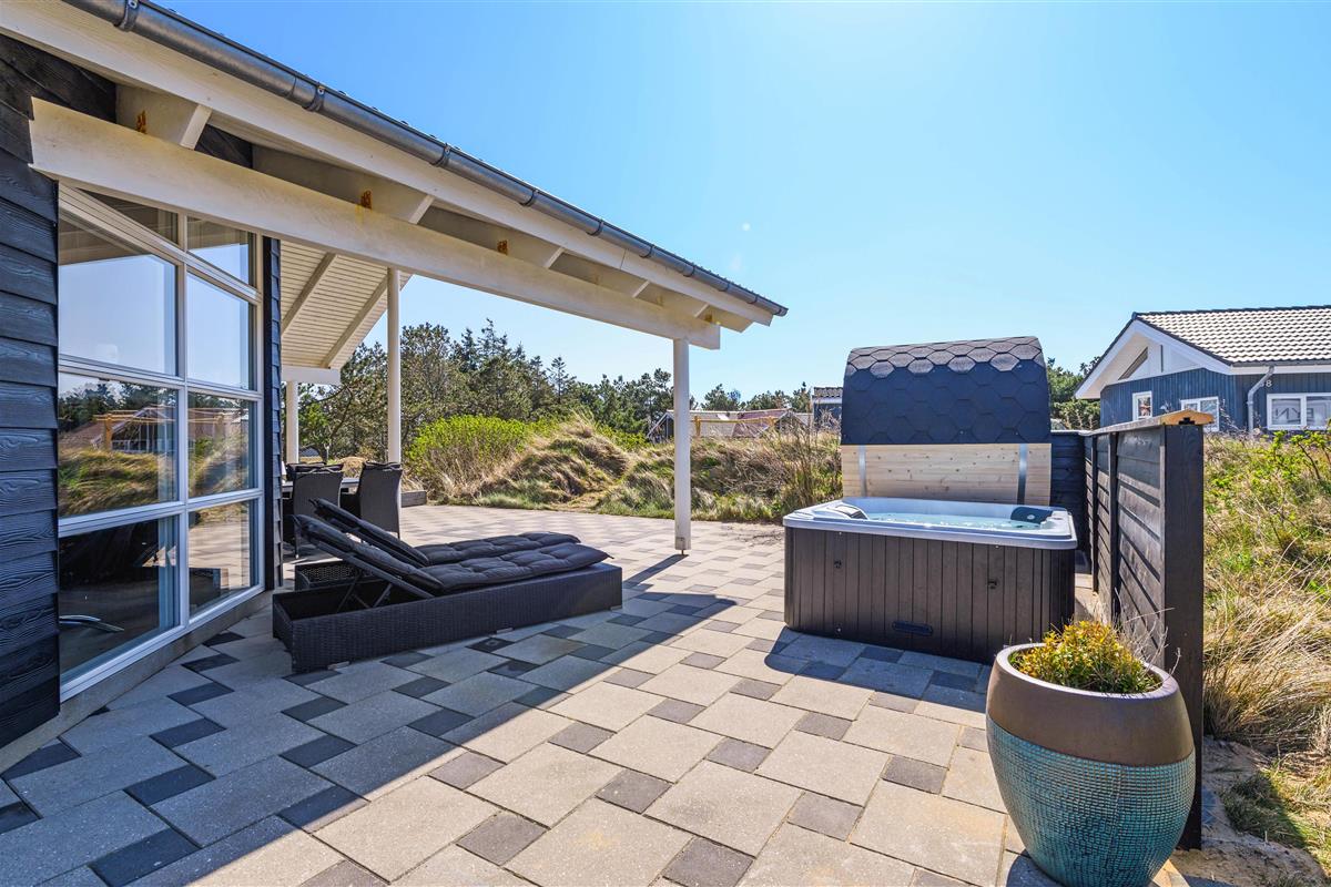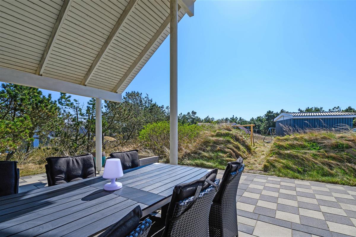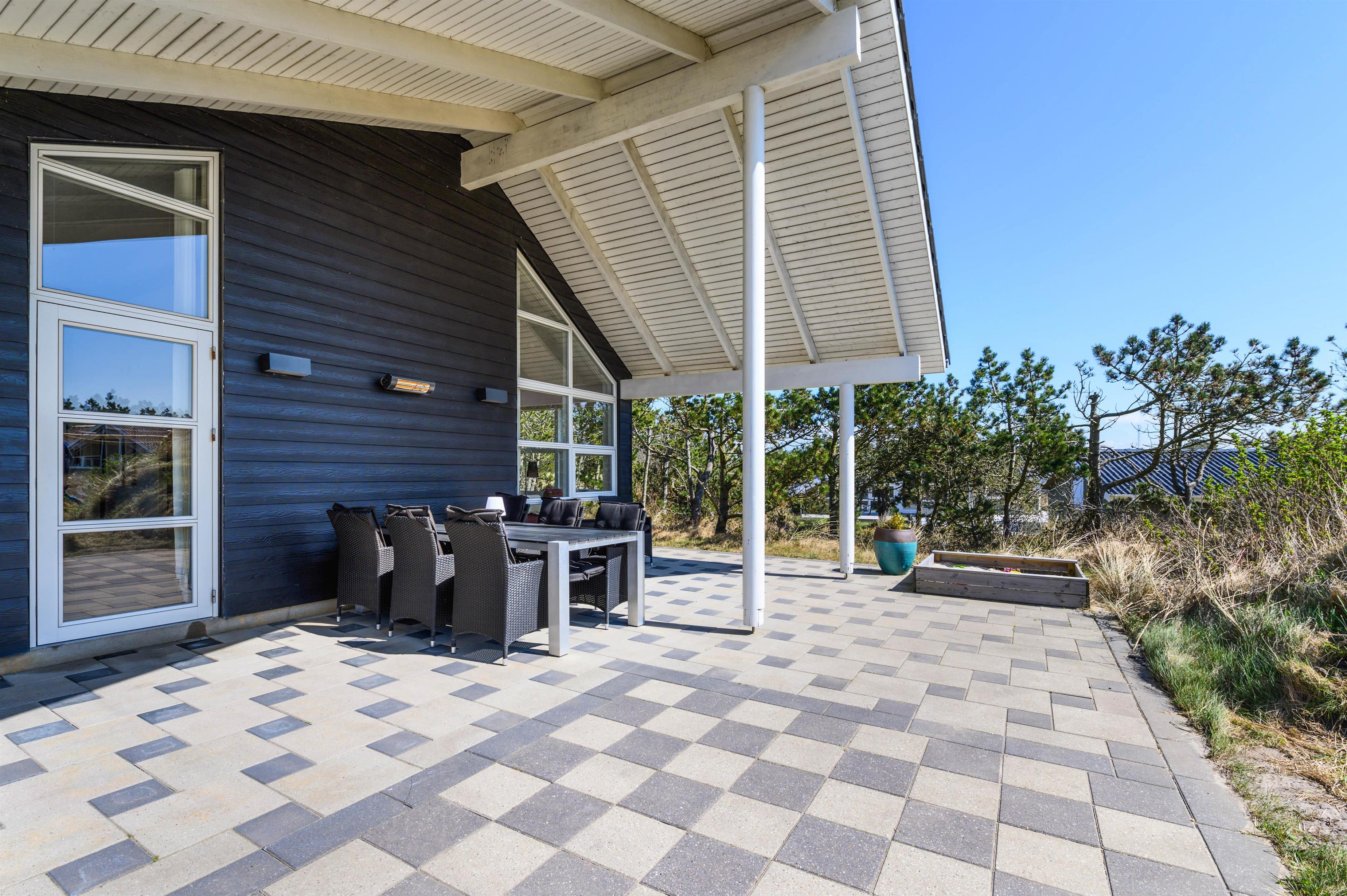 The terrace spans 160 square metres around the entire holiday home, allowing you to enjoy outdoor living throughout the day. You'll always find a sheltered spot. On warm summer days, cool off under the outdoor shower (available April to November).