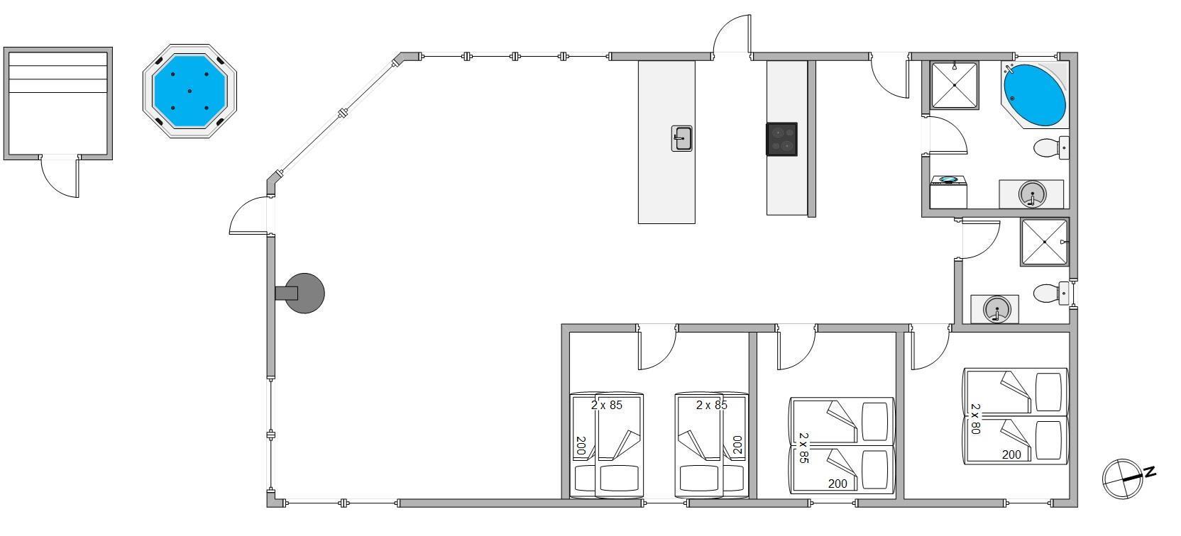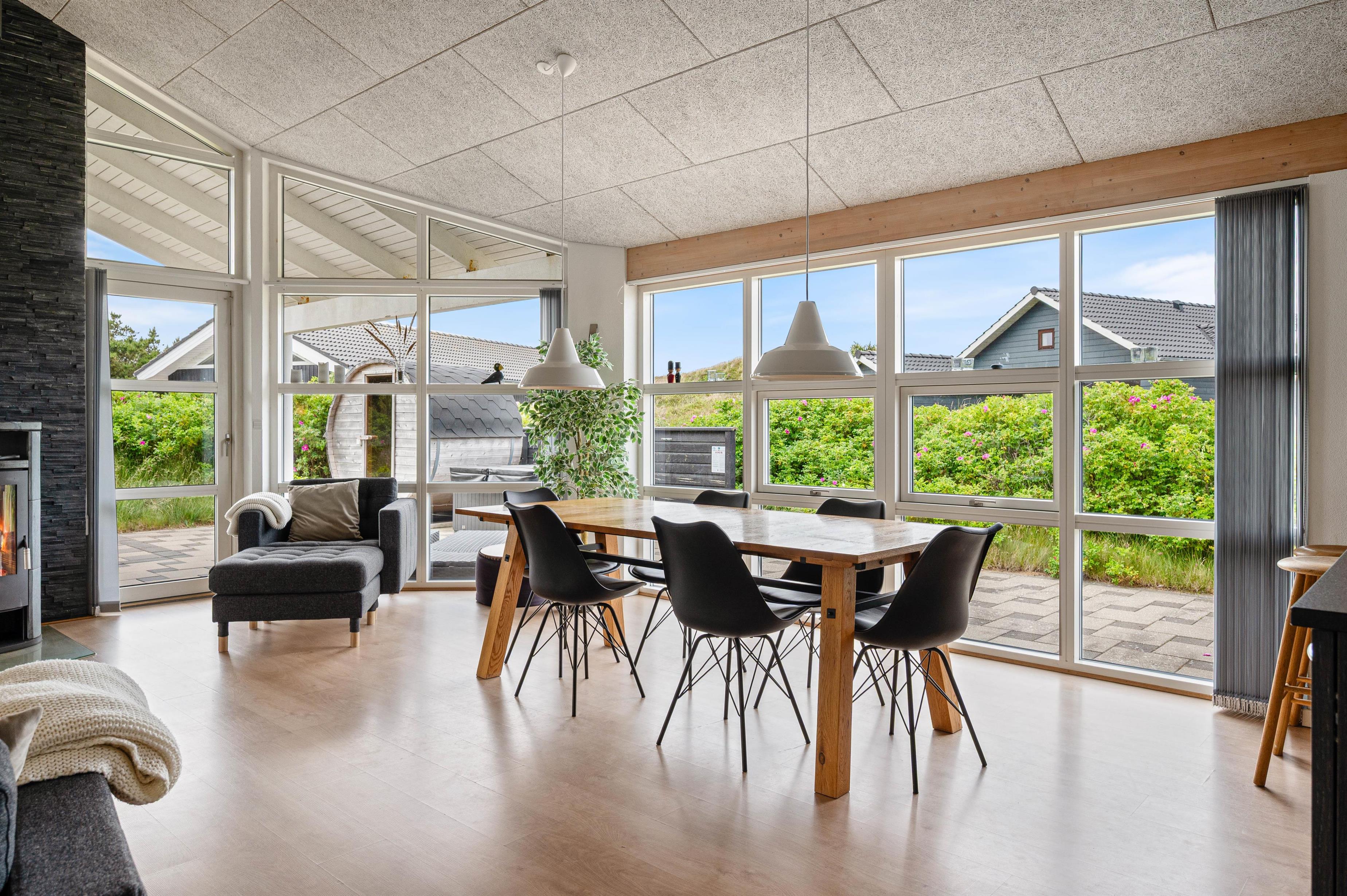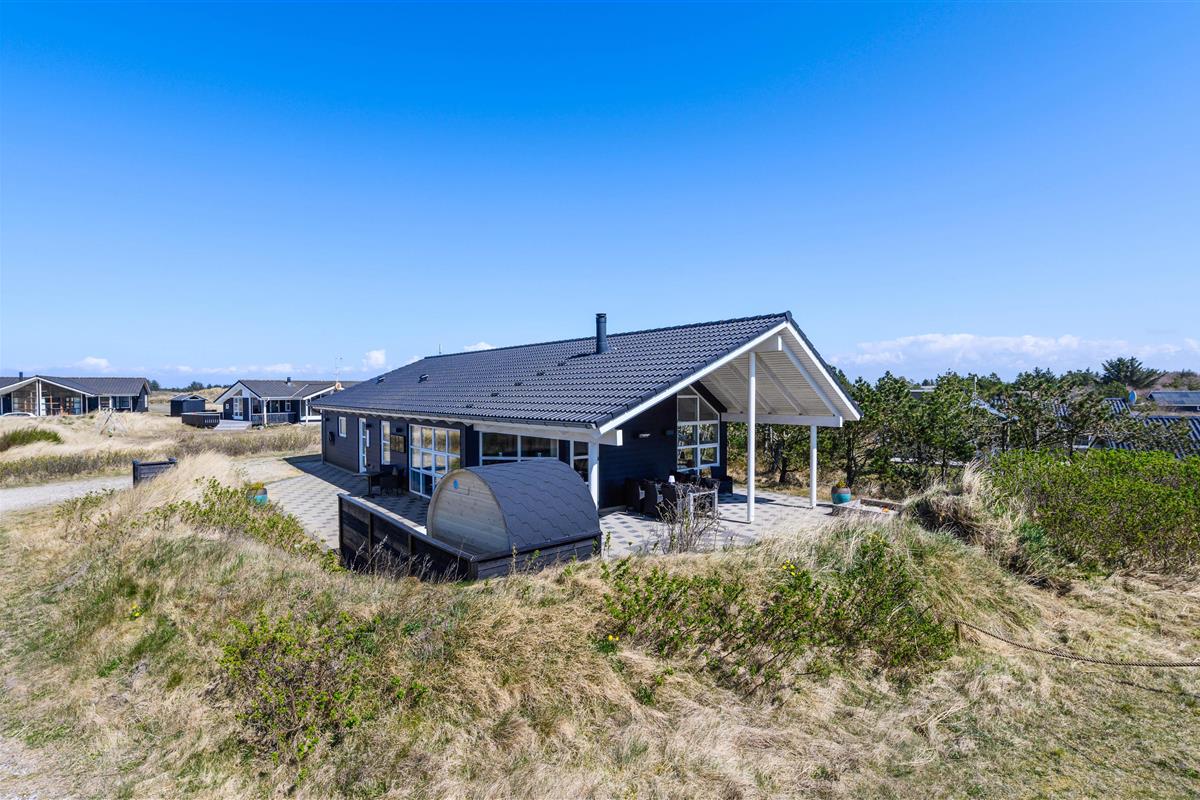 Located at Bjerregårdsvej 38 B, this modern holiday home accommodates up to 8 people. The holiday home features both an indoor whirlpool and outdoor hot tub, an outdoor sauna, two bathrooms and a beautiful, spacious terrace that's partially covered - perfect for relaxing BBQ evenings while enjoying wine from the dedicated wine fridge. The holiday home in Bjerregård comes with an electric car charging point.