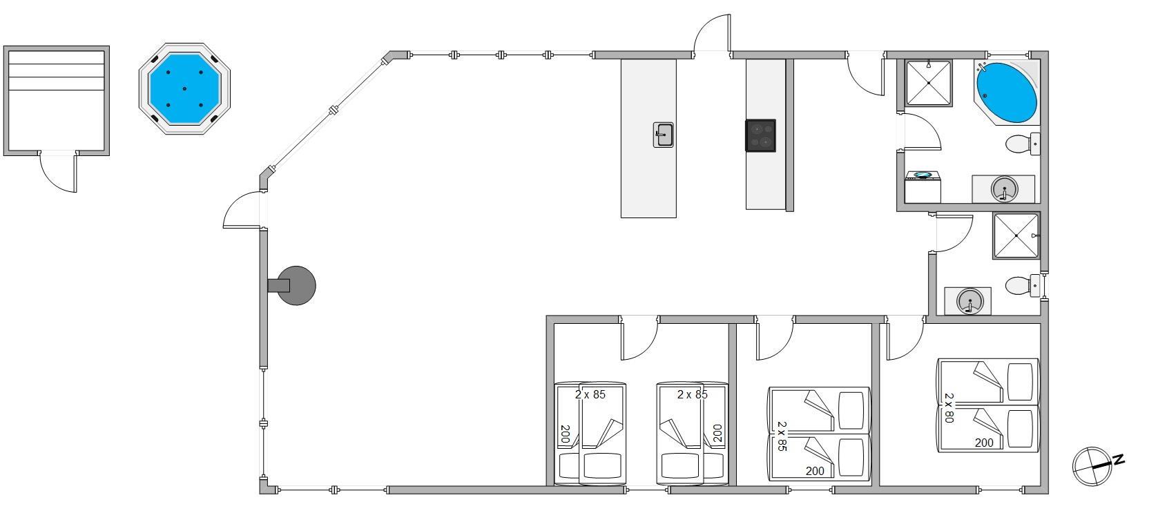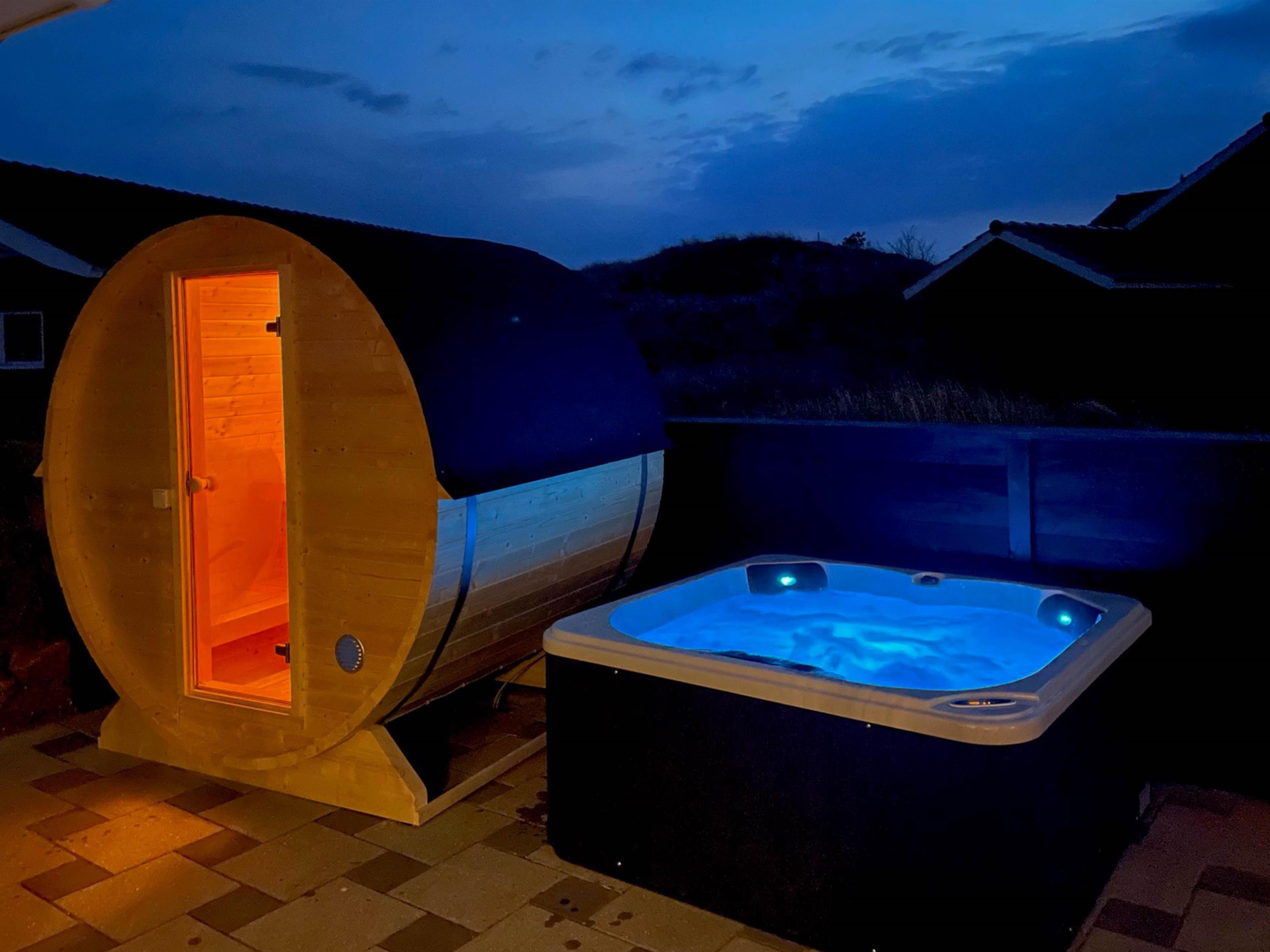 This modern holiday home features two bathrooms, one with a whirlpool that's sure to delight children. After a long walk on a blustery autumn day, you can warm up and unwind in the outdoor sauna. End your evening perfectly in the outdoor hot tub, relaxing under the starlit sky and letting your cares drift away.