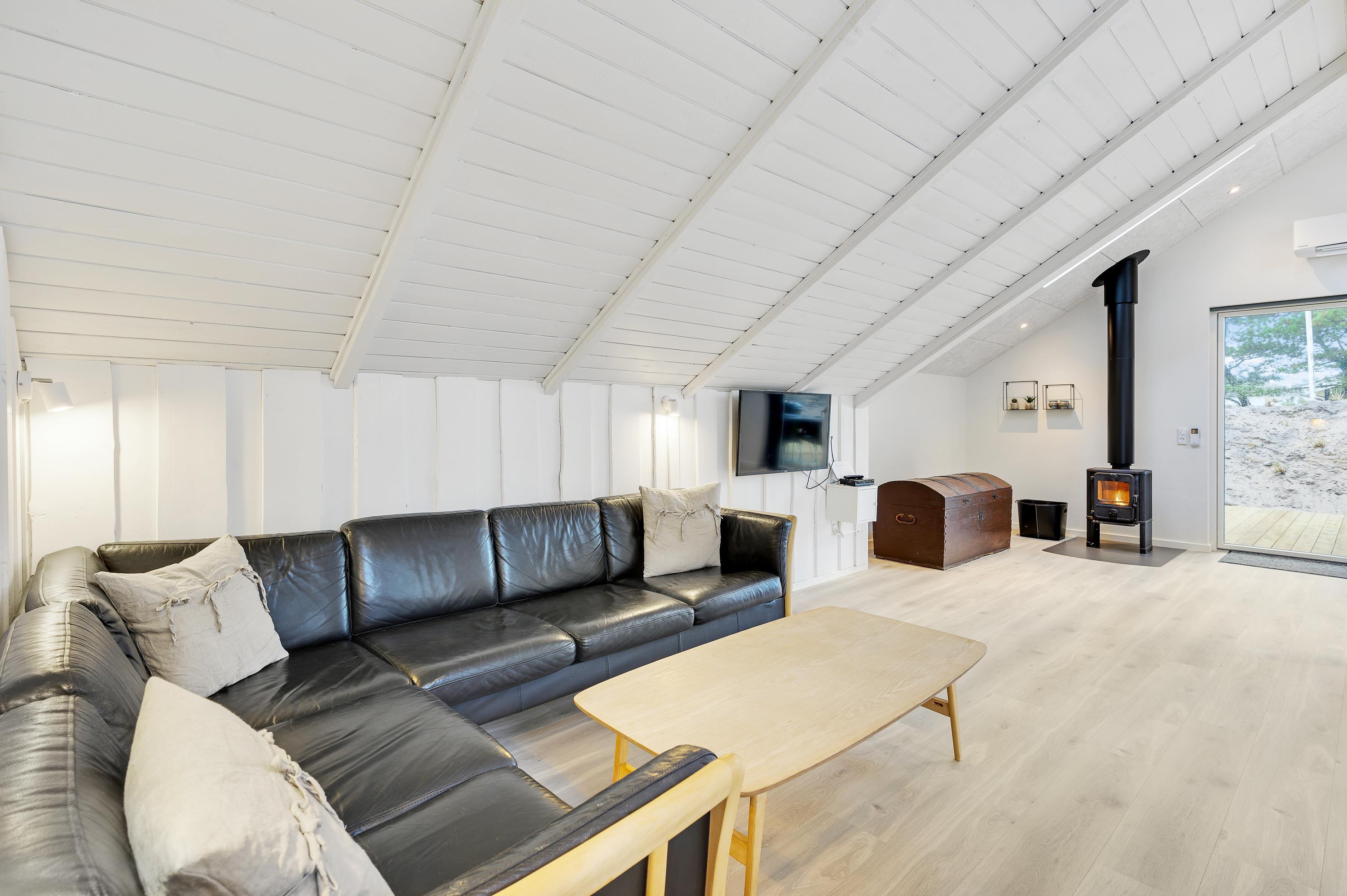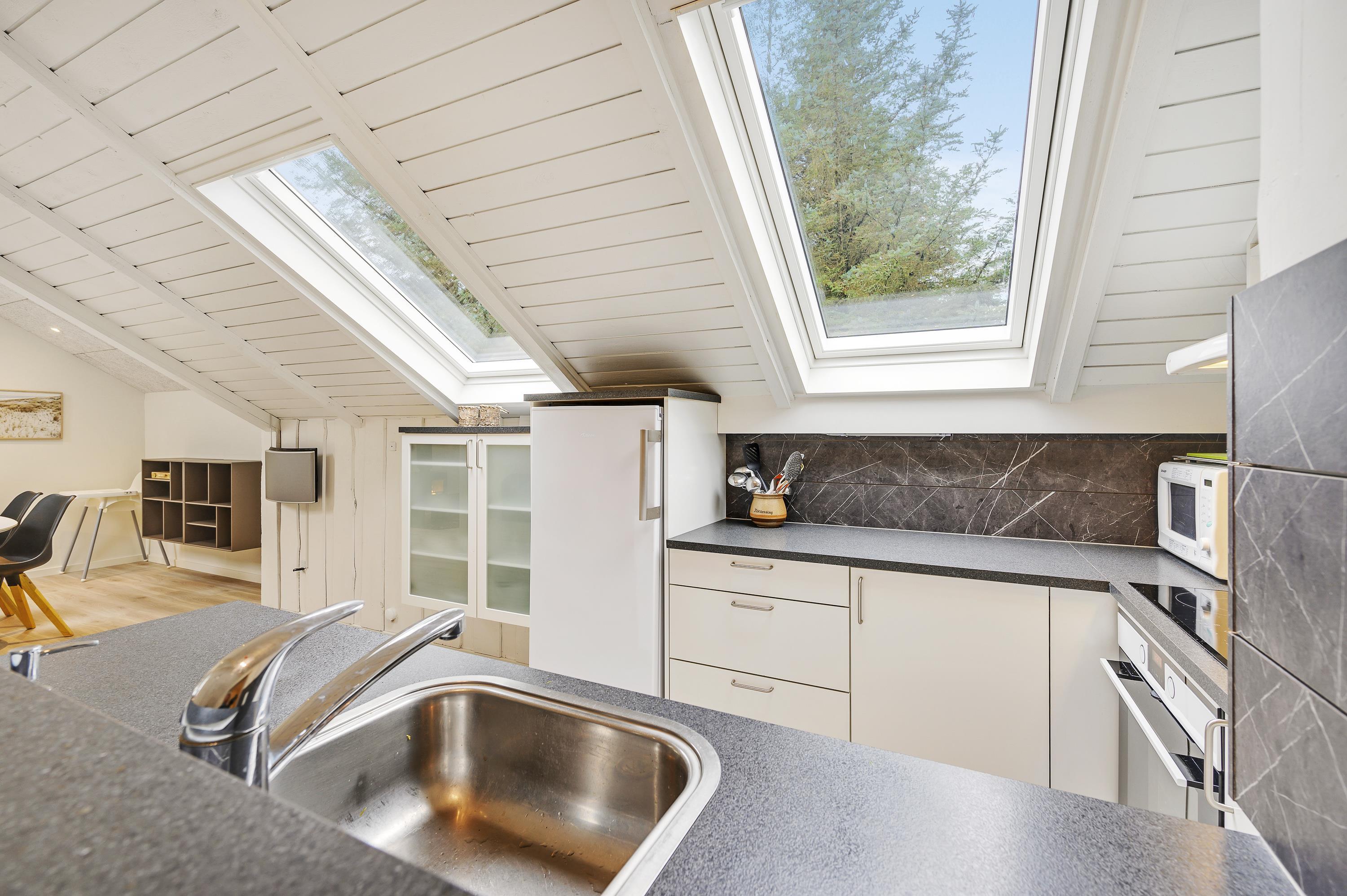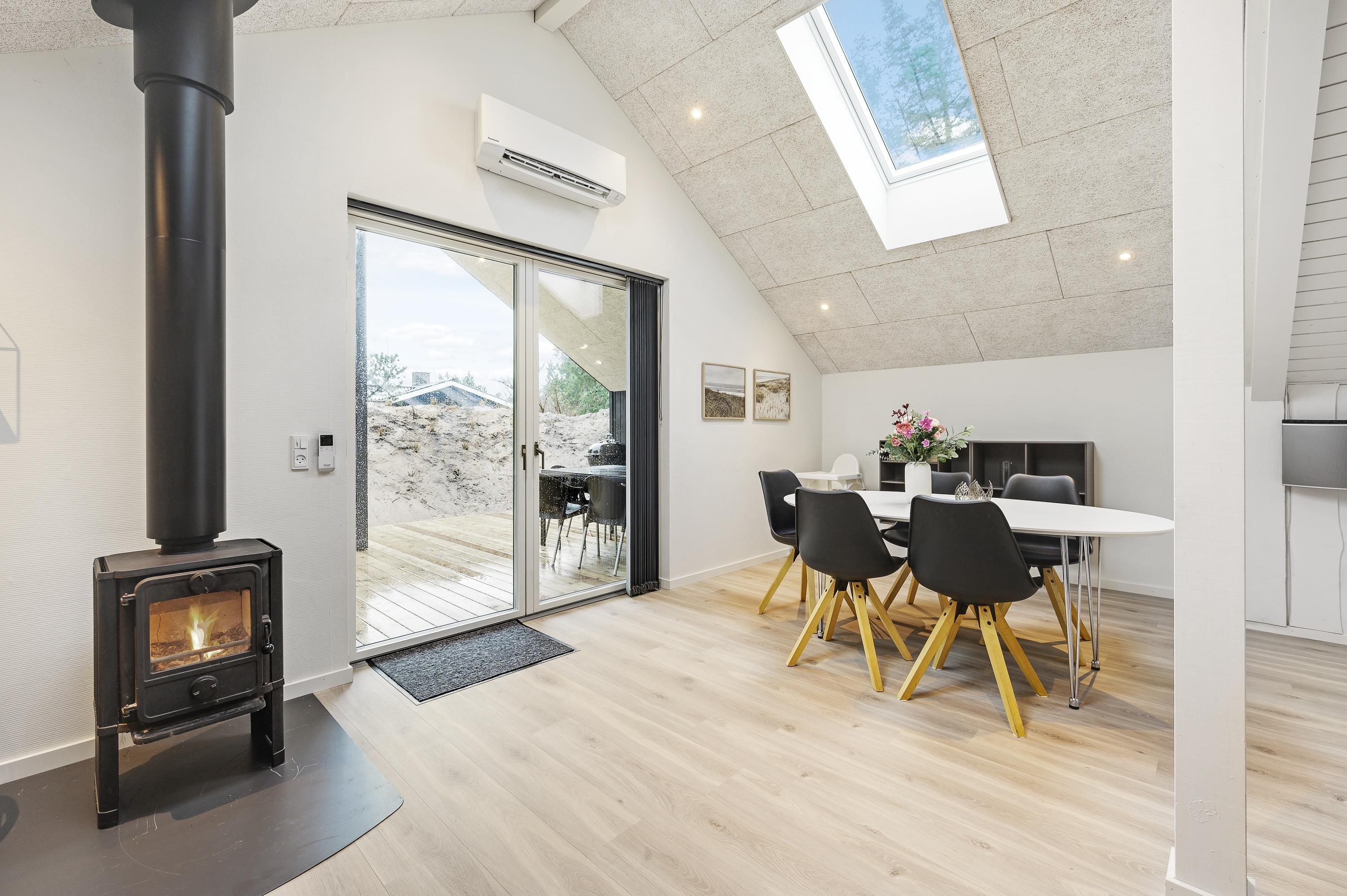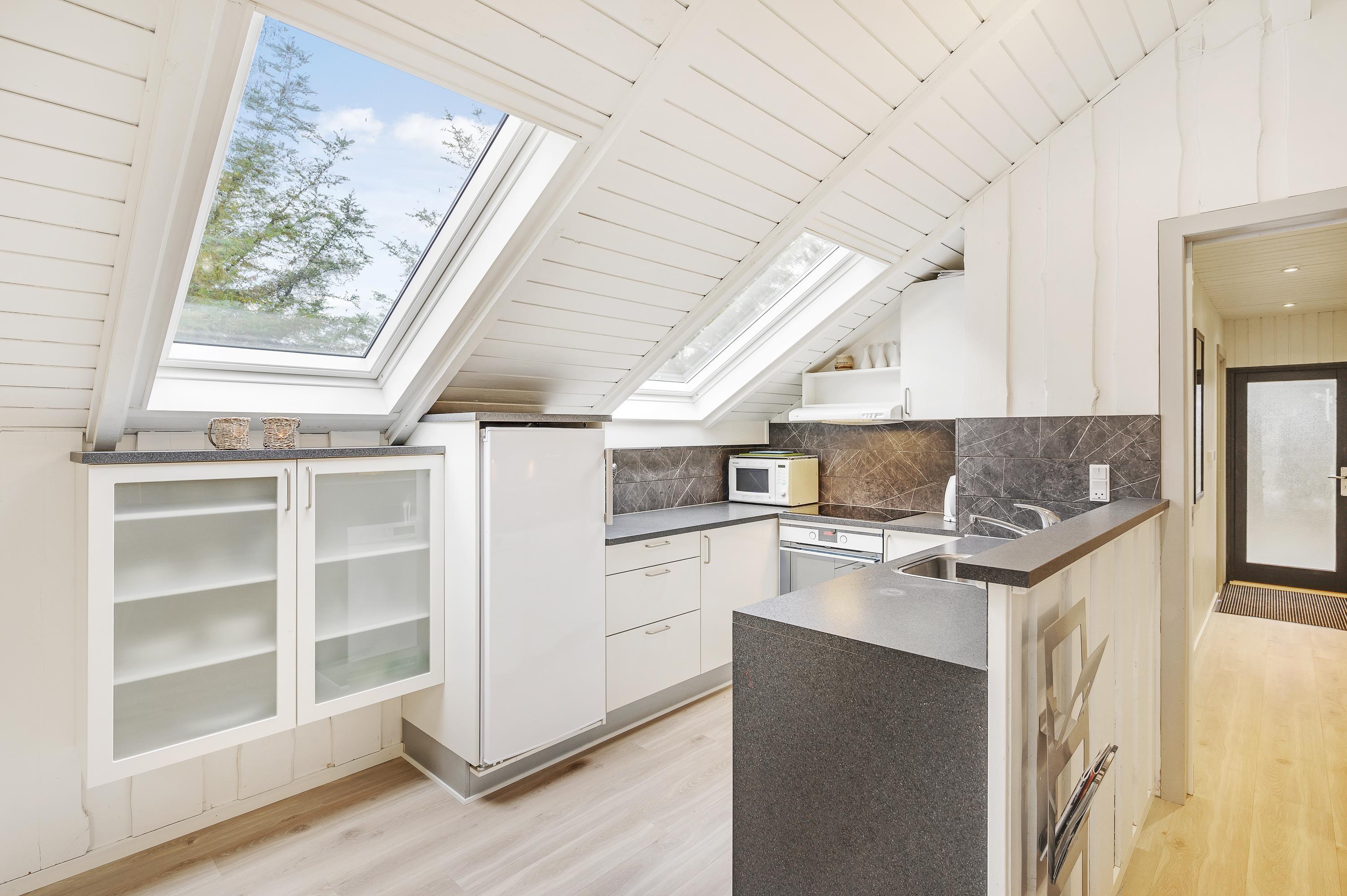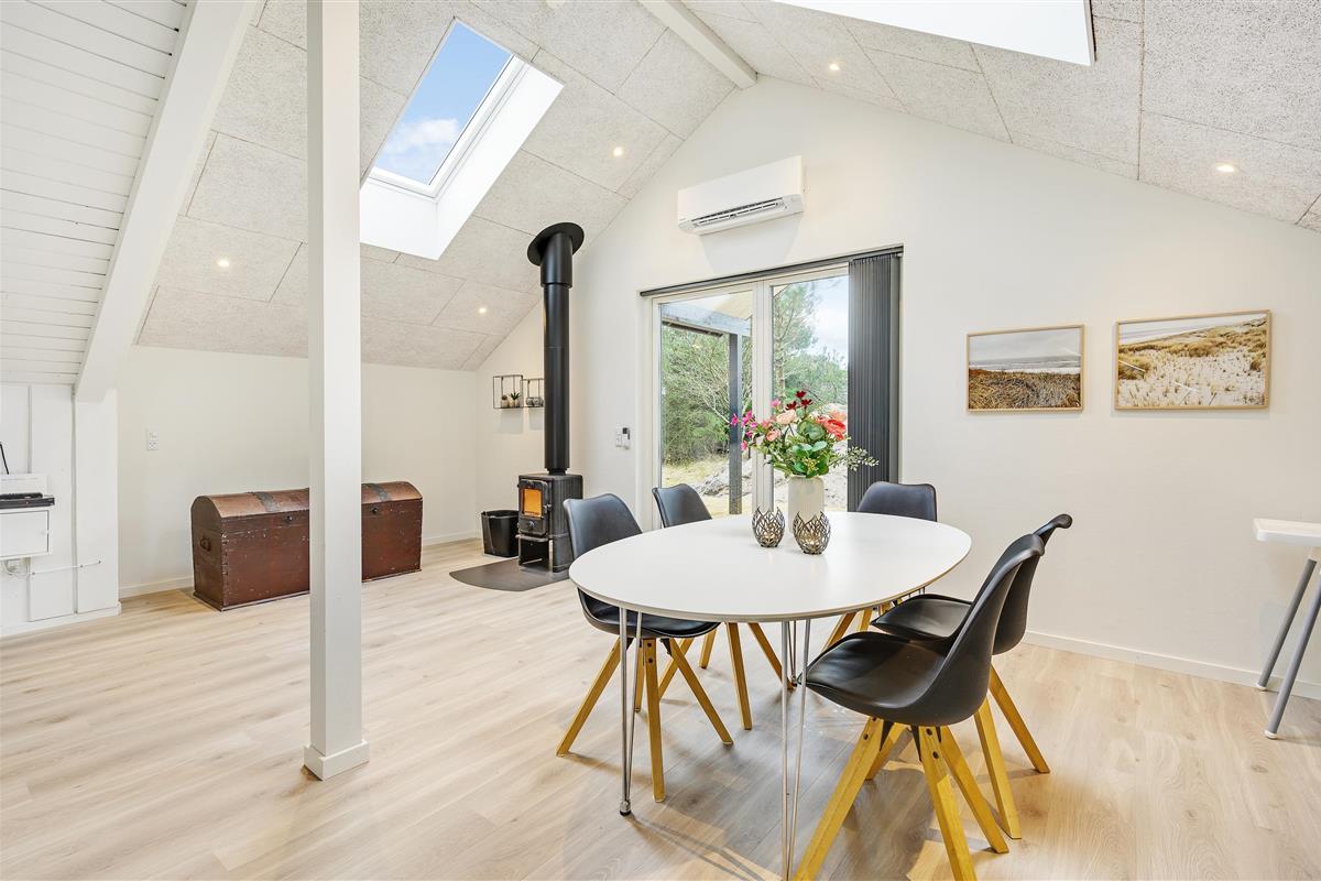 Up to 5 people can enjoy a wonderful holiday in this beautiful holiday home on Kirksvej. Renovated in 2021, this holiday home in the heart of Bjerregård features light flooring throughout, combined with bright ceilings and walls to create a calm, relaxing atmosphere. The high ceilings are enhanced by skylights that flood the rooms with natural light, creating a truly cosy ambiance. Even on rainy days, the patter of raindrops adds to the sense of tranquility.