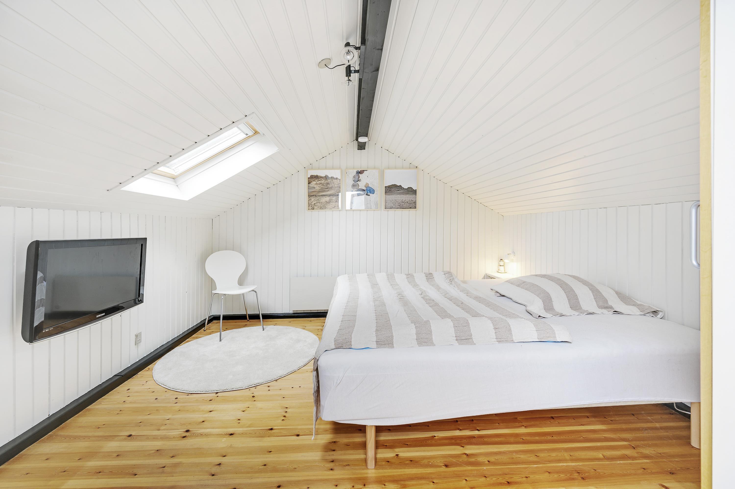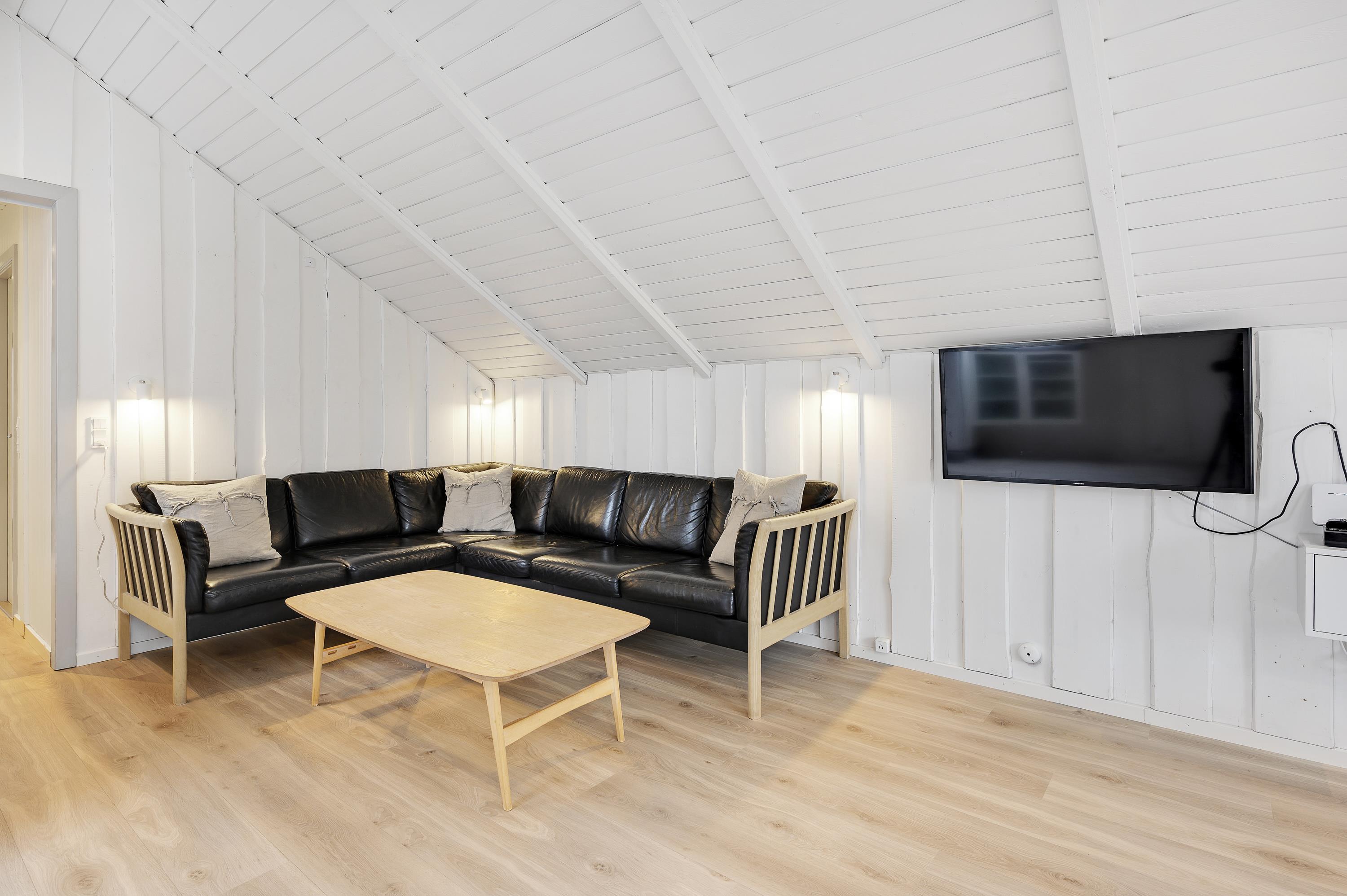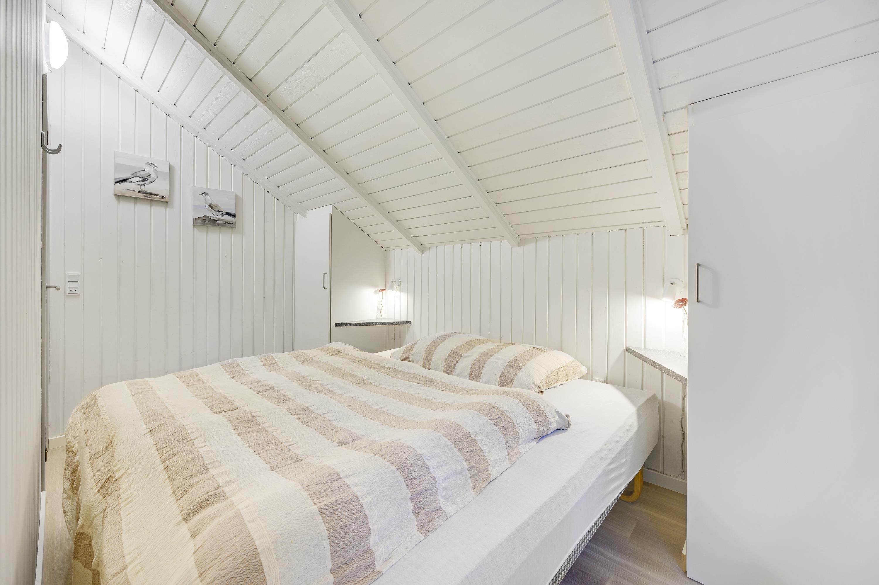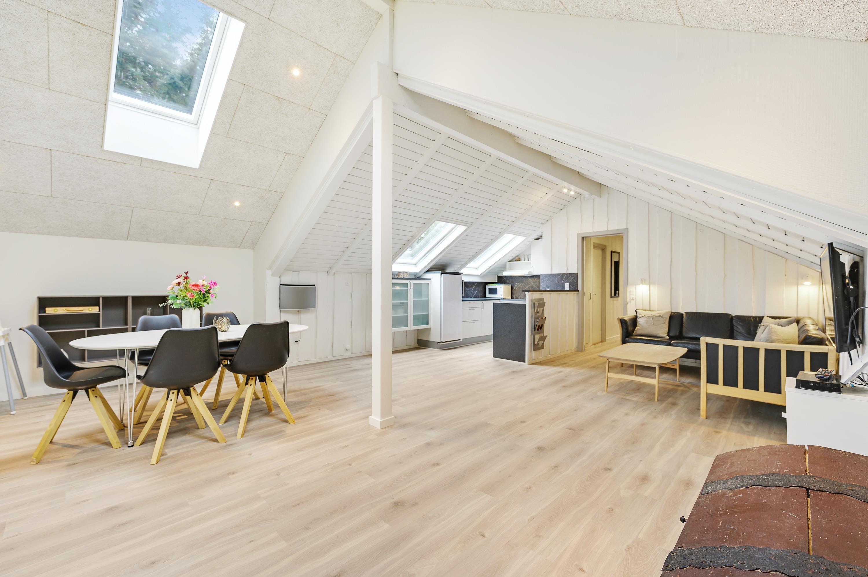 Up to 5 people can enjoy a wonderful holiday in this beautiful holiday home on Kirksvej. Renovated in 2021, this holiday home in the heart of Bjerregård features light flooring throughout, combined with bright ceilings and walls to create a calm, relaxing atmosphere. The high ceilings are enhanced by skylights that flood the rooms with natural light, creating a truly cosy ambiance. Even on rainy days, the patter of raindrops adds to the sense of tranquility.