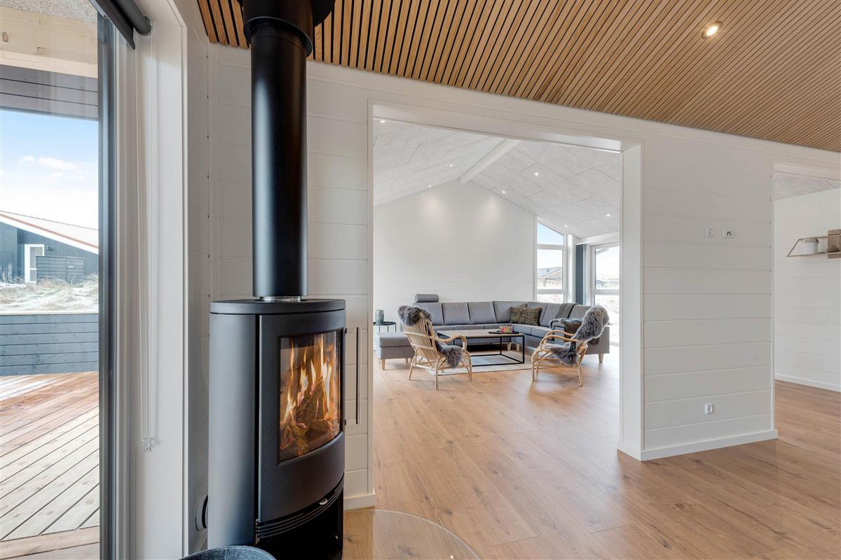For that cosy hygge feeling, especially on cooler evenings, enjoy a roaring fire in the wood-burning stove. Alternatively, you can use the heat pump, which ensures comfortable temperatures throughout.