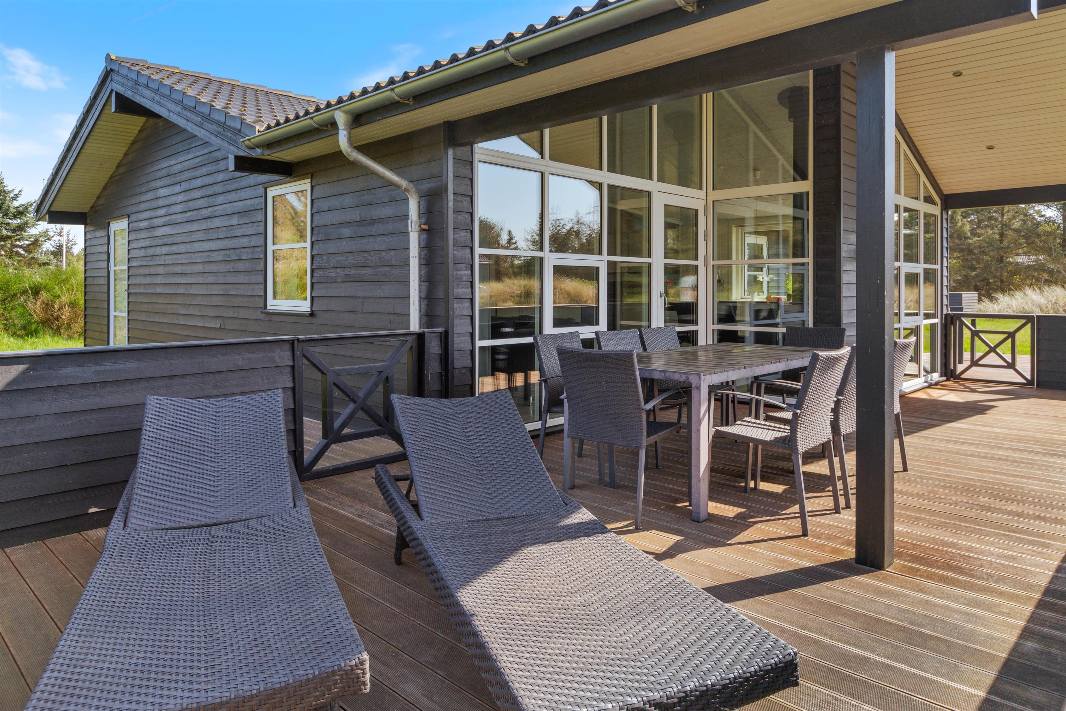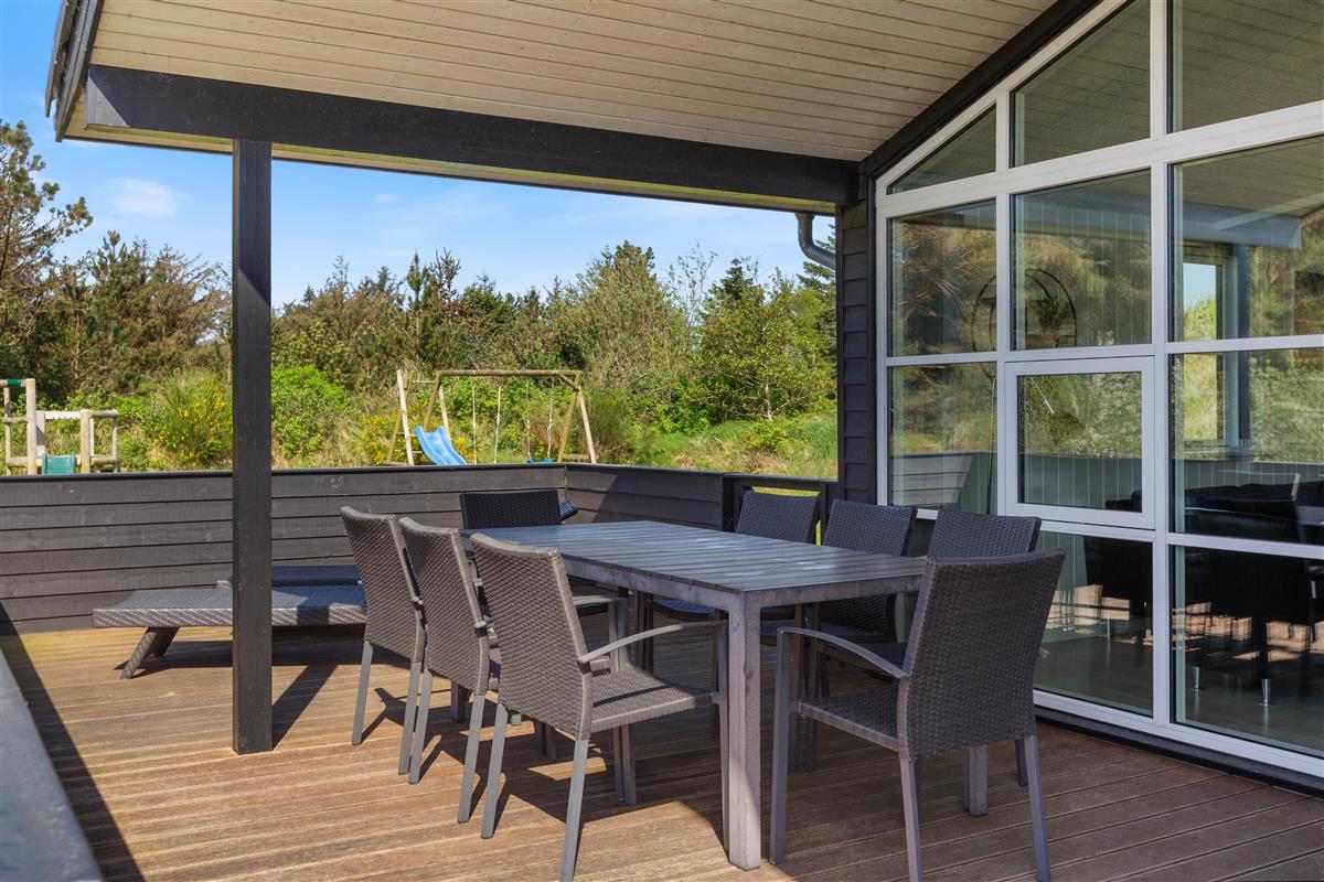 The terrace of your modern holiday home features open, enclosed and covered sections, ensuring you'll find a comfortable spot whatever the weather. Sunbathe on the loungers and retreat to the garden furniture when the sun gets too strong.