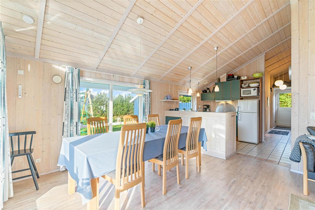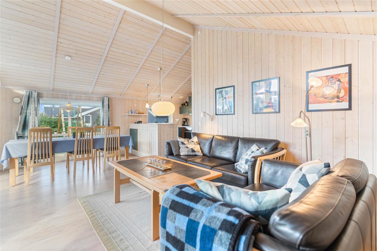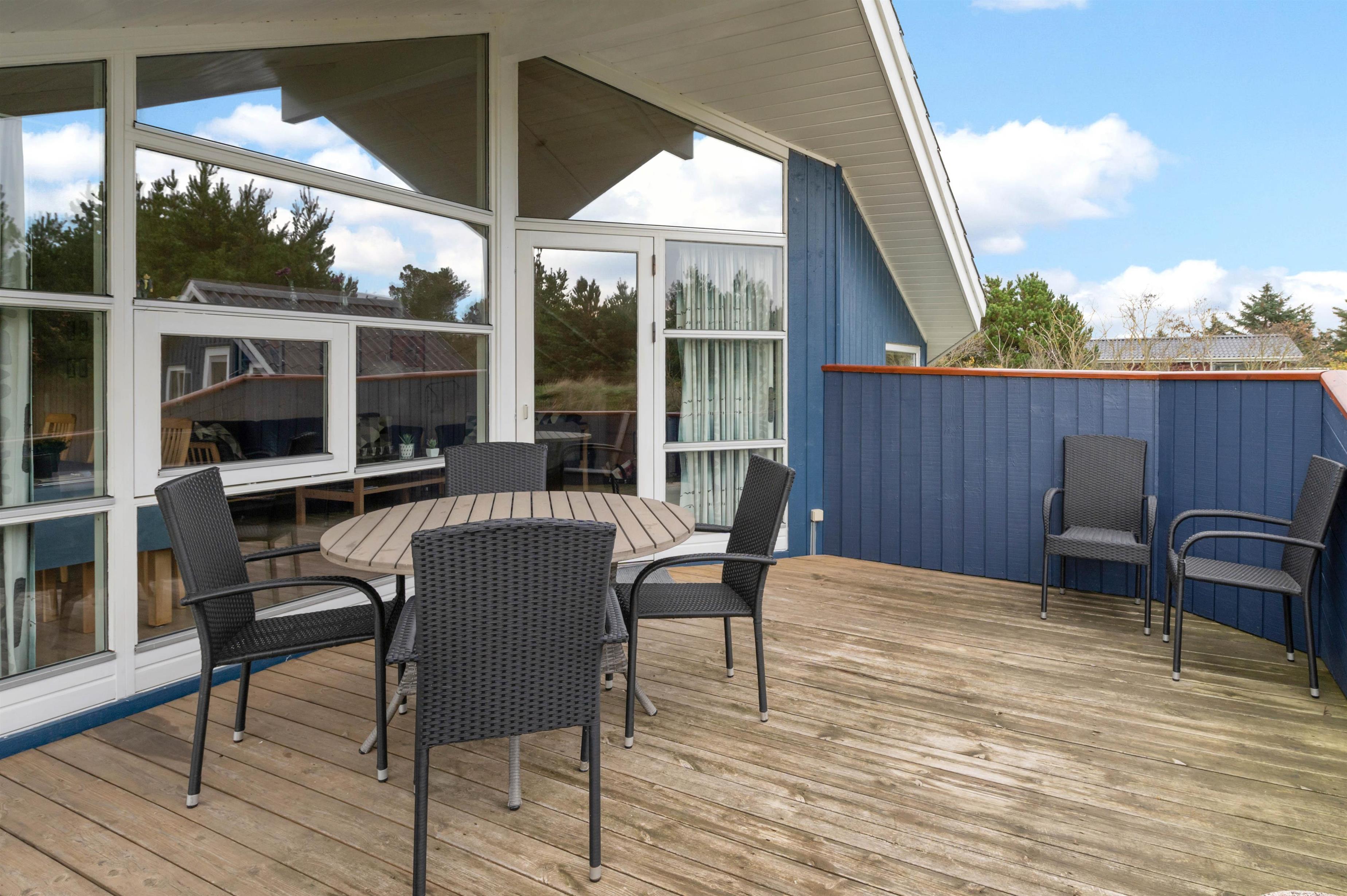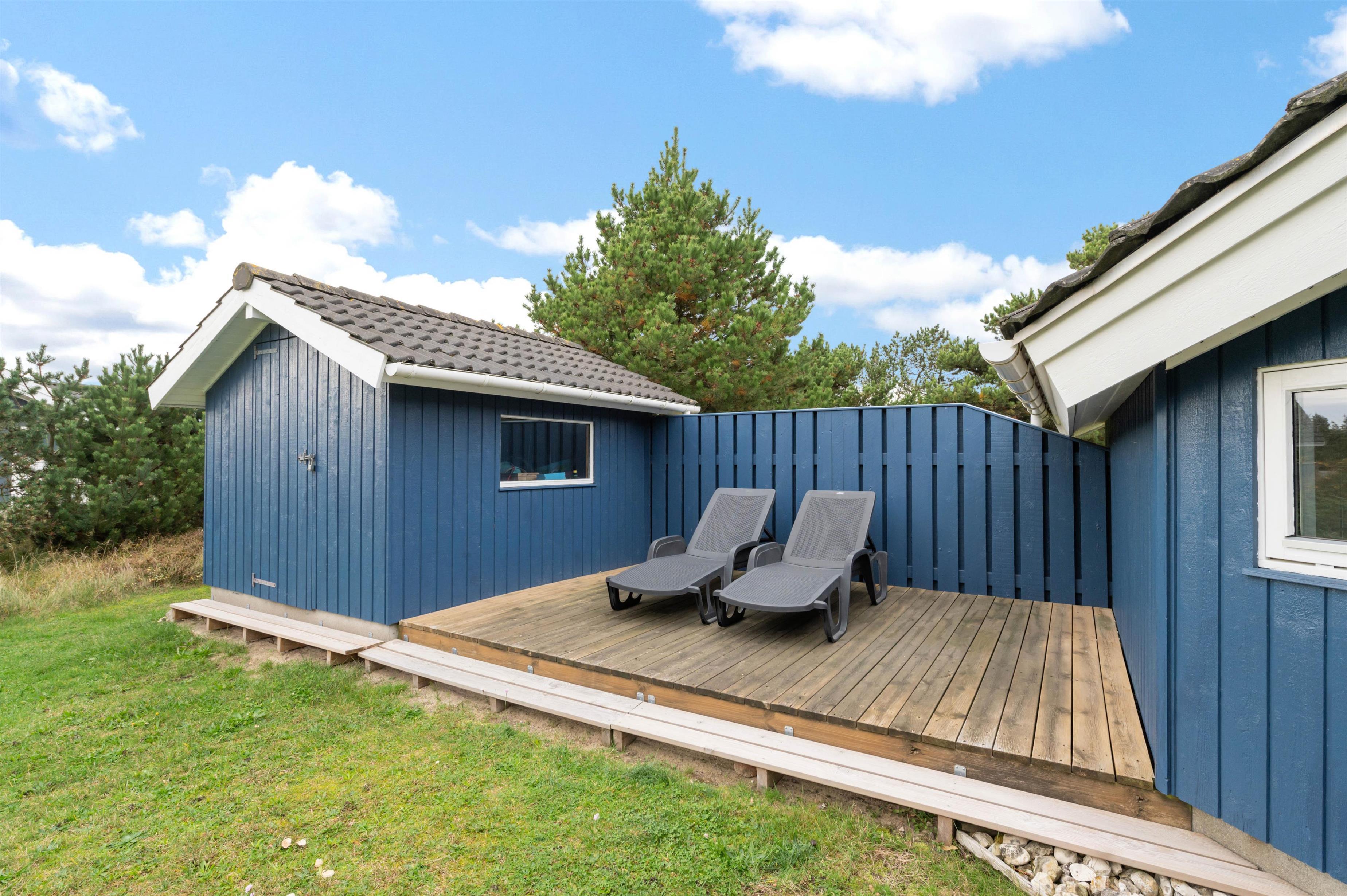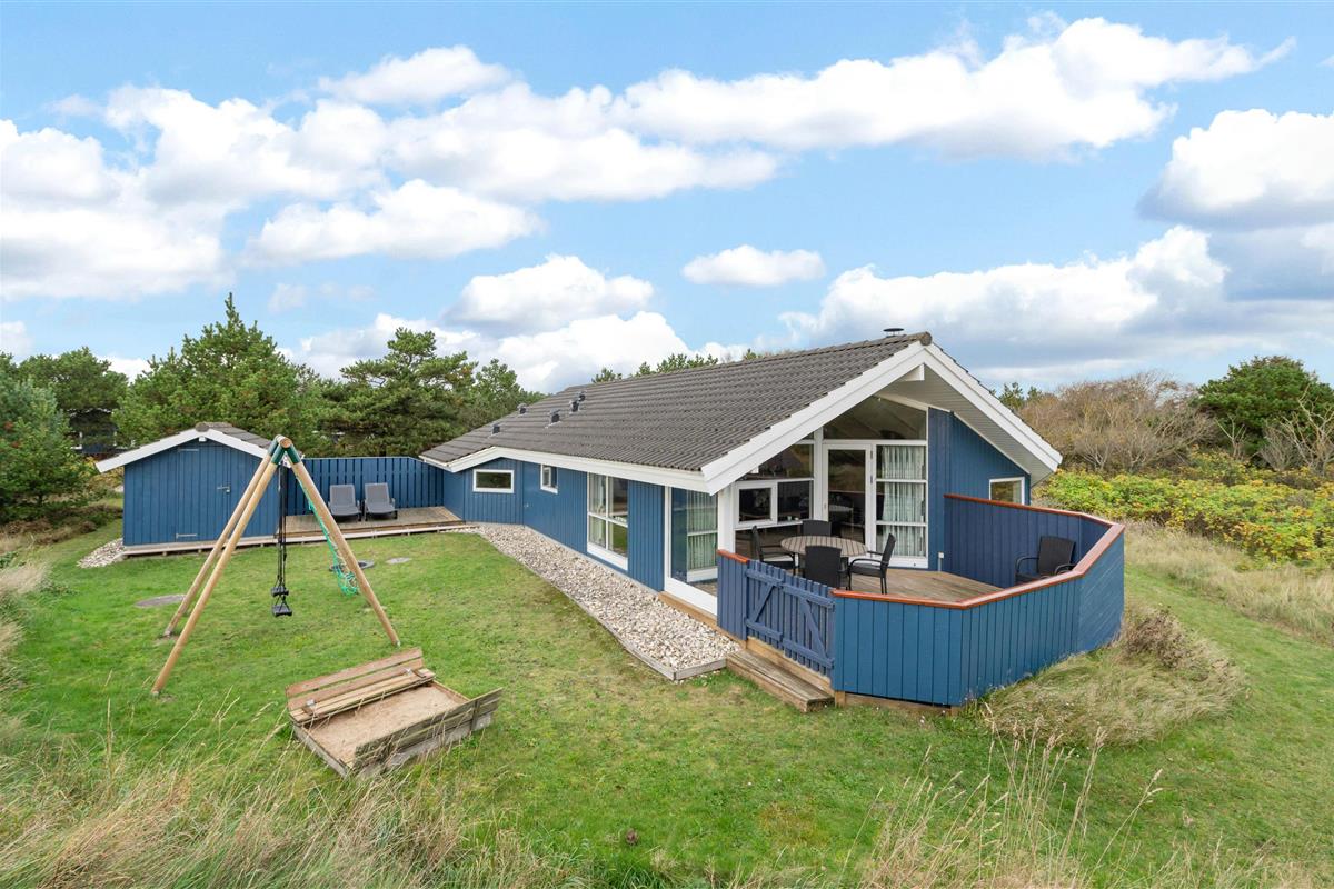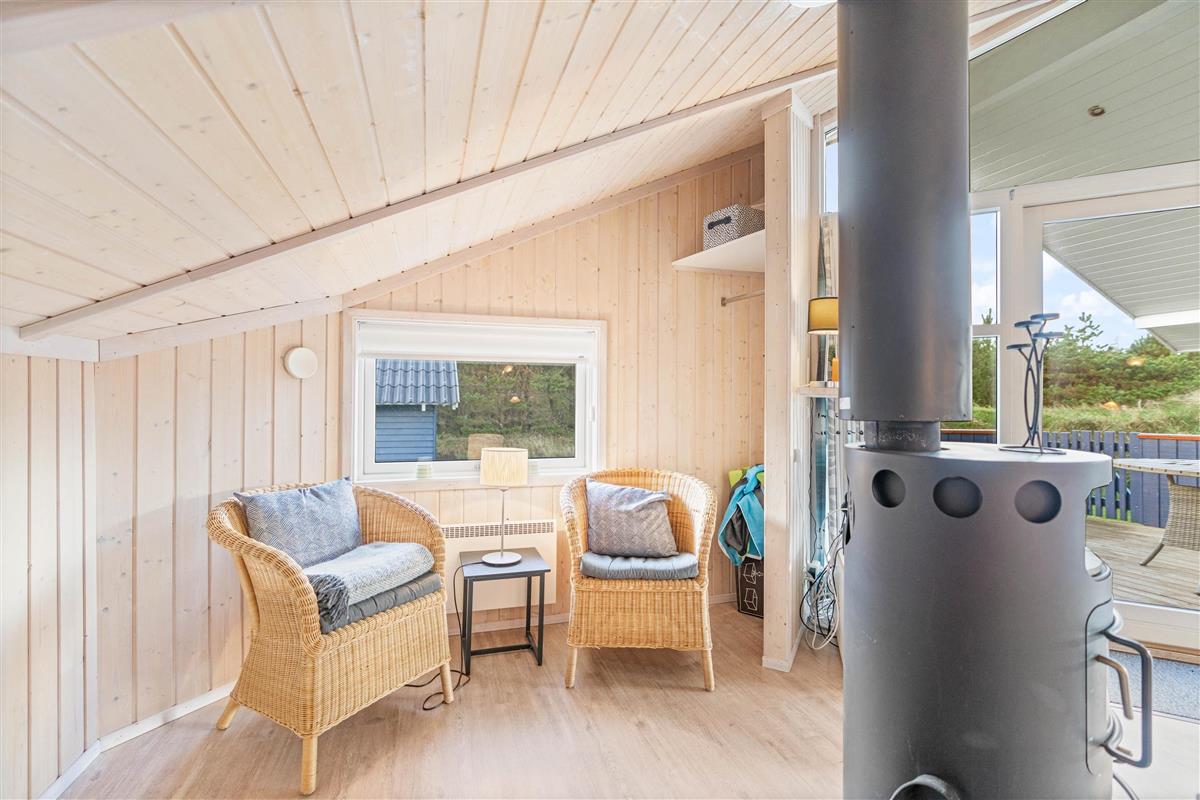 The holiday home at Rauhesvej 1 sits on a 1,213-square-metre natural plot, partially surrounded by bushes, trees and dune grass. The south-facing enclosed terrace is perfect for enjoying outdoor barbecues with your loved ones.