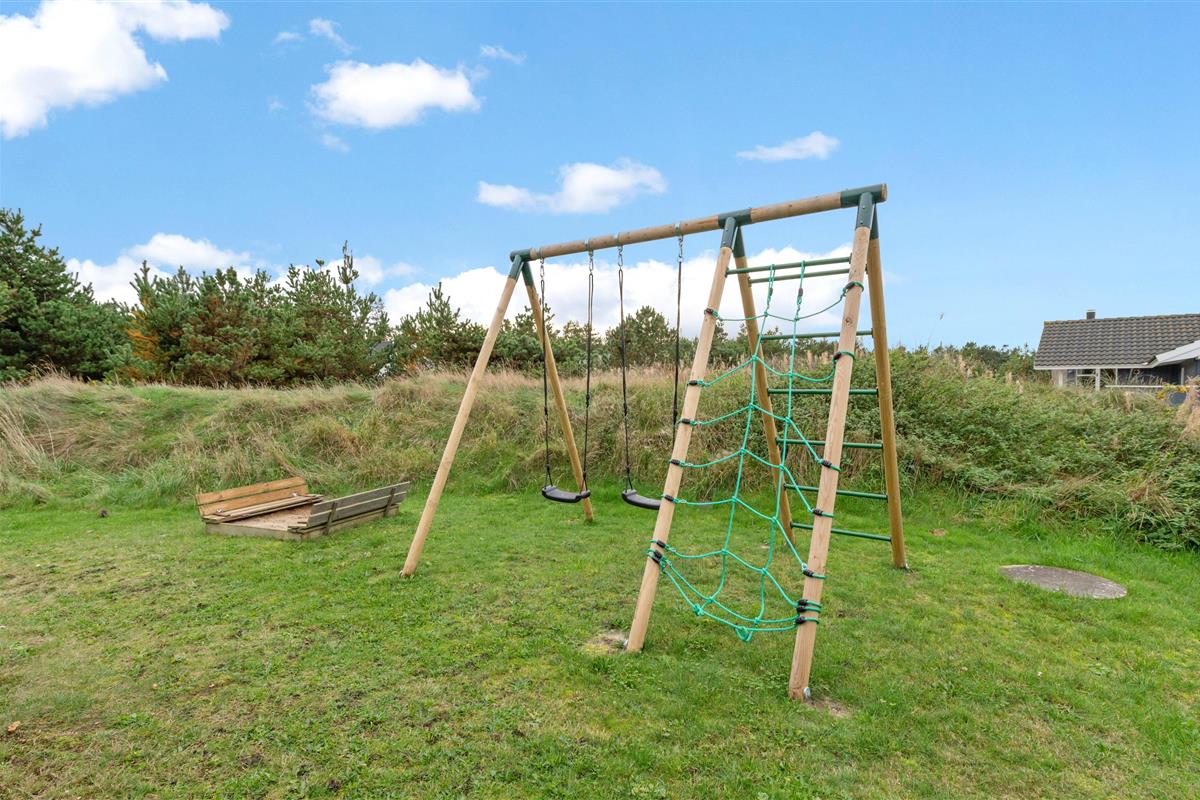In picturesque Bjerregård, on the Danish west coast, you'll find a holiday destination surrounded by nature. Follow the path through the holiday area to reach the nearby North Sea and its miles of sandy beach. Here you can fly kites with your children, collect shells, or enjoy a refreshing swim in summer.