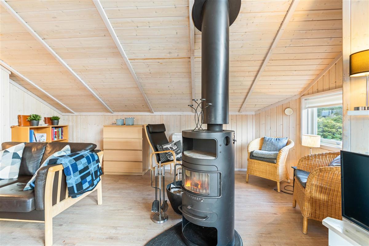 In the open-plan living area, you can relax on the sofa, watch television or gaze out at the natural surroundings. The wood-burning stove provides cosy warmth and a comfortable atmosphere. Alternatively, you can use the energy-efficient heat pump for heating.
