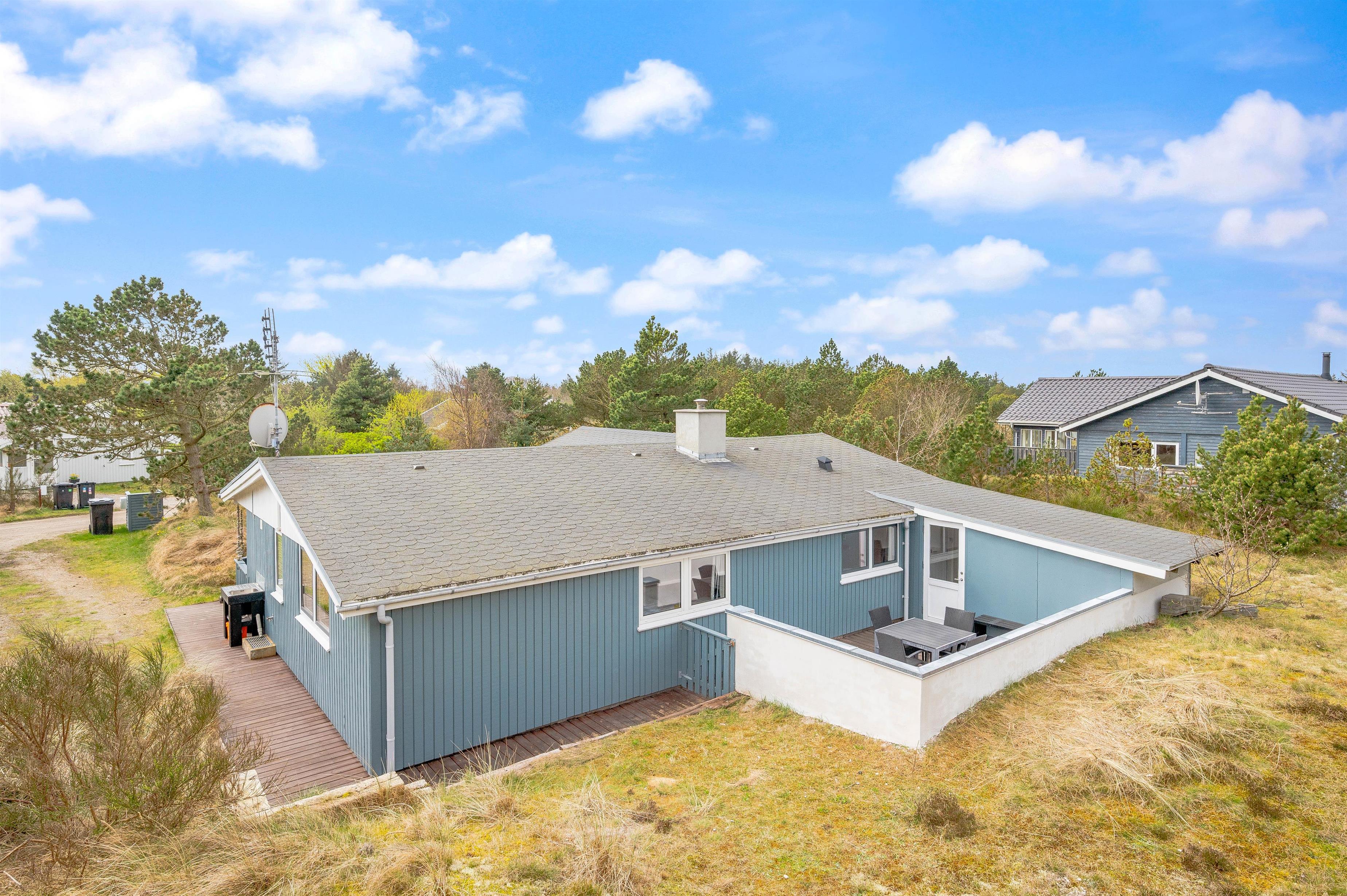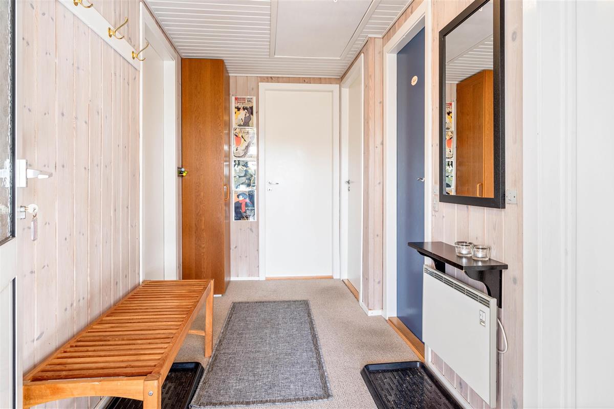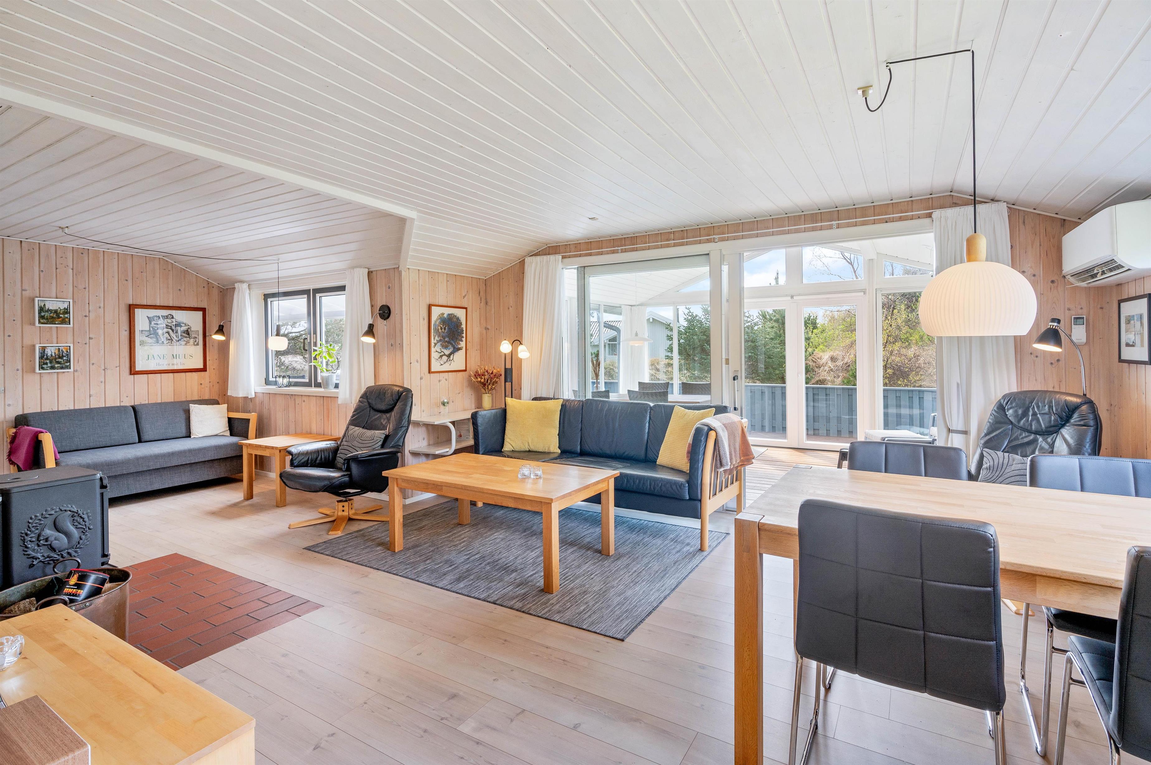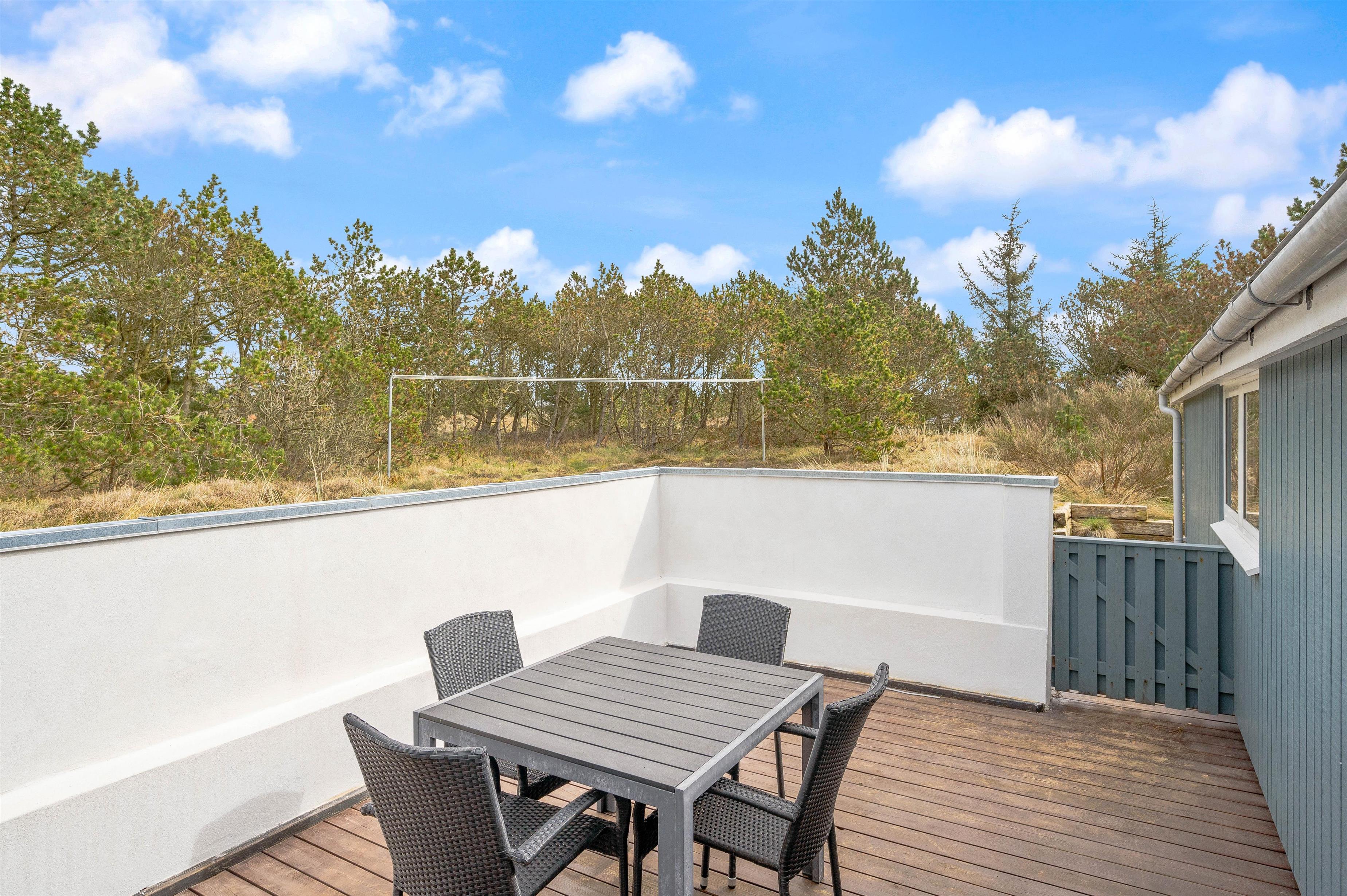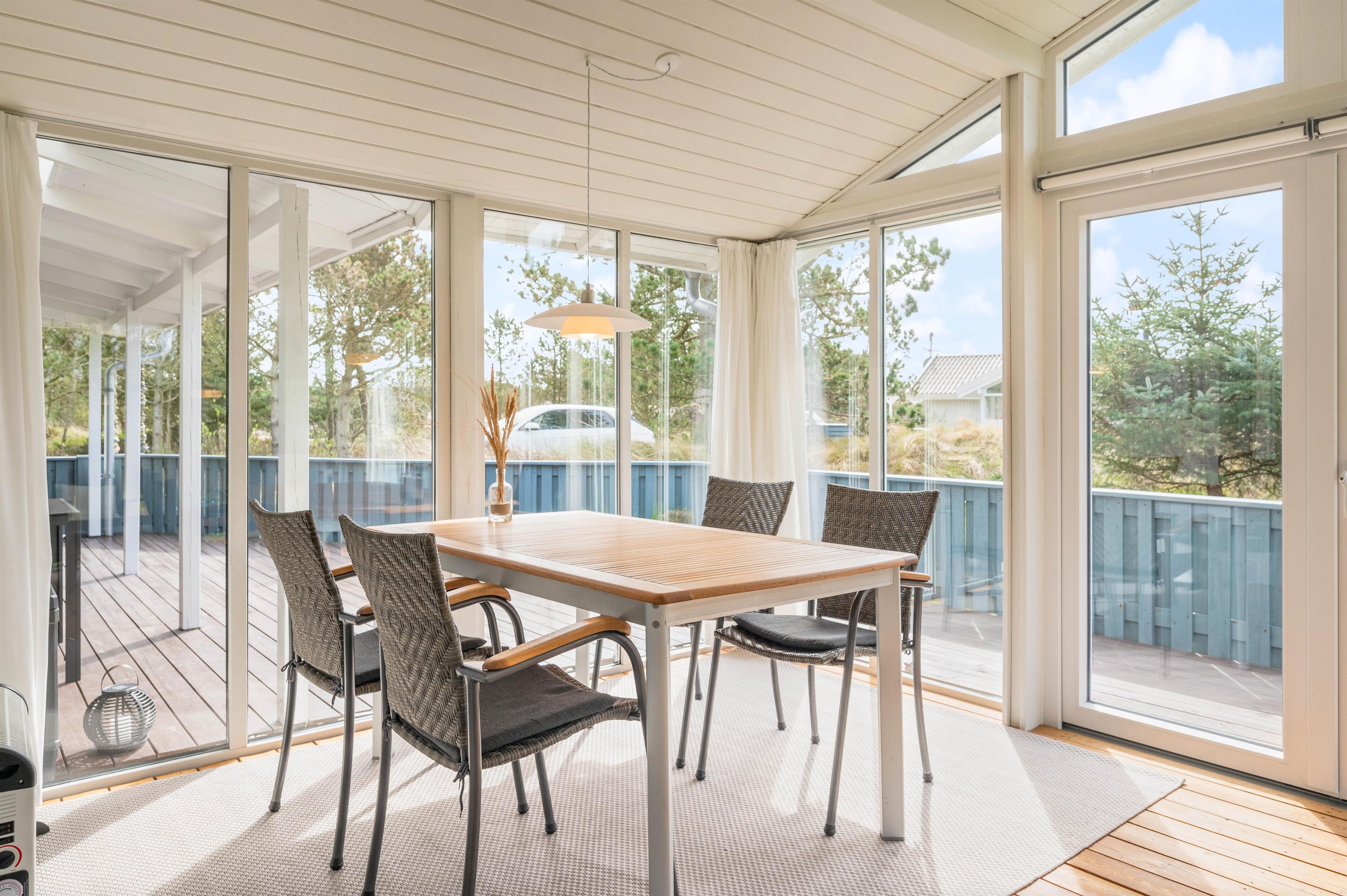This well-maintained holiday home in Bjerregard sits on a partially sheltered plot. The holiday home features a bright conservatory leading to an enclosed, partially covered terrace - perfect for family barbecue evenings.
