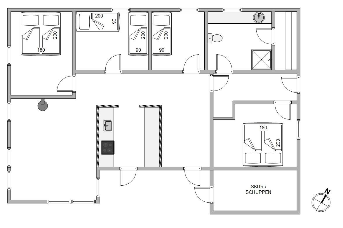 The open-plan kitchen serves as a clever room divider between the living and dining areas. This means some can watch television quietly while others enjoy a sociable games evening. The modern kitchen is well-equipped with everything you might need. Why not try your hand at some Danish recipes?