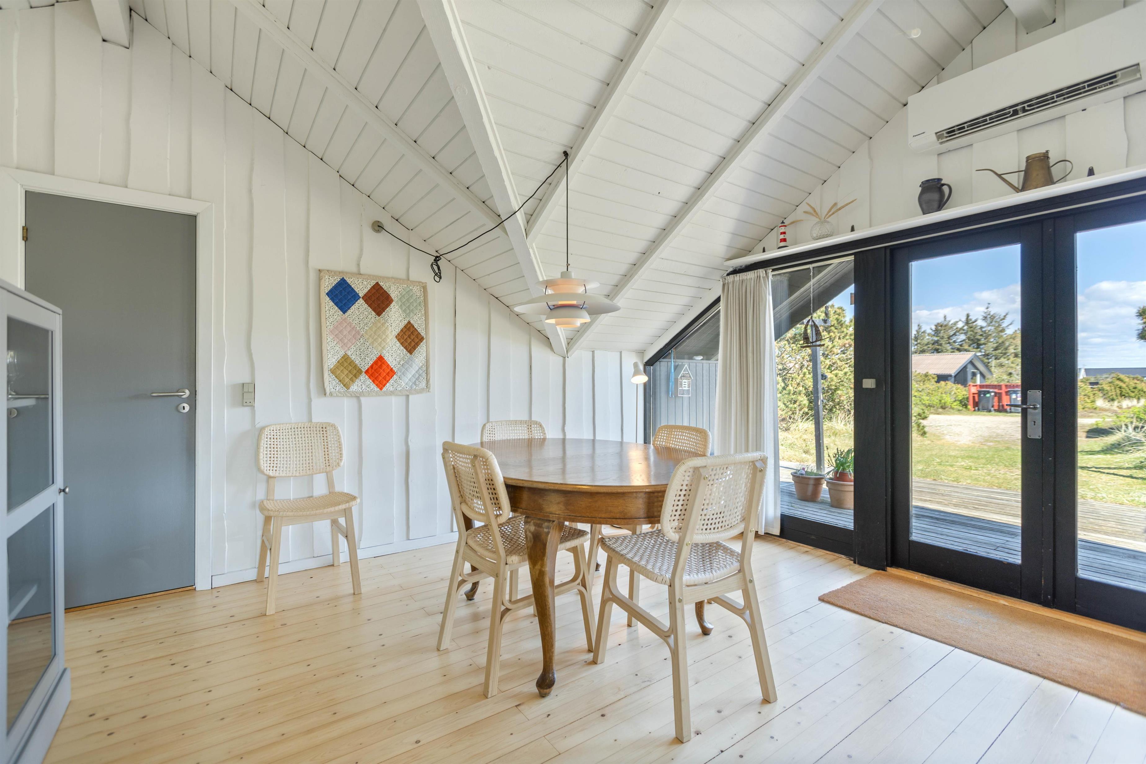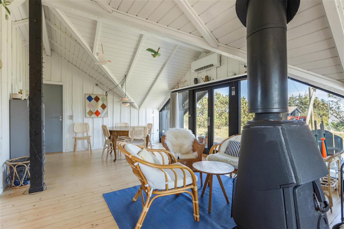 Three bedrooms offer a double bed, two single beds and a cabin bed for children, providing peaceful retreats after an exciting day at the Danish West Coast beach. The holiday home features an energy-efficient heat pump for heating, which can be activated whenever needed.