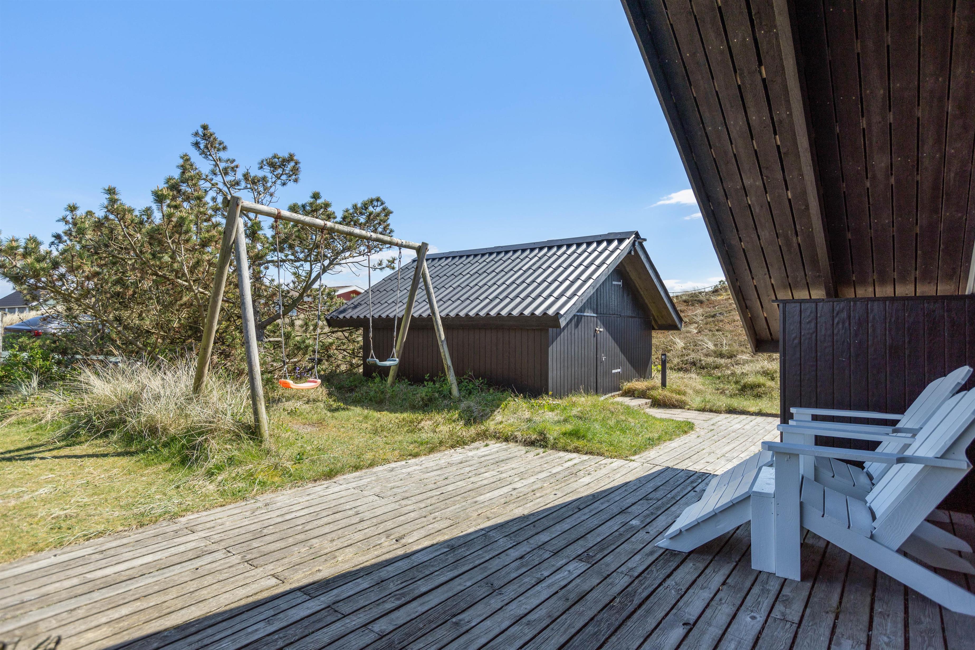 Located directly on the Danish West Coast in Bjerregård, the miles-long sandy beach invites you to play, walk and unwind. On the other side lies Ringkøbing Fjord, offering perfect opportunities for fishing enthusiasts. The holiday home is situated amidst the dune landscape, ideal for family cycling trips and walks. A local shop in Bjerregård provides everything you need for the perfect picnic.