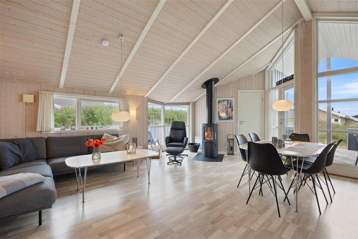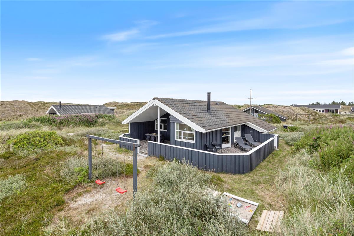 Your holiday home is situated on the edge of the Bjerregård holiday home area, just 700 metres from the beach, offering an excellent base for various excursions. From here, you can cycle through the dune landscape to Hvide Sande (10.5 miles/17 km) or Nymindegab (4.3 miles/7 km), or simply enjoy the expanse of beach for flying kites or taking a refreshing dip in the blue-green waves of the North Sea. The local supermarket with adjacent playground is just 0.6 miles (1 km) from the house.