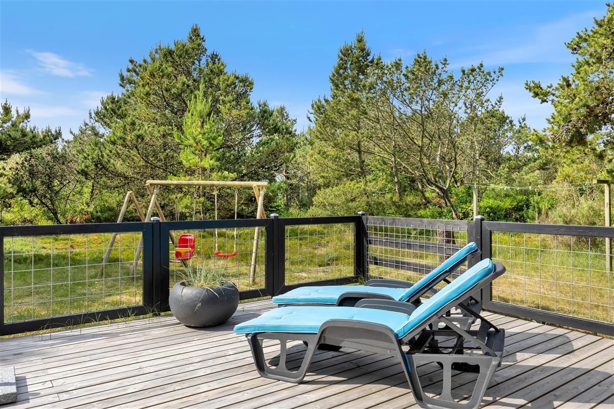 From the comfortable living area, you have direct access to the enclosed wooden terrace, which is partially covered. While younger guests play in the sandpit on the terrace, parents can enjoy a delicious piece of cake from the local shop on the comfortable garden furniture. Two sun loungers on the terrace invite you to enjoy the warm summer sunshine.