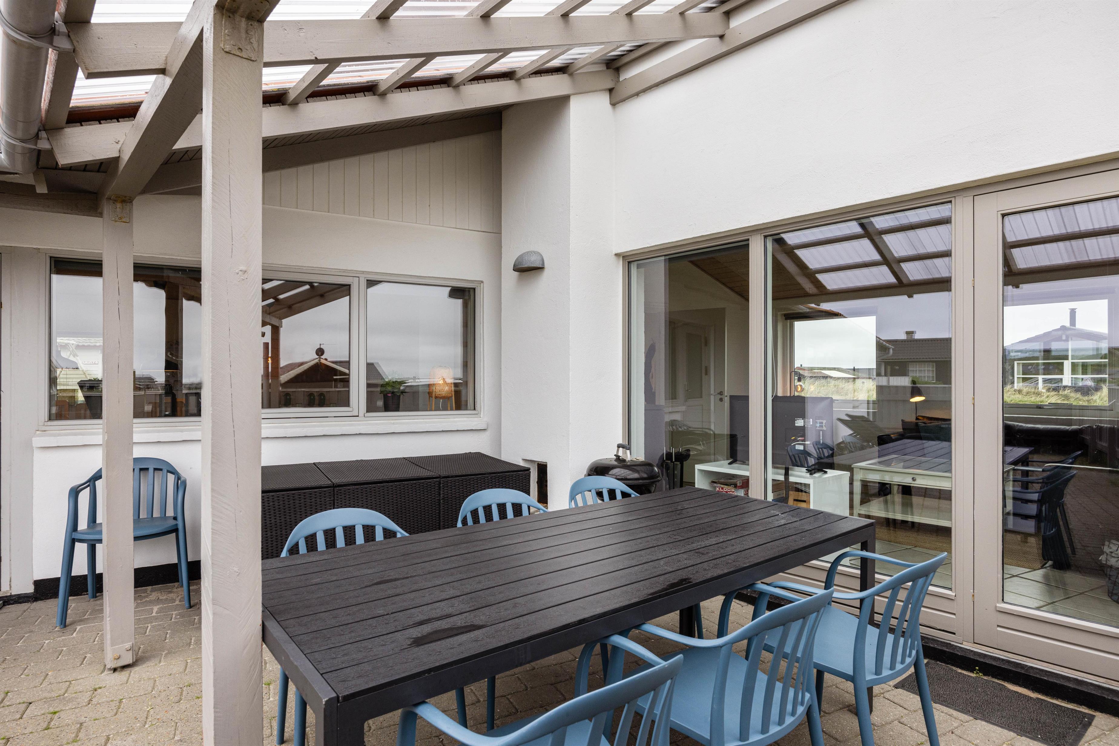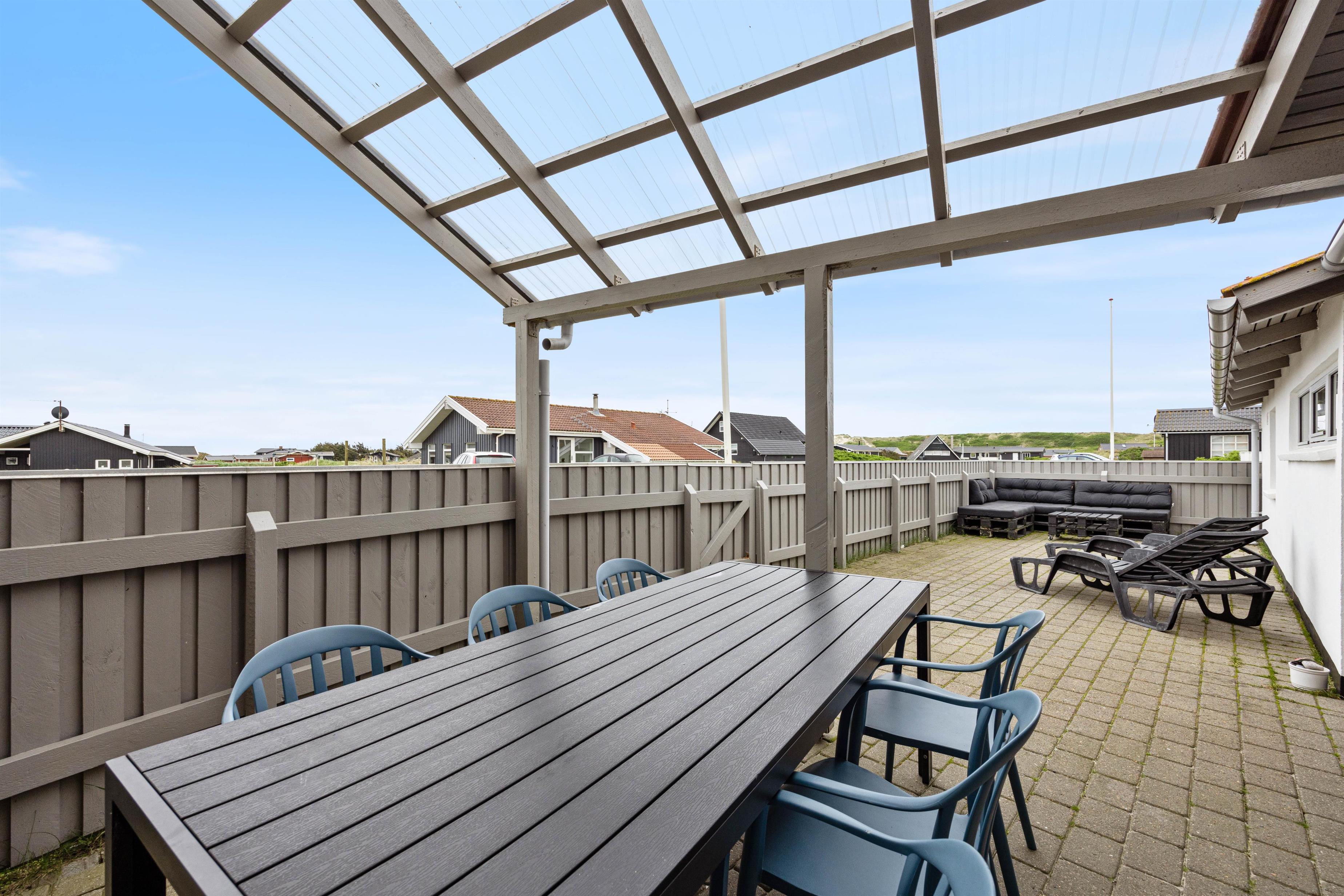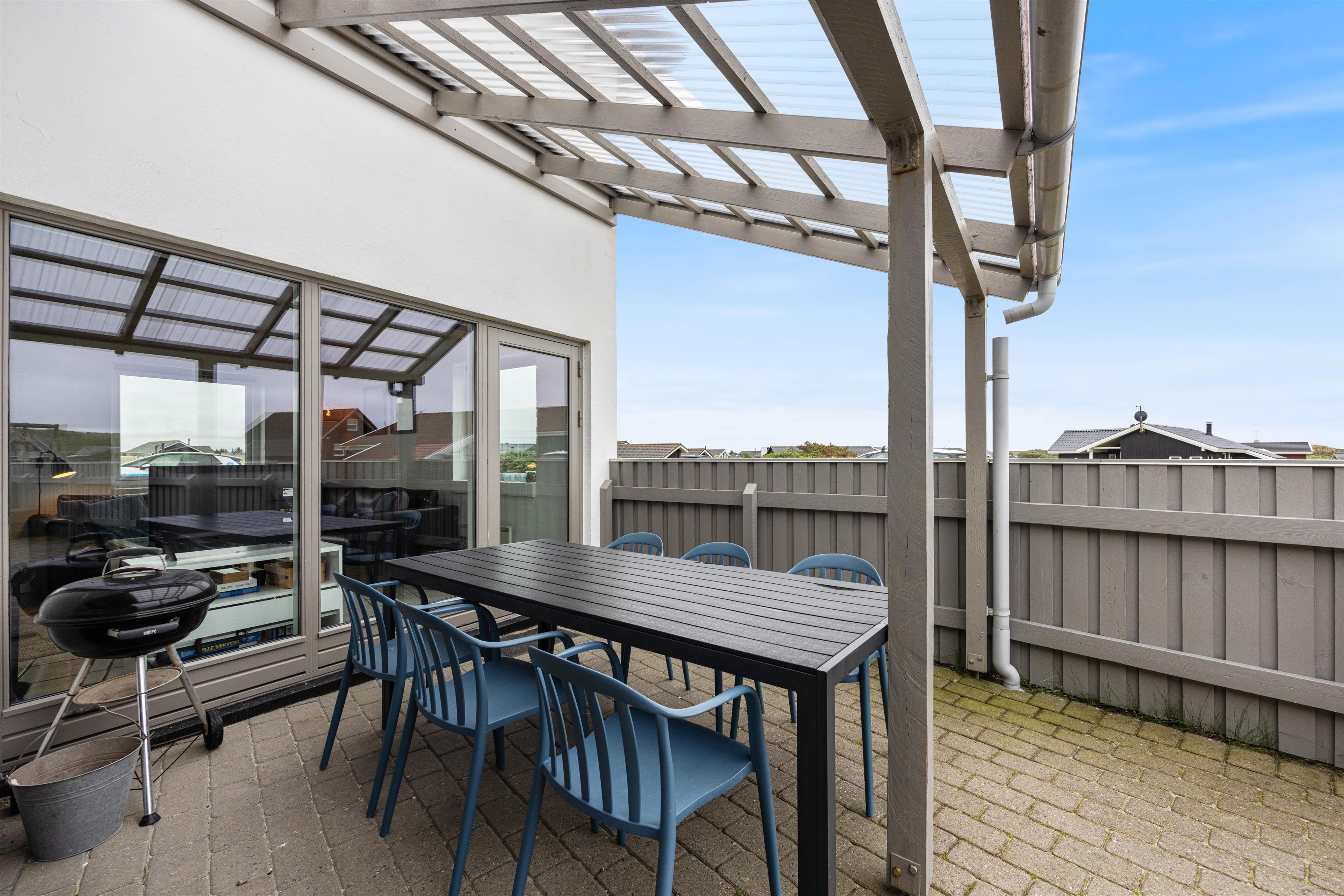The enclosed terrace is a wonderful spot where you can enjoy the fresh sea breeze. It provides a secure environment for children and dogs, so you won't have to worry when they're playing outside. The fenced area allows your four-legged friends to move freely without constant supervision. It's a cosy retreat where you can enjoy barbecue evenings or simply unwind as the day draws to a close.