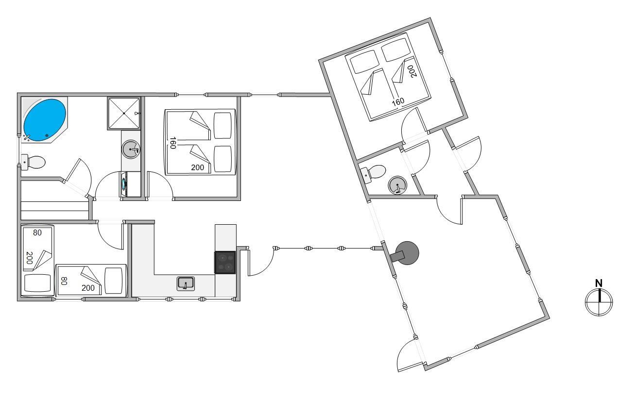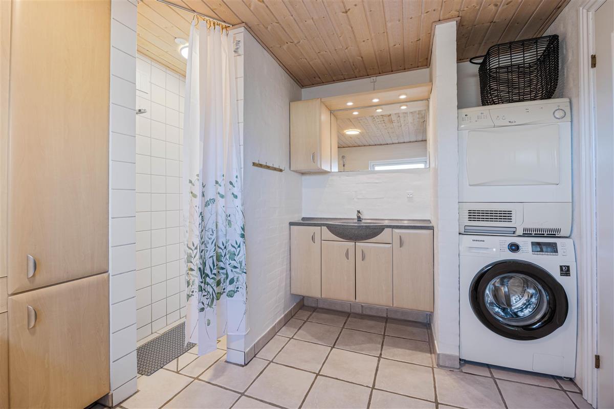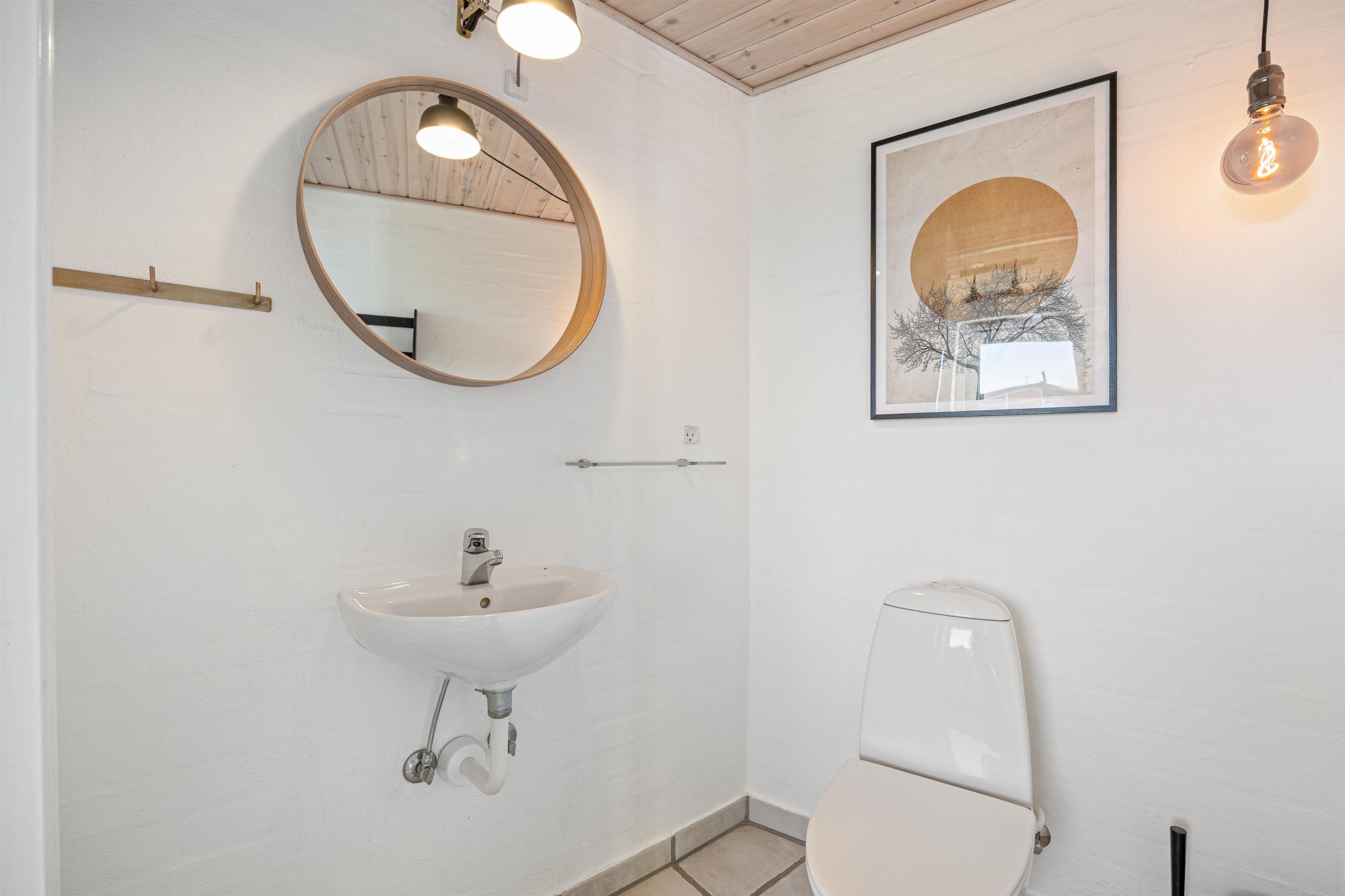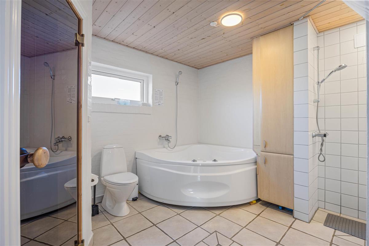 The bathroom features underfloor heating and is equipped with a whirlpool and sauna, perfect for relaxing after long days at the beach. For added convenience, the holiday home includes an additional guest toilet.